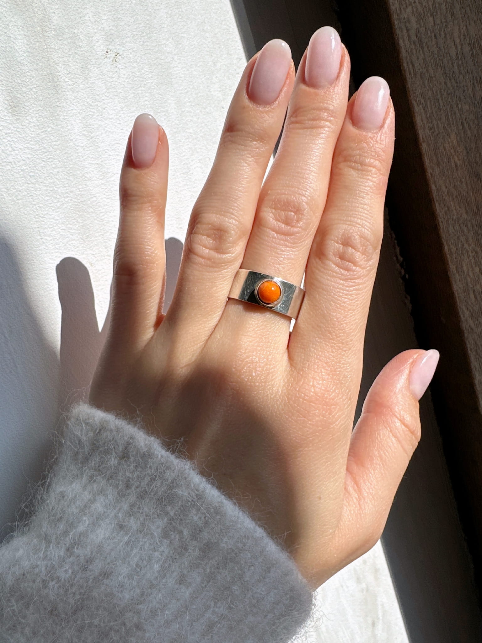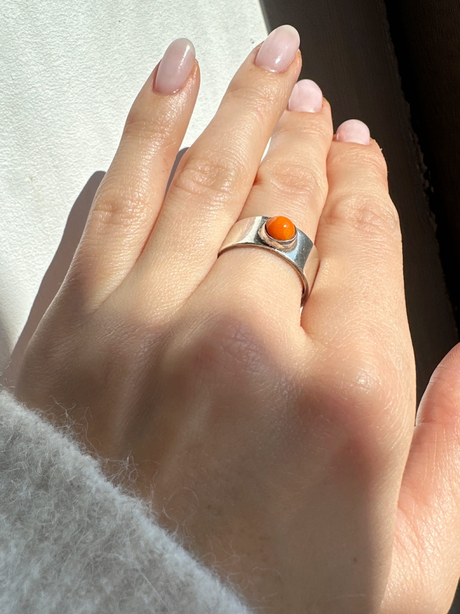 Ręcznie wykonany pierścionek z korala pomarańczowego i srebra pr.925