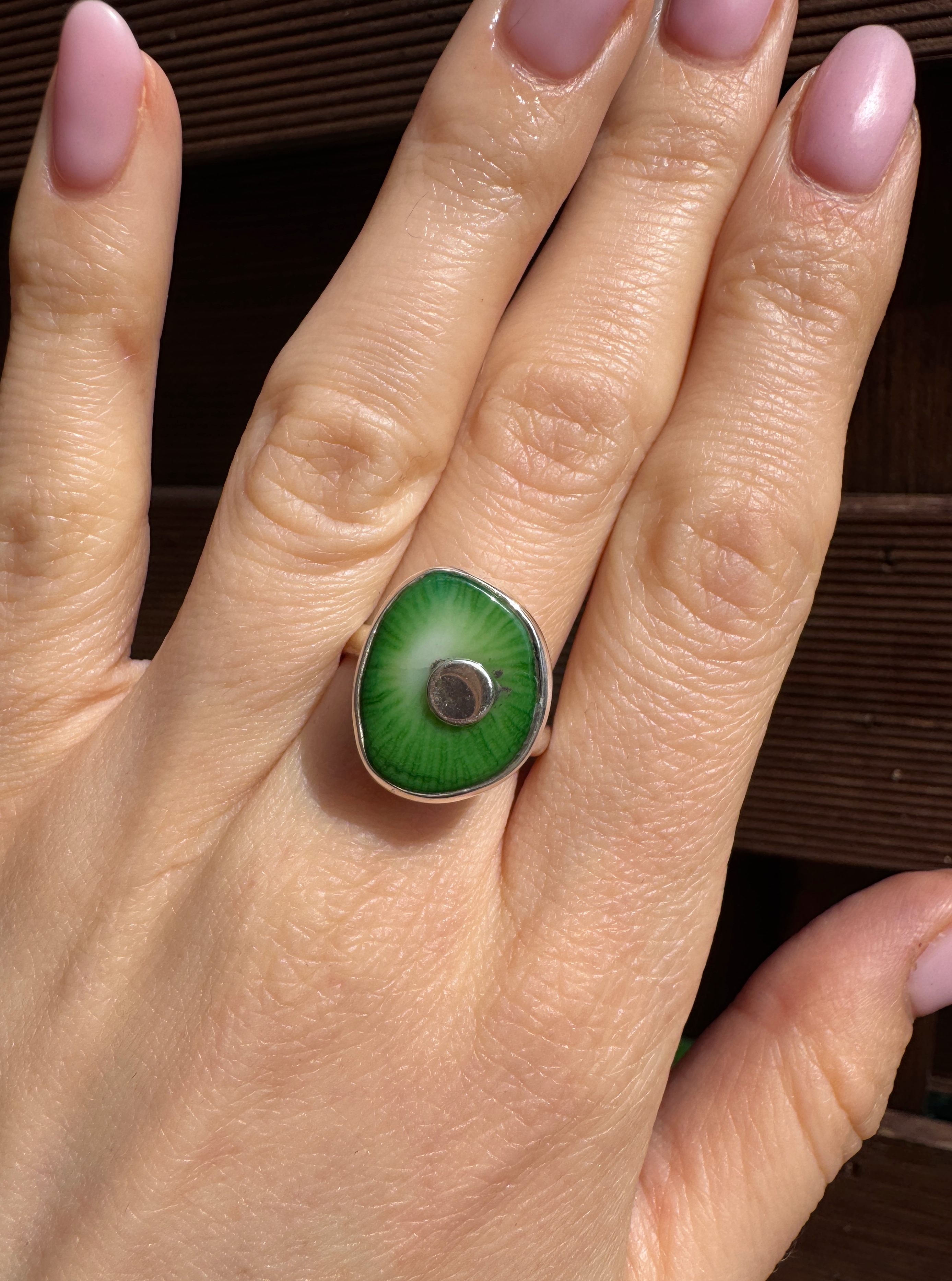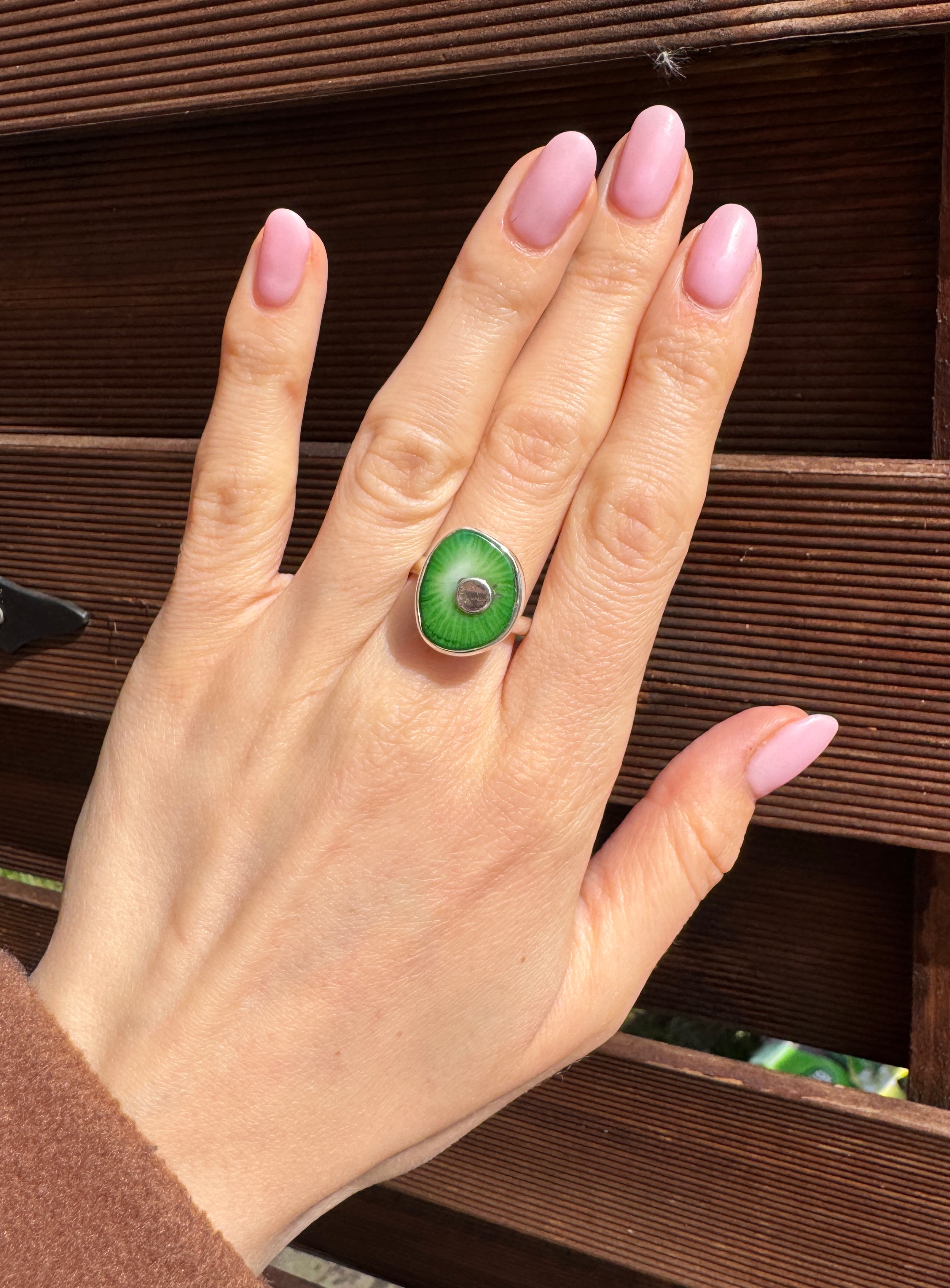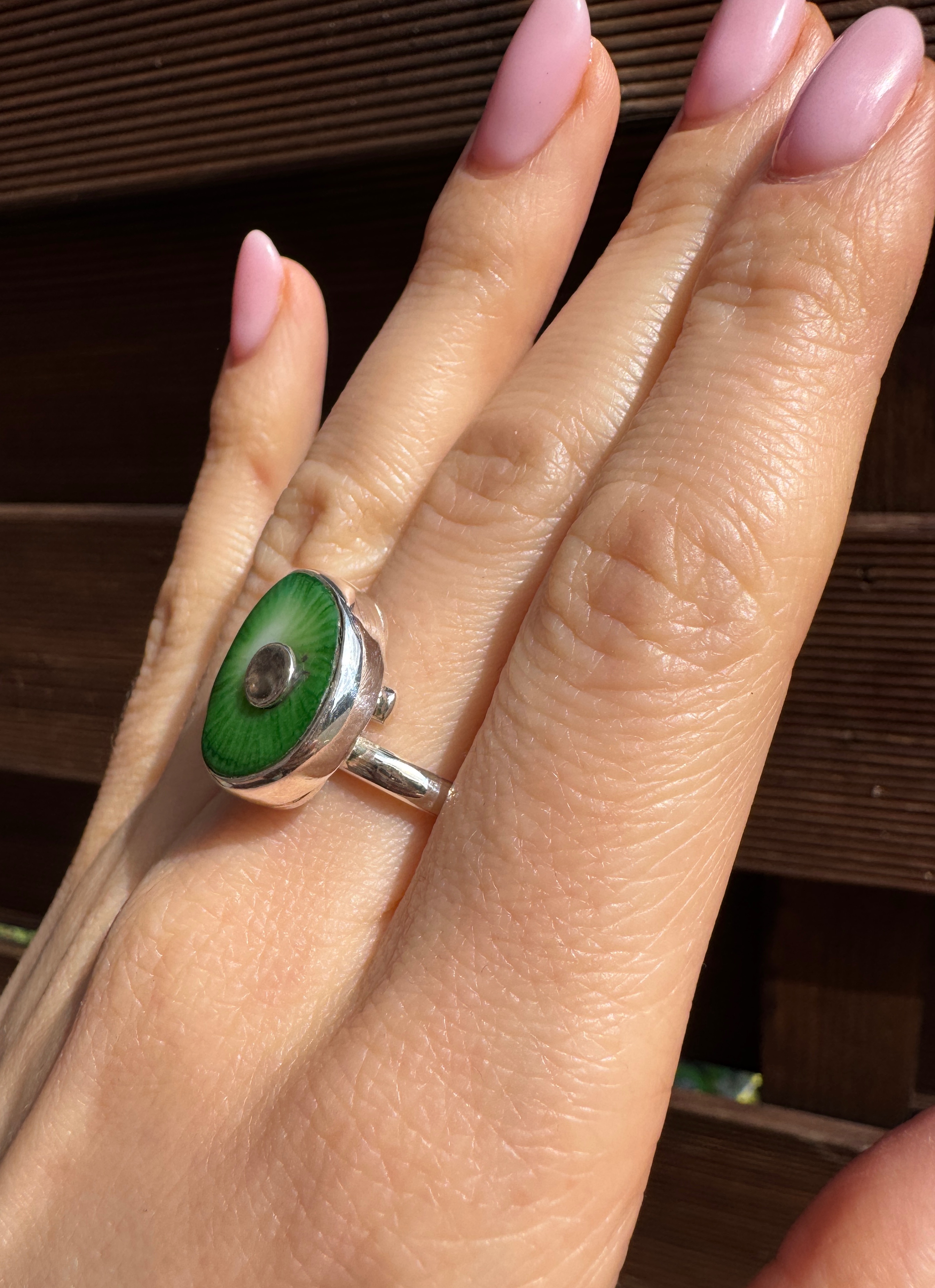 Ręcznie wykonany pierścionek z korala zielonego oraz srebra pr.925