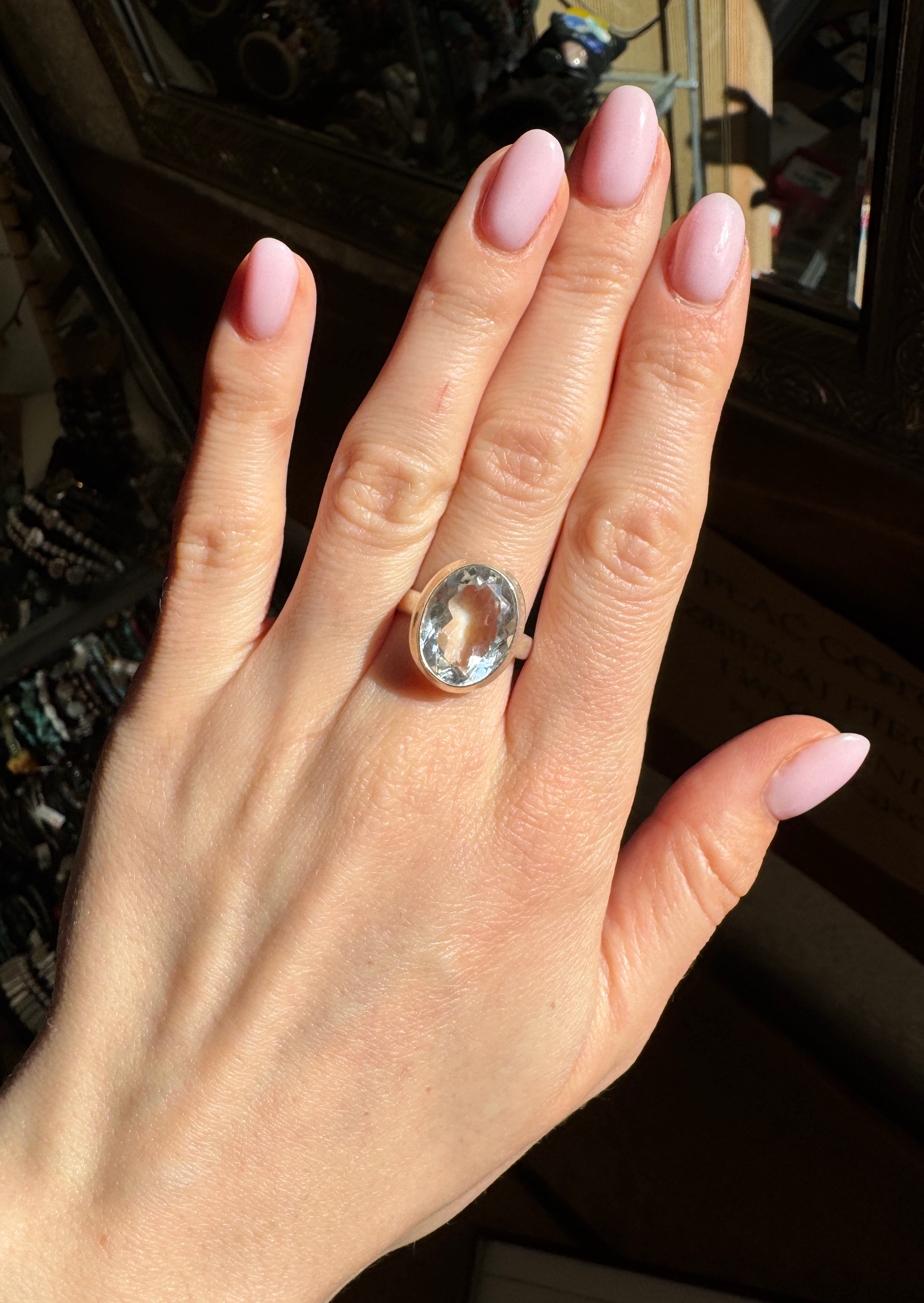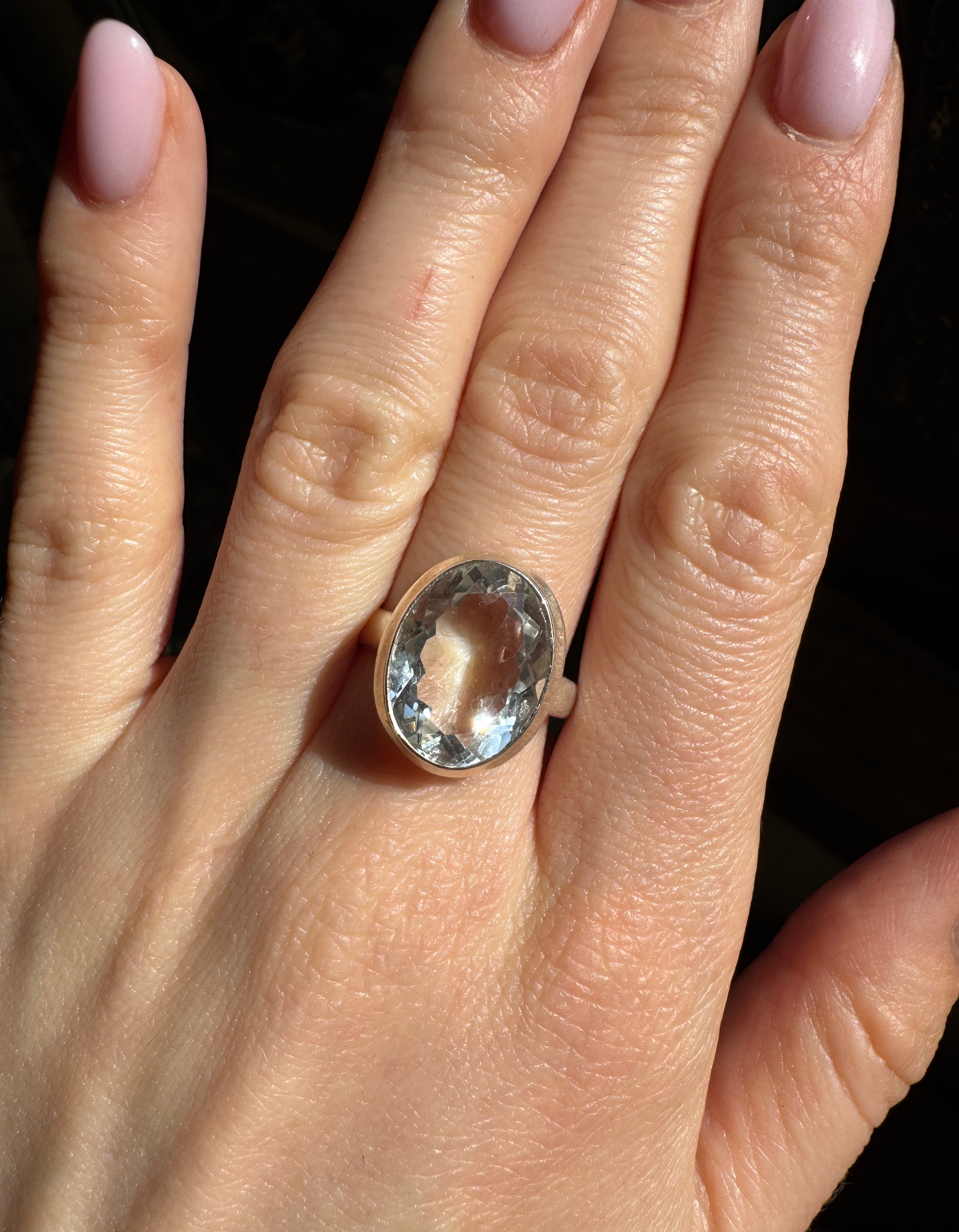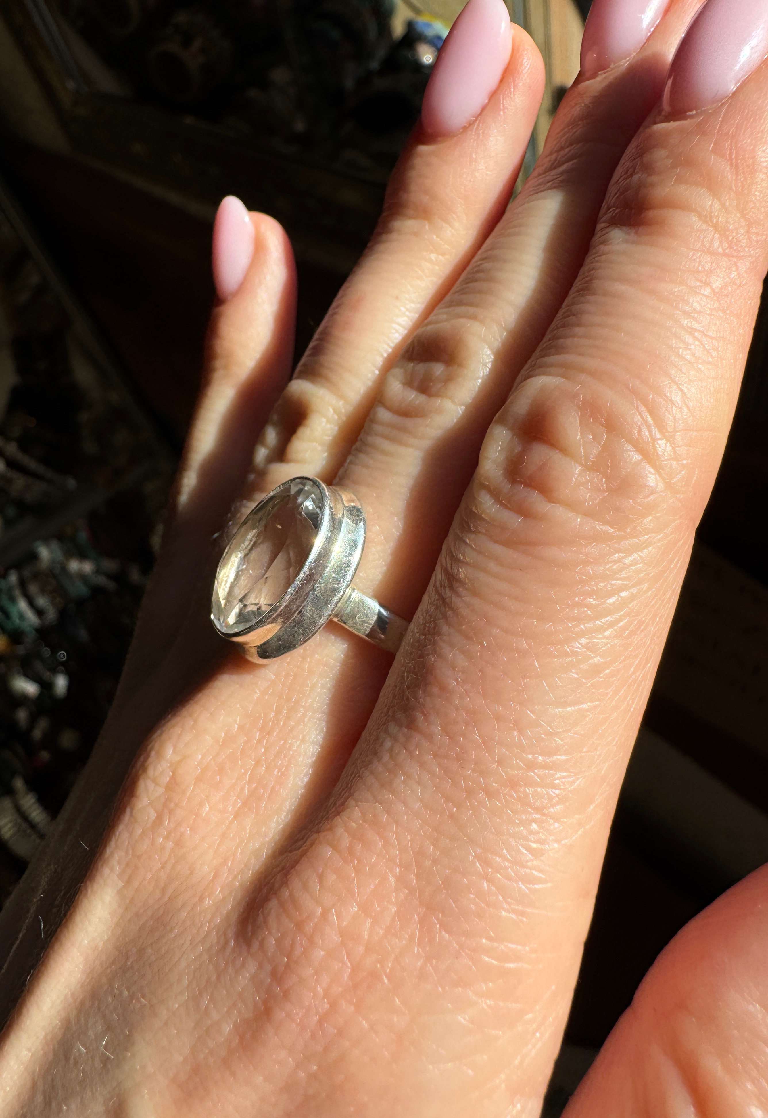 Pierścionek kryształ górski owalny fasetowany