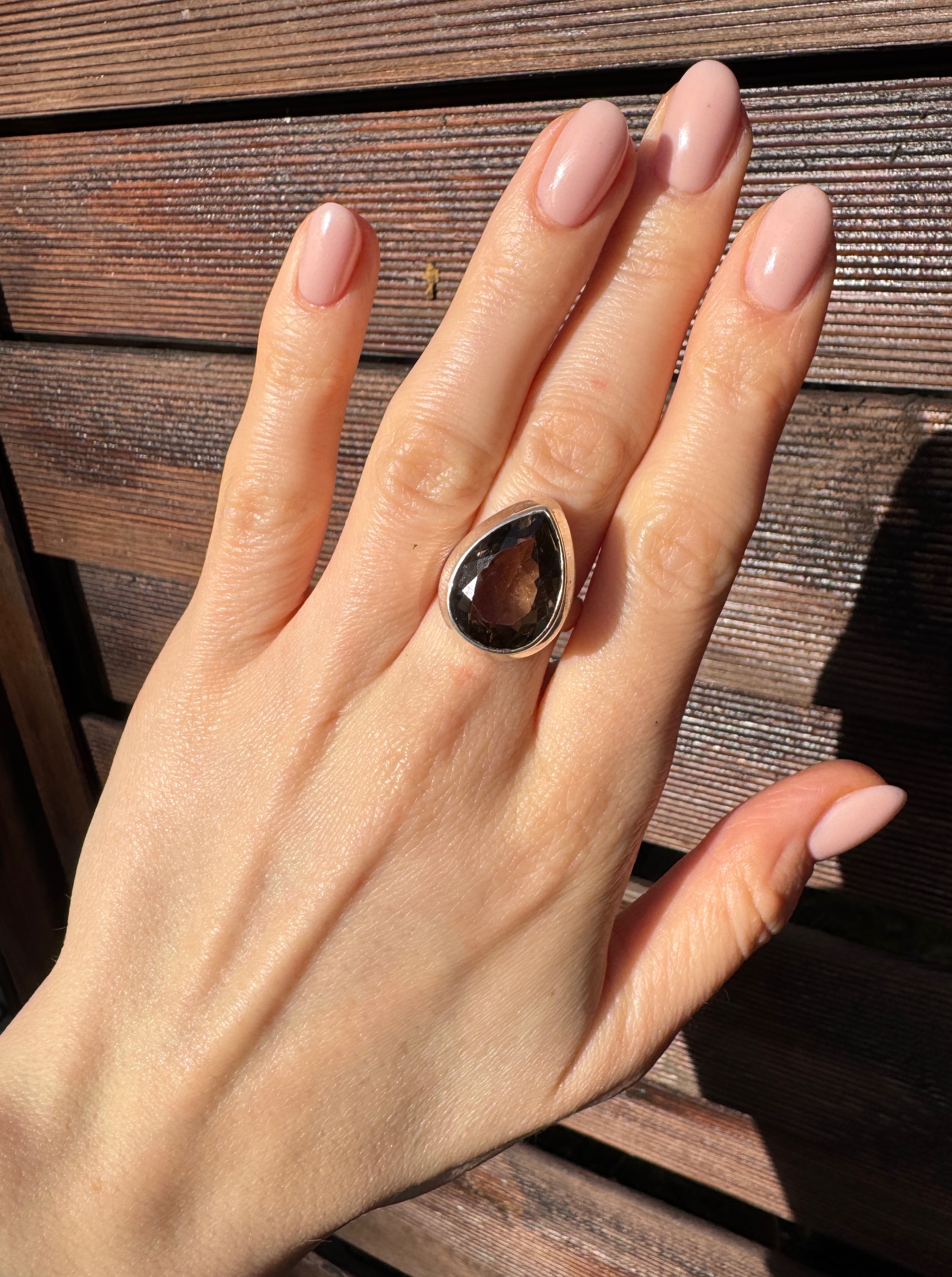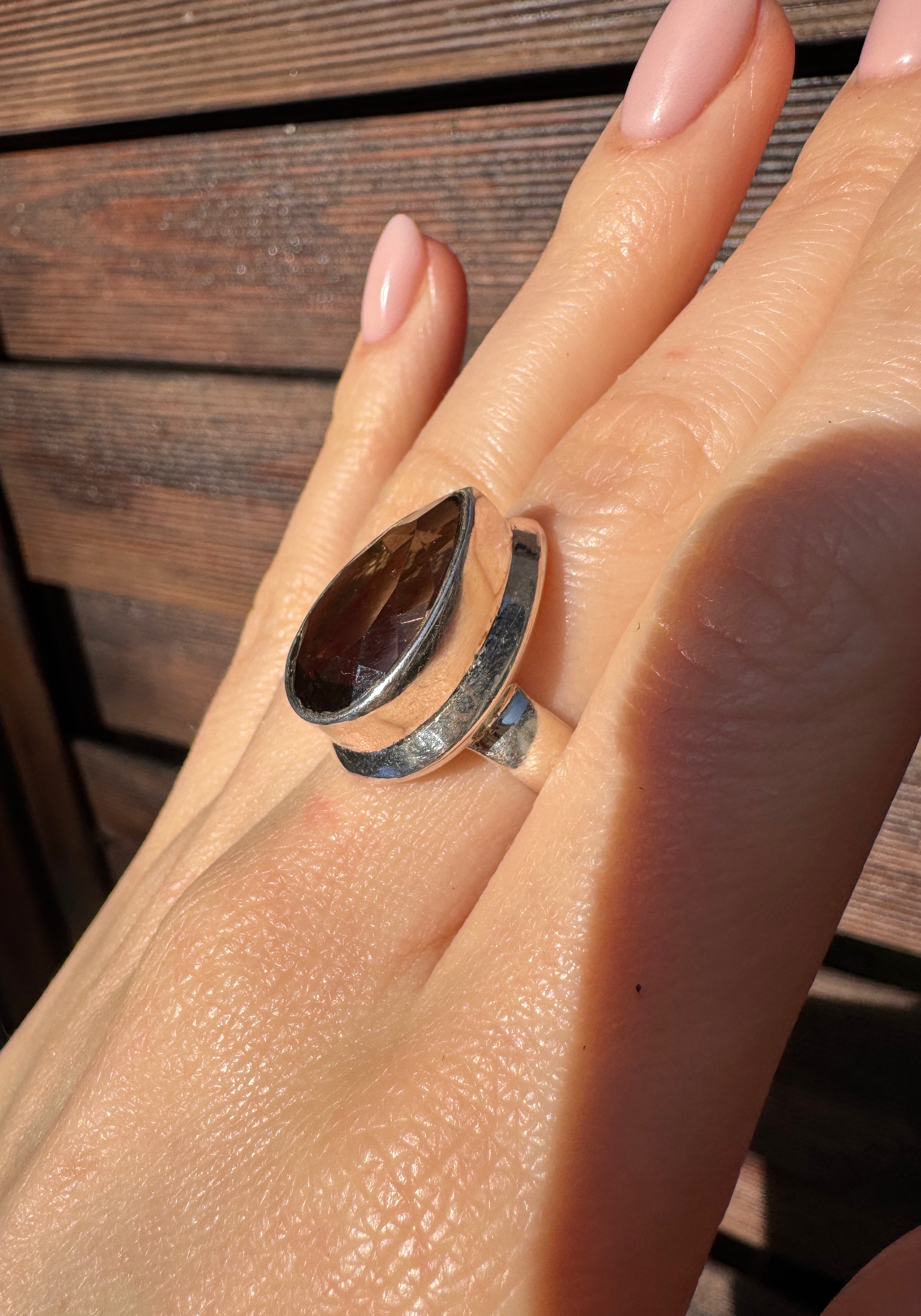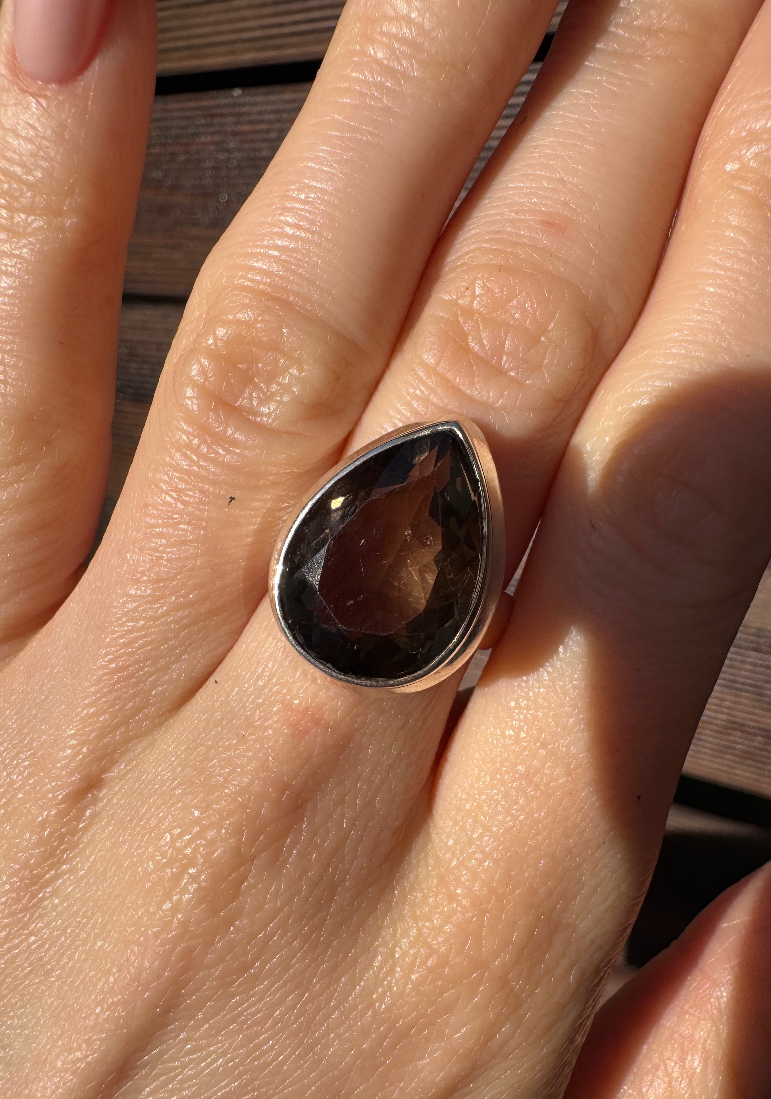 Pierścionek kwarc dymny łezka Fasetowany