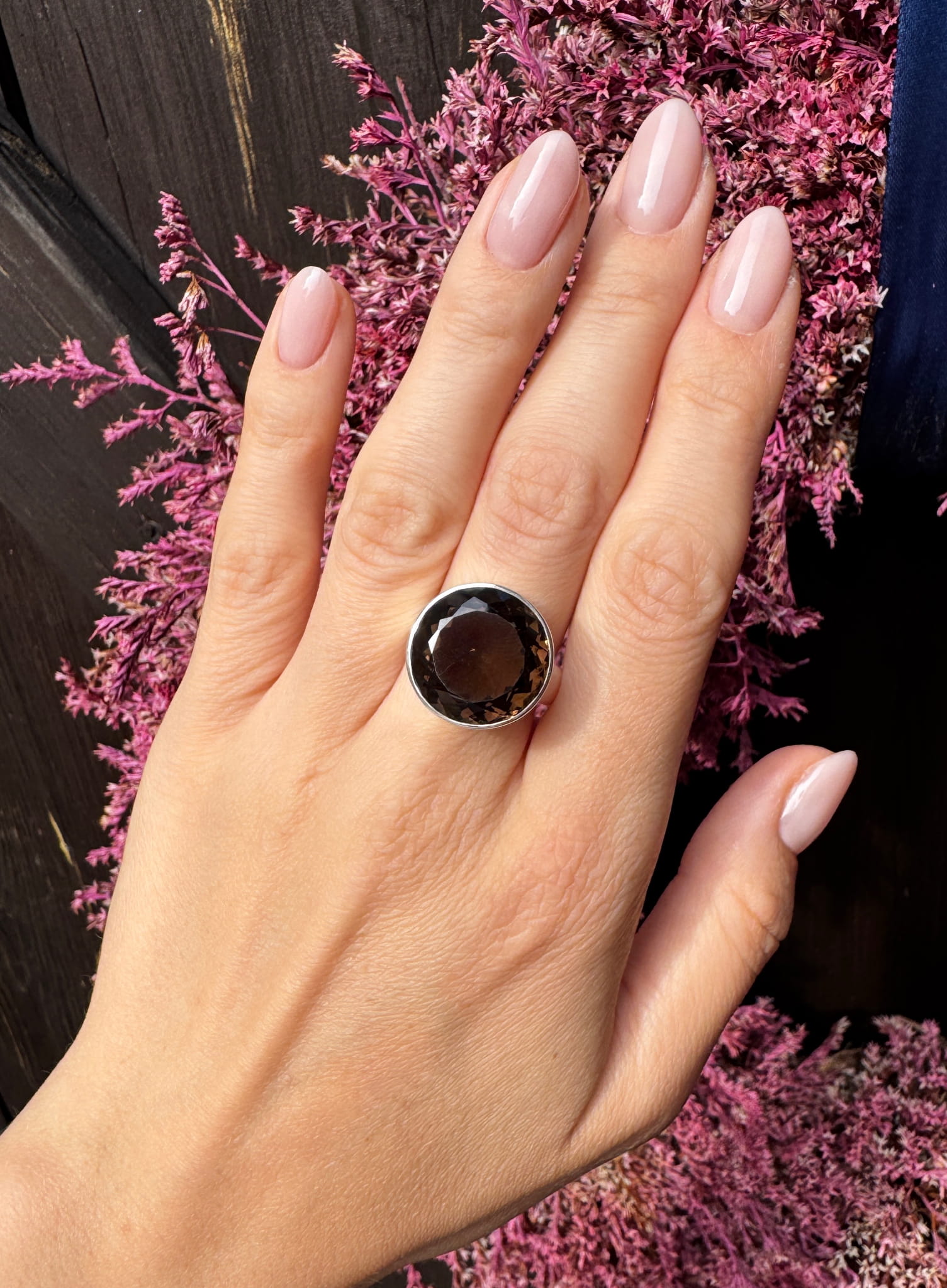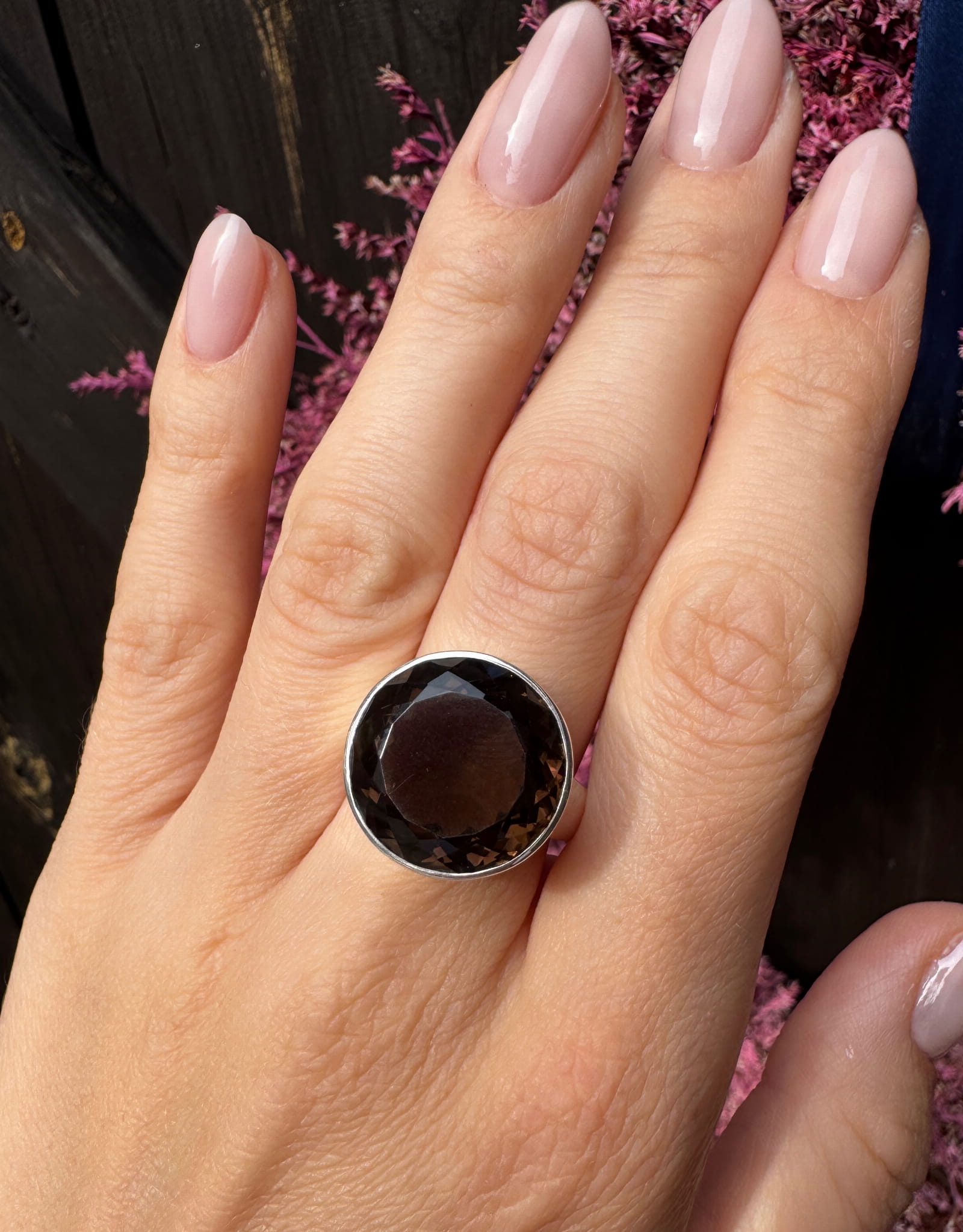 Ręcznie wykonany z kwarcu dymnego fasetowanego i srebra pr.925