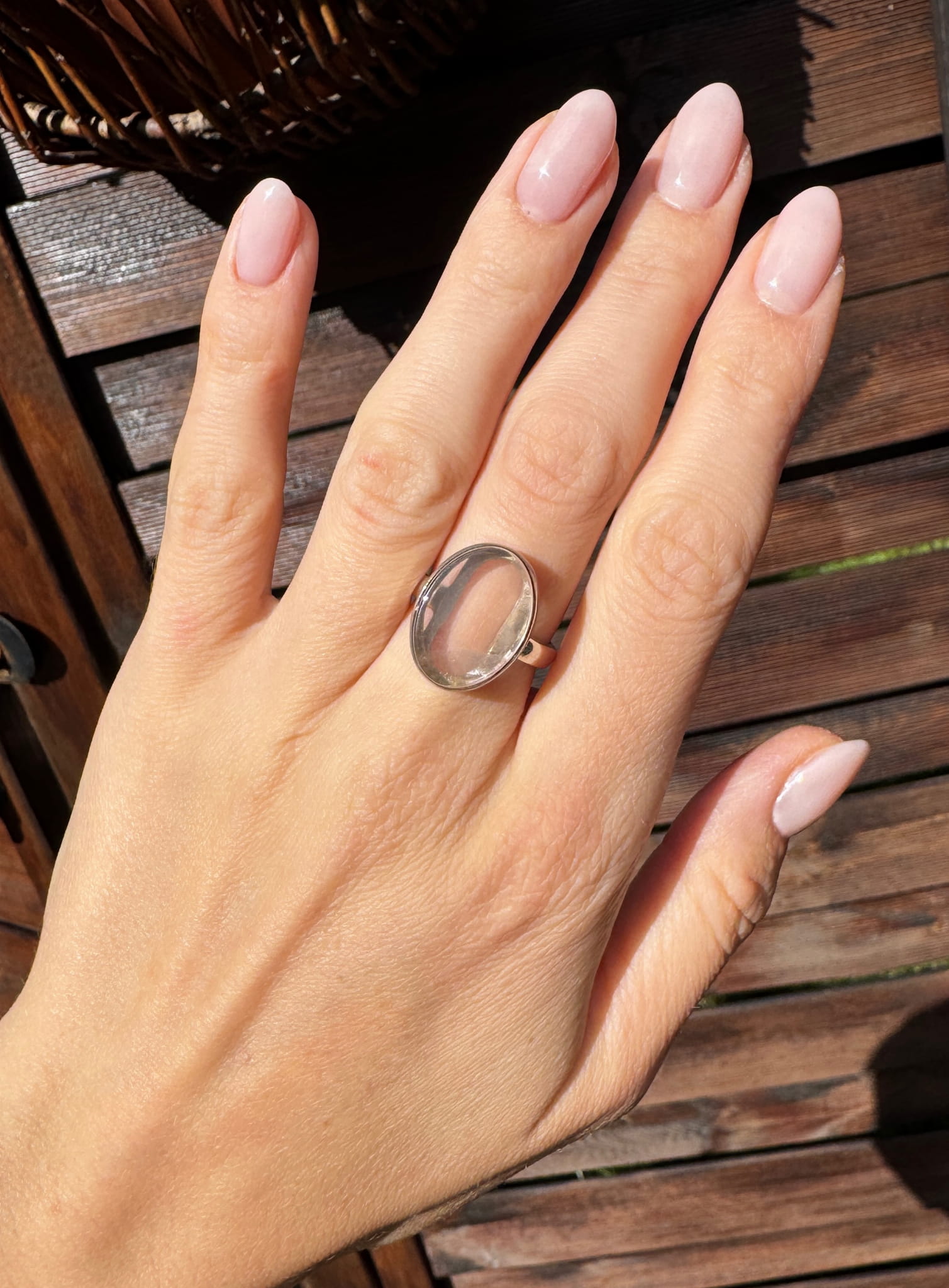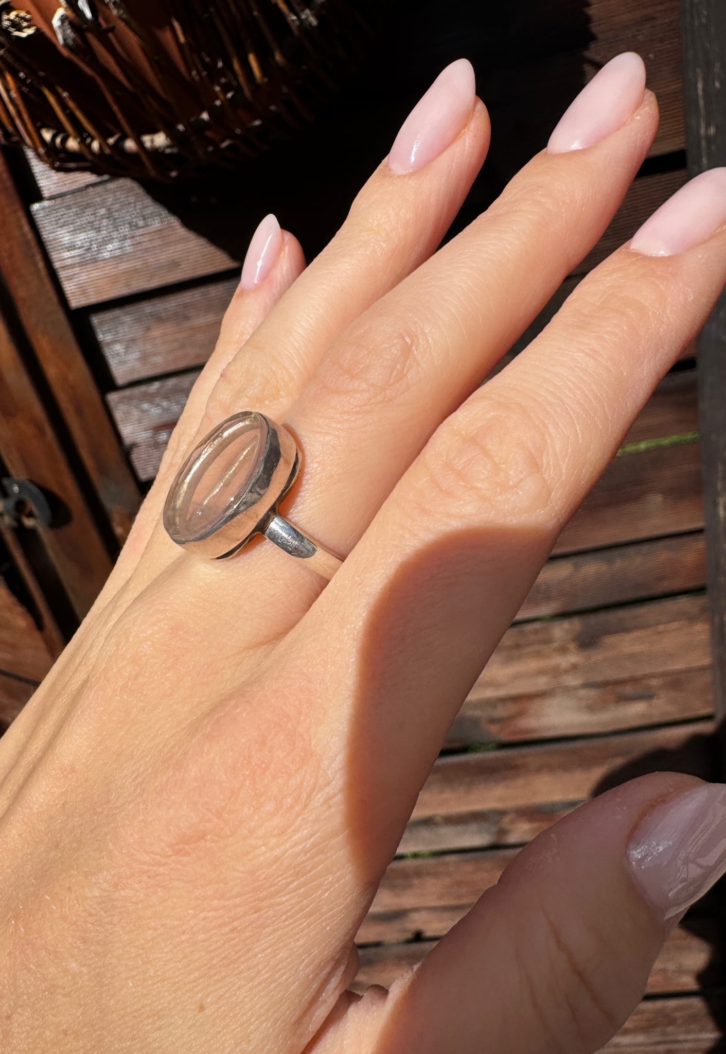 Ręcznie wykonany pierścionek z kwarcu różowego i srebra pr.925