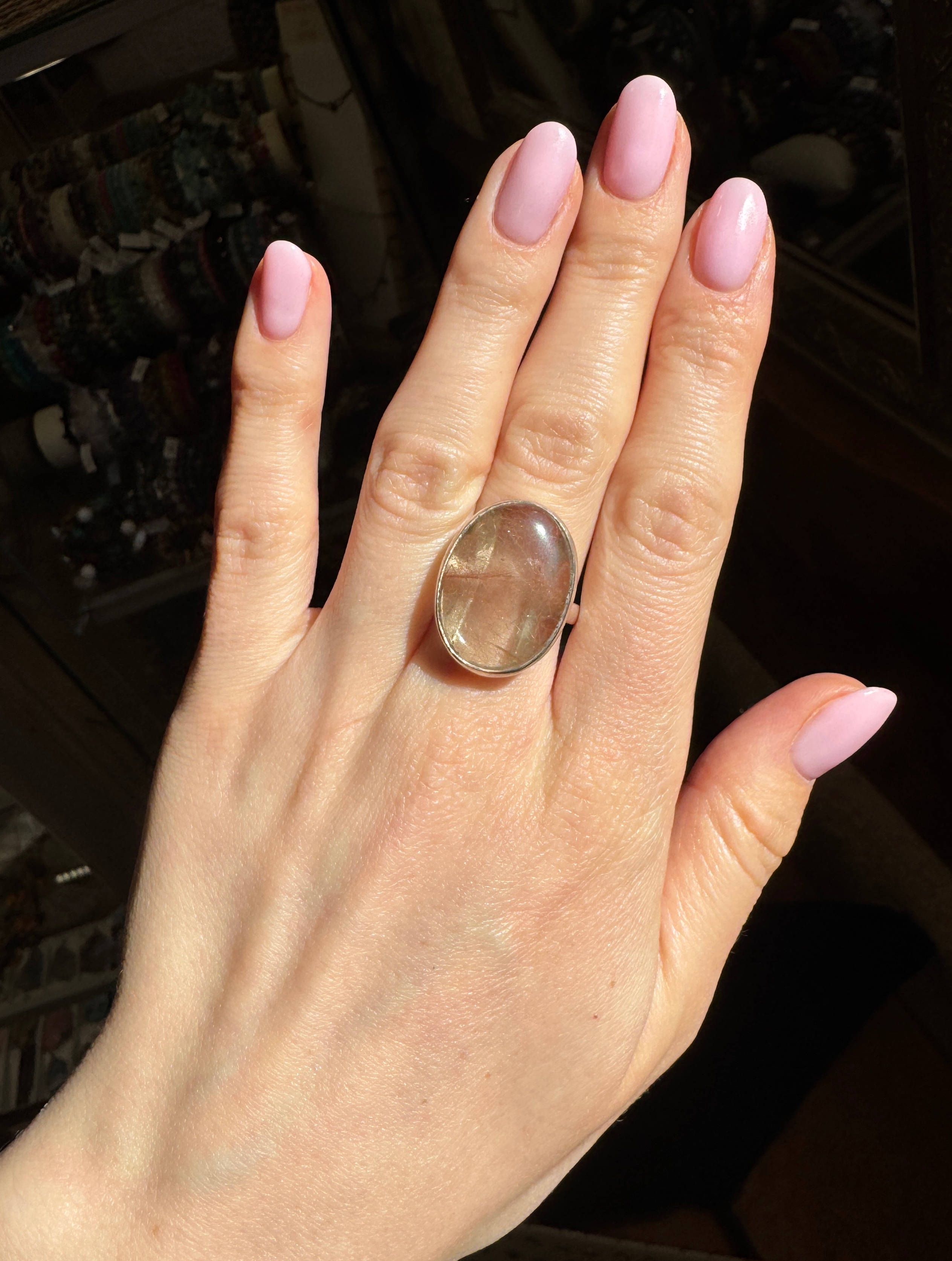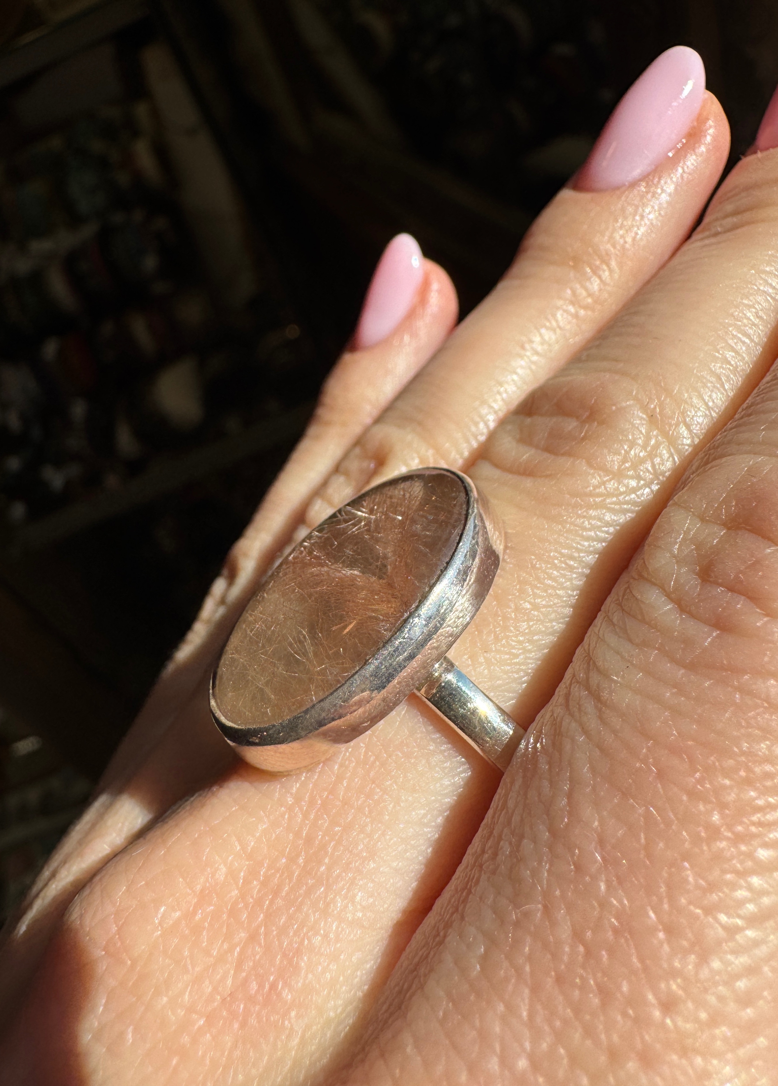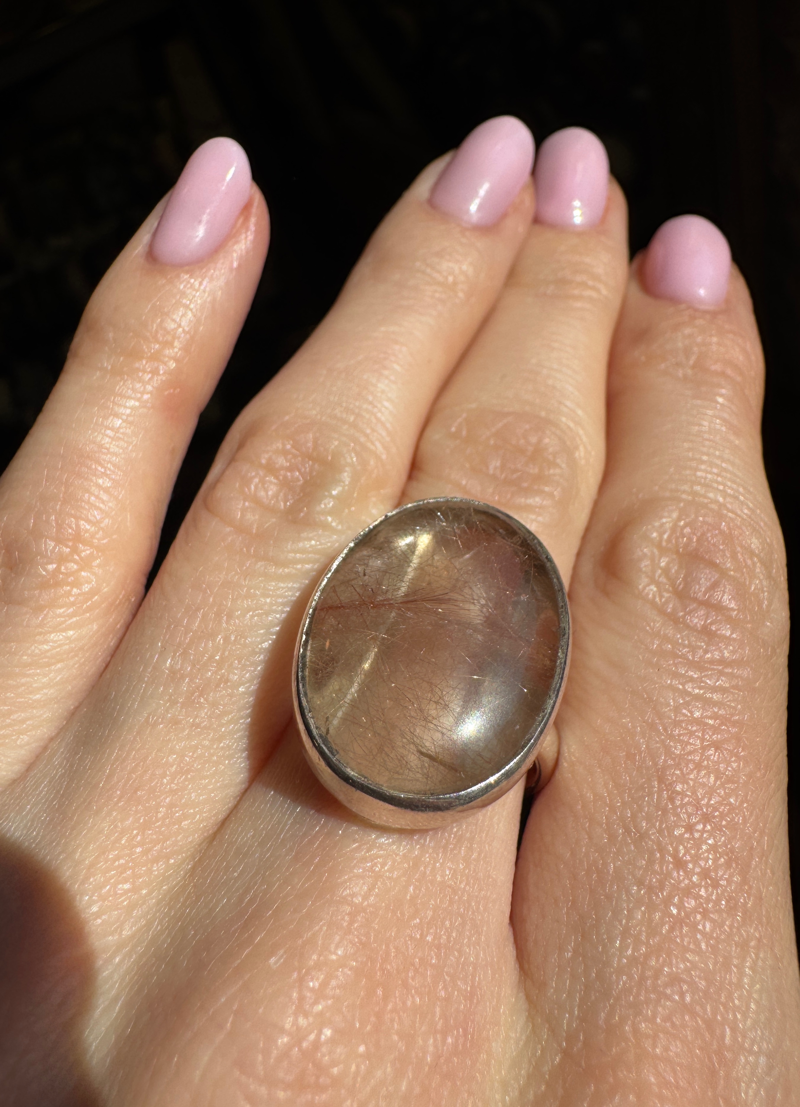 Ręcznie wykonany pierścionek z  kwarcu z rutylem i srebra pr.925