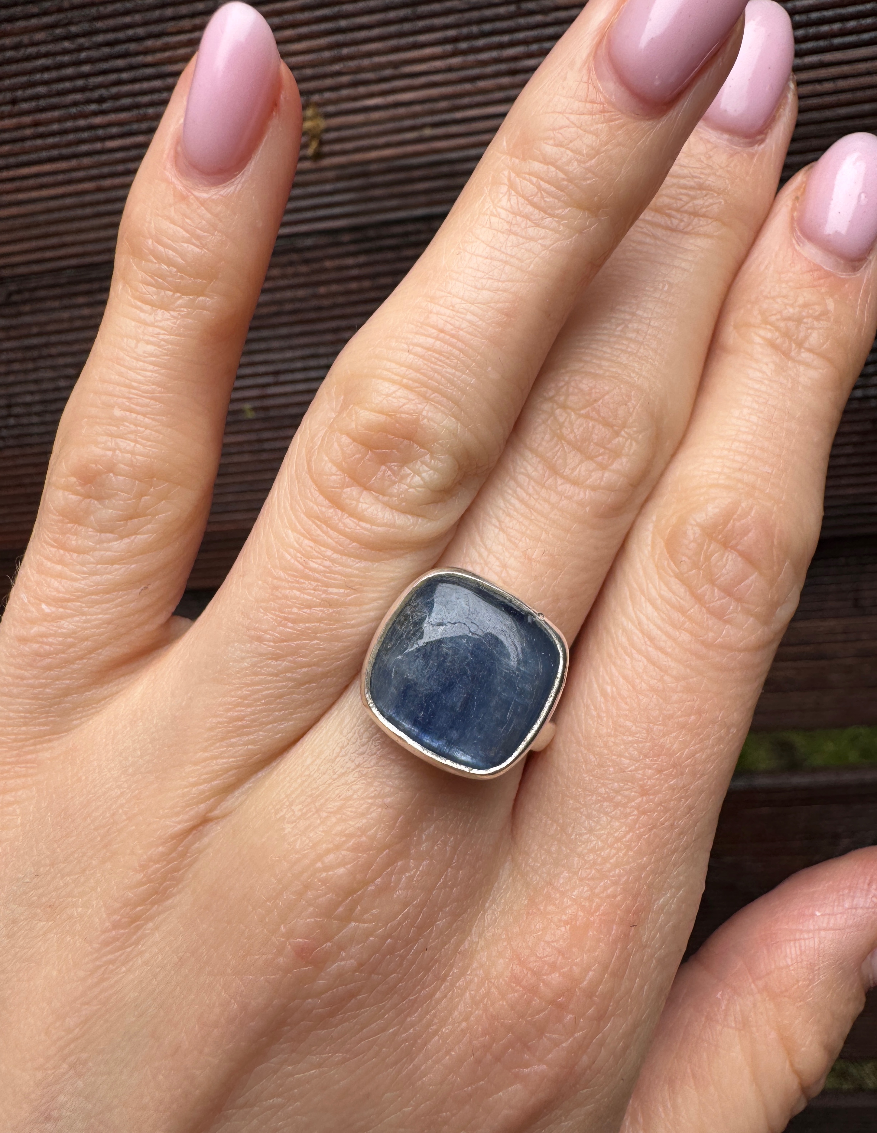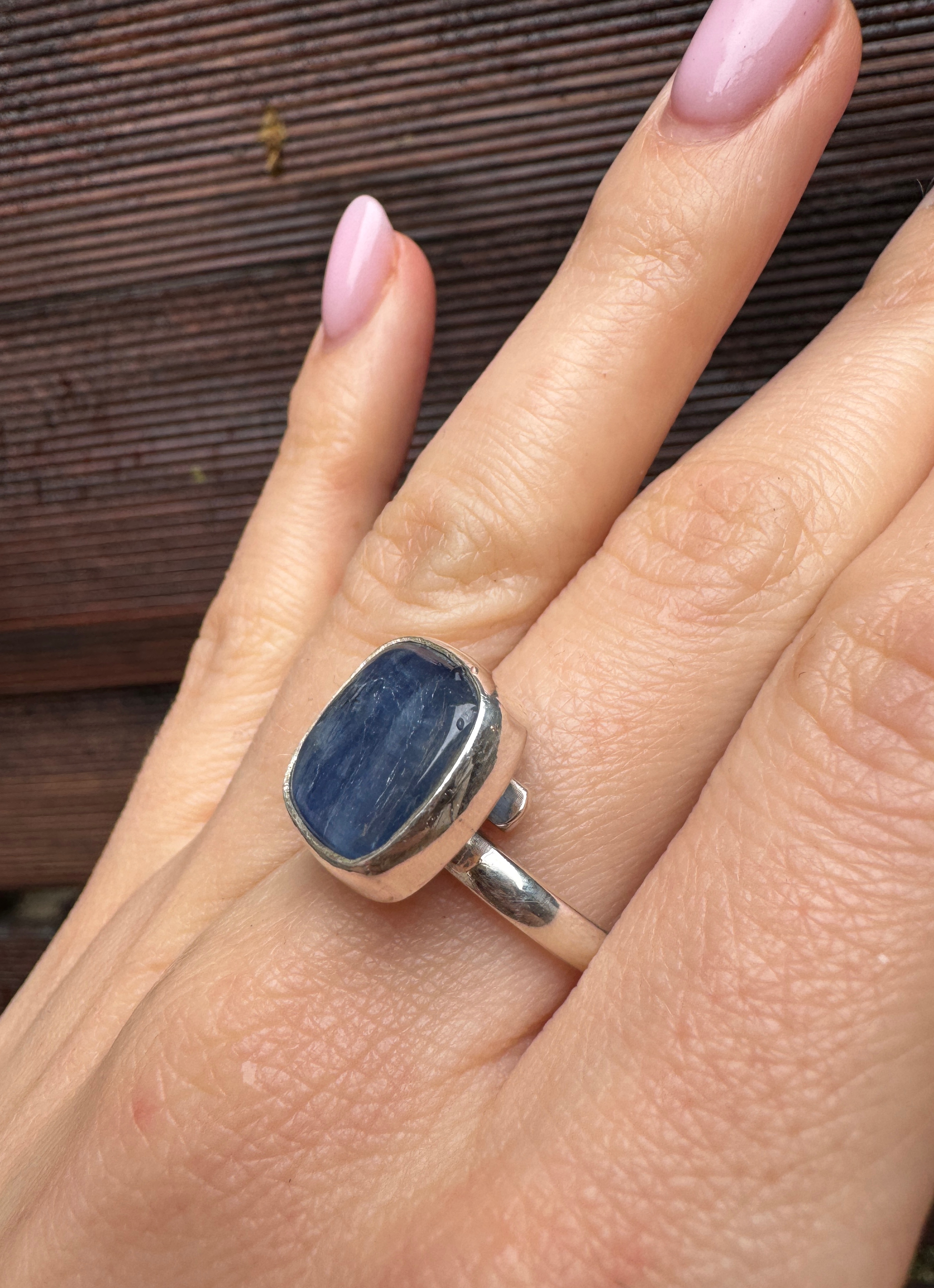 Ręcznie wykonany pierścionek z kyanitu i srebra pr.925