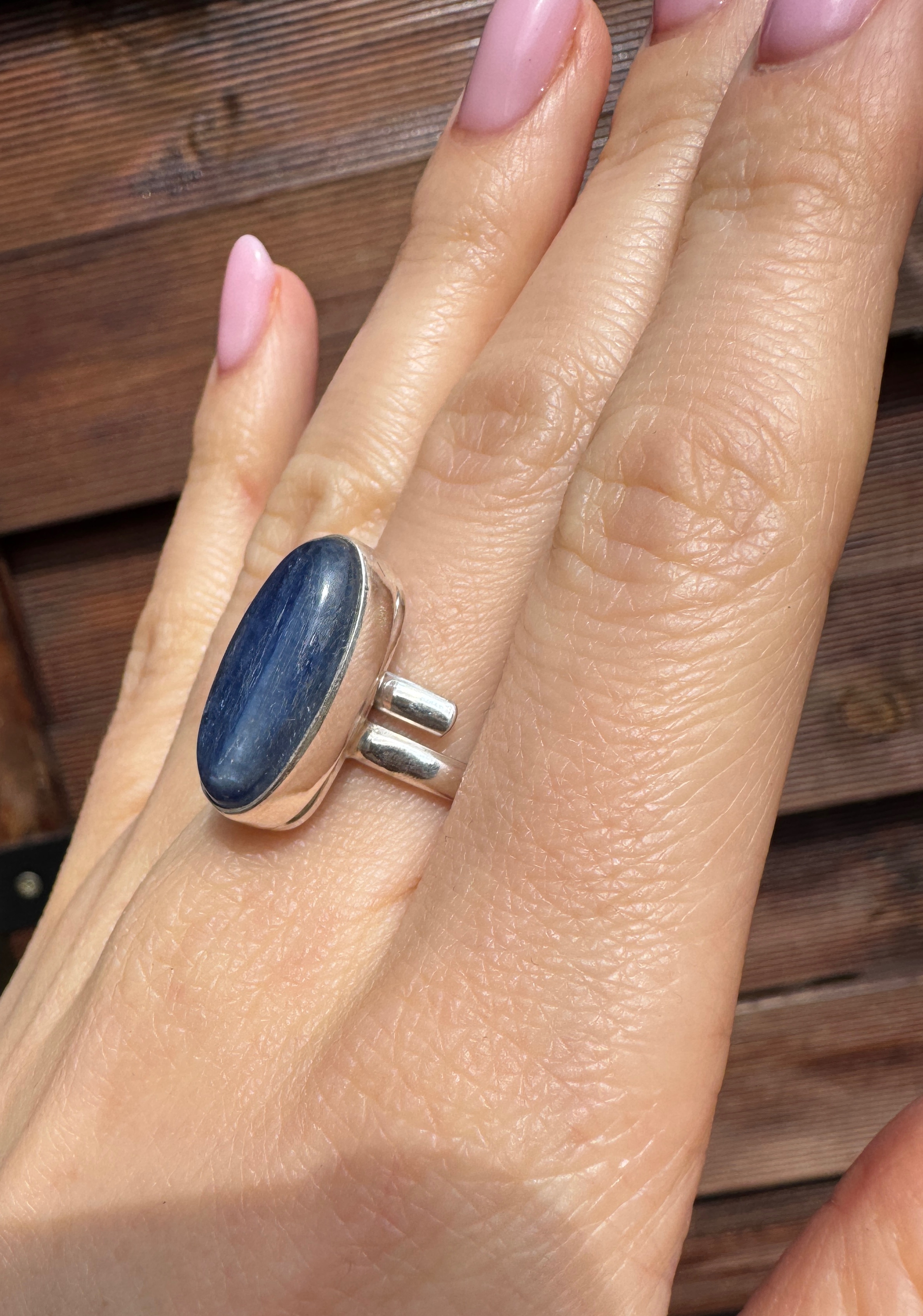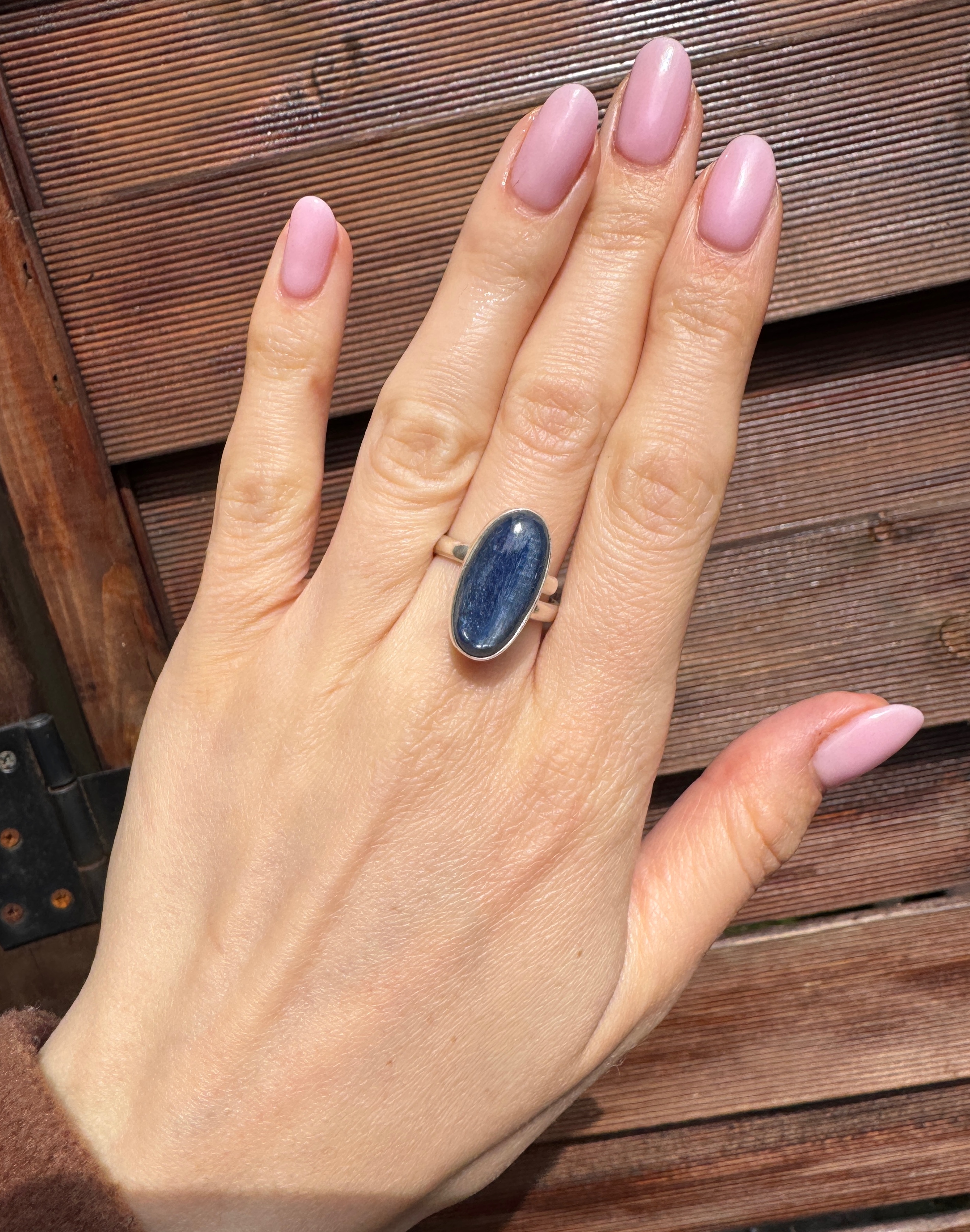 Ręcznie wykonany pierścionek z kyanitu i srebra pr.925