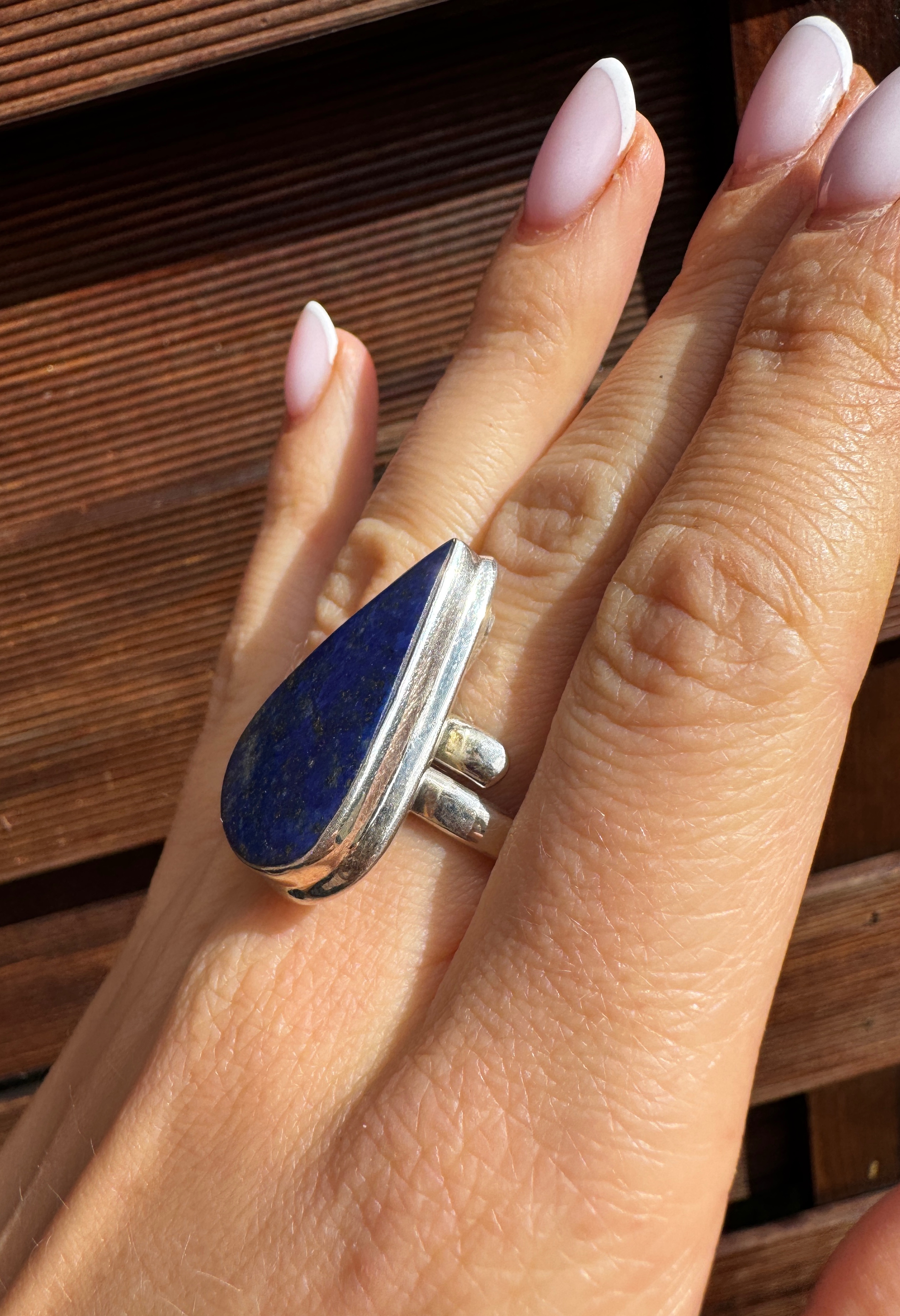 Ręcznie wykonany pierścionek z niebieskiego lapisu lazuli i srebra pr.925