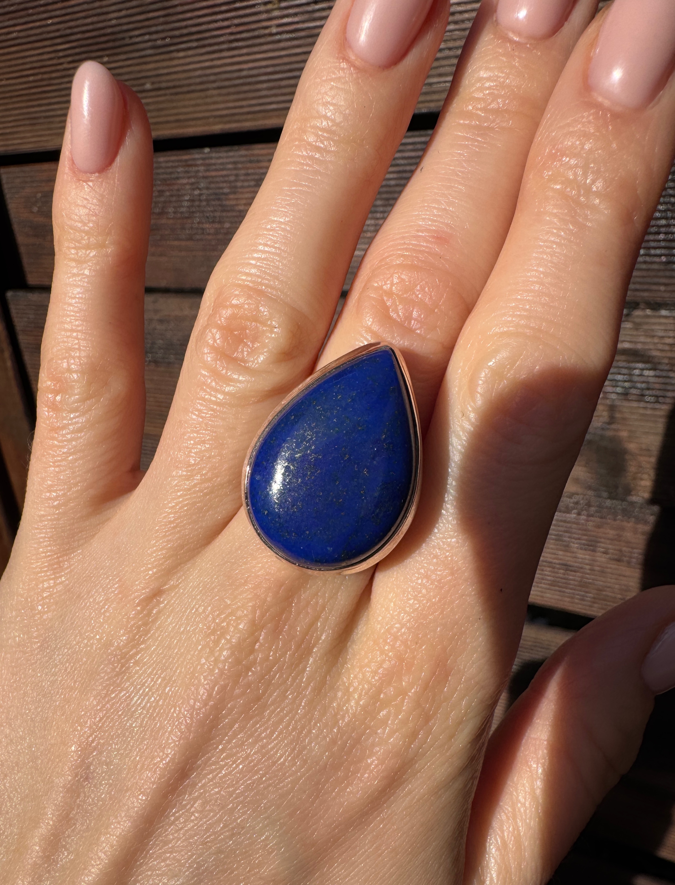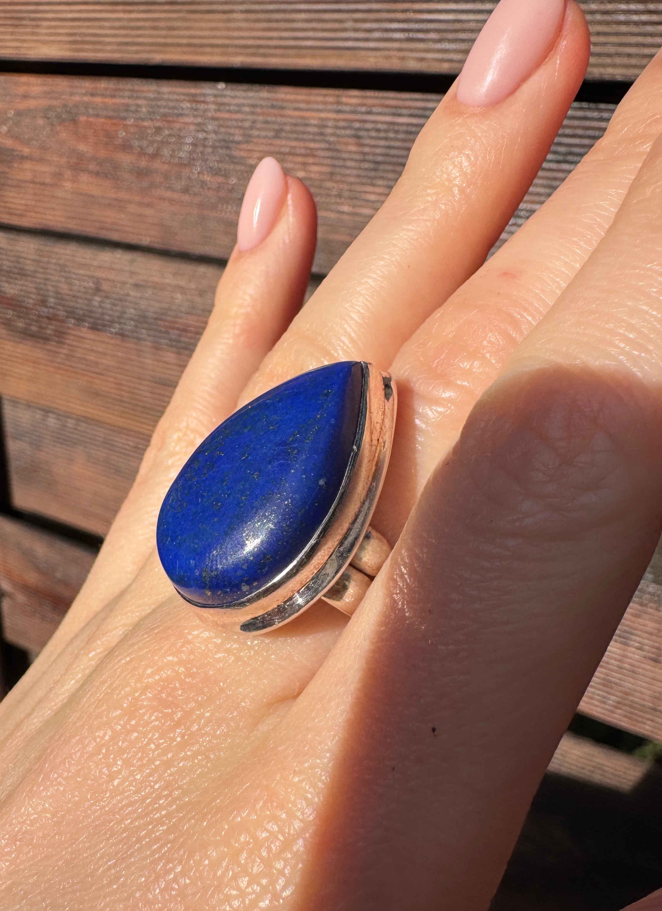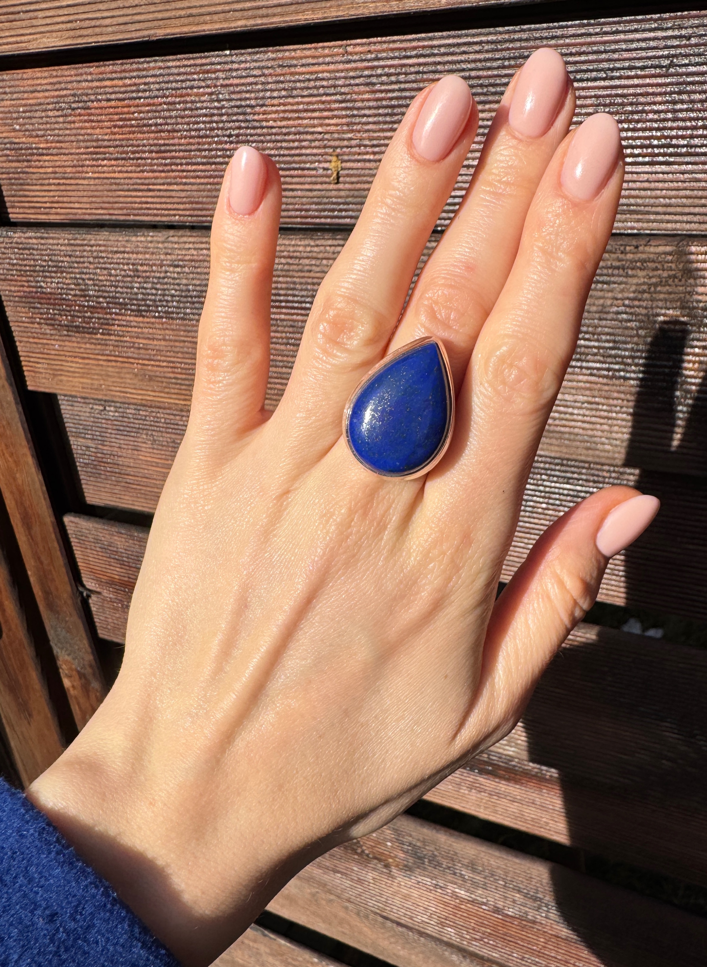 Ręcznie wykonany pierścionek z niebieskiego lapisu lazuli i srebra pr.925
