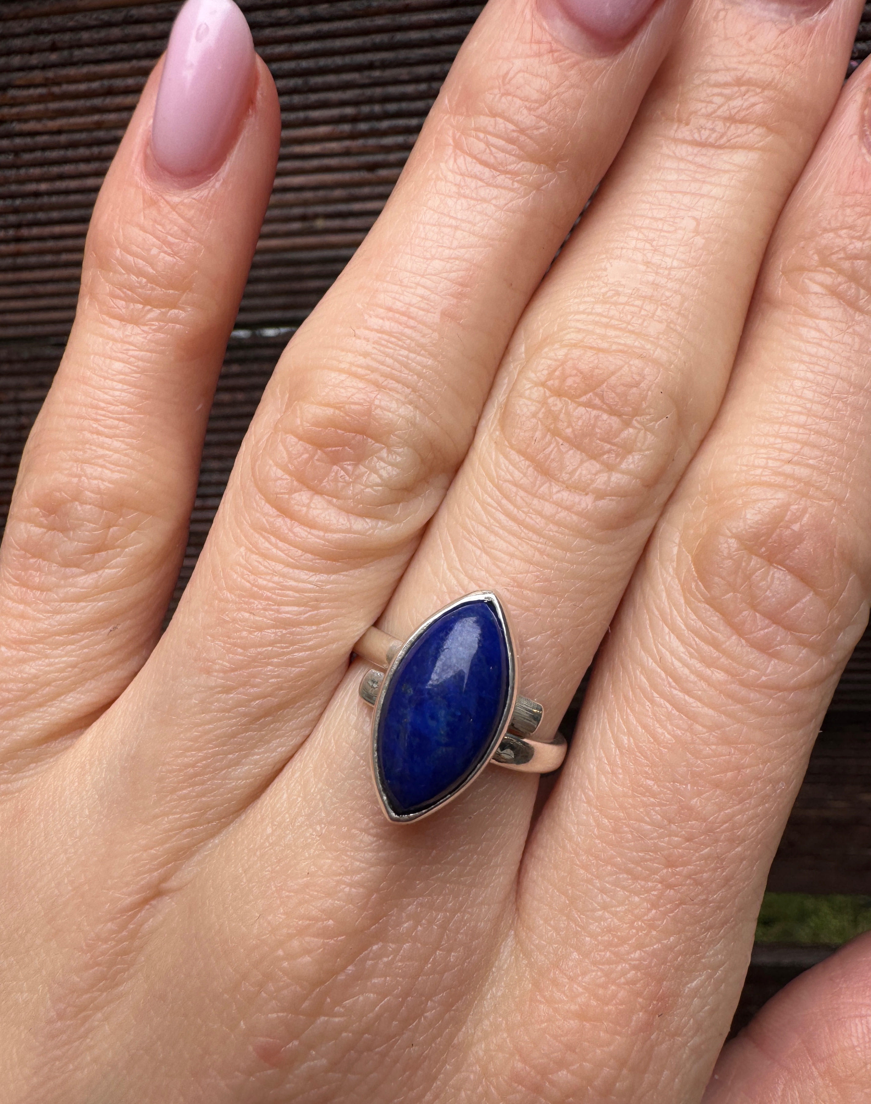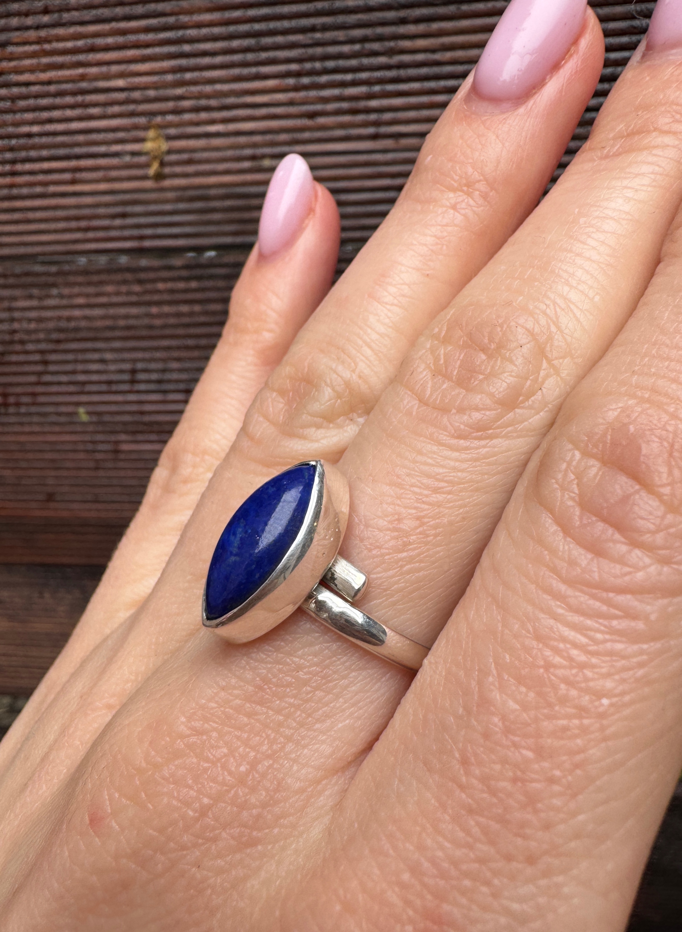 Ręcznie wykonany pierścionek z niebieskiego lapisu lazuli i srebra pr.925
