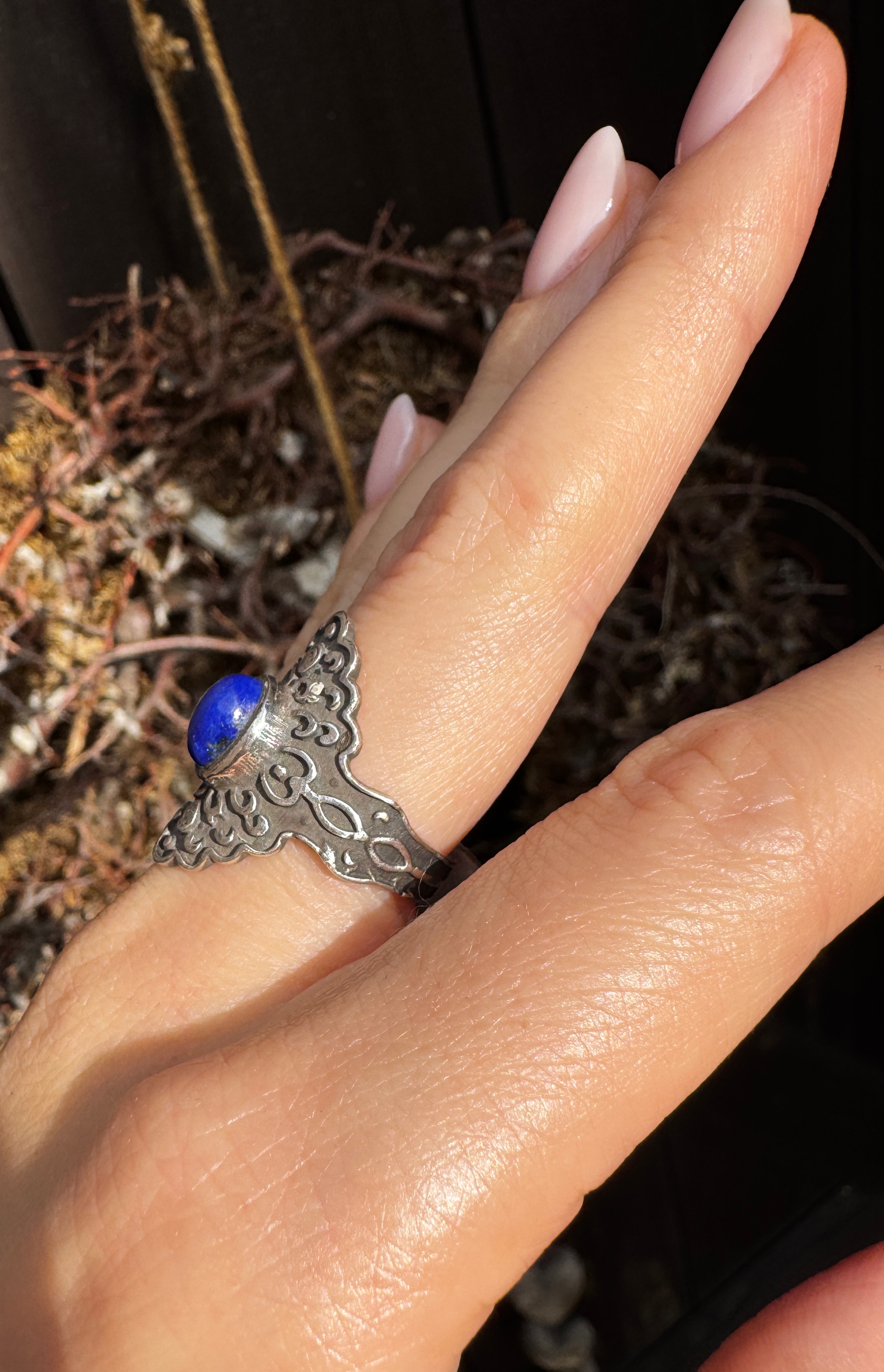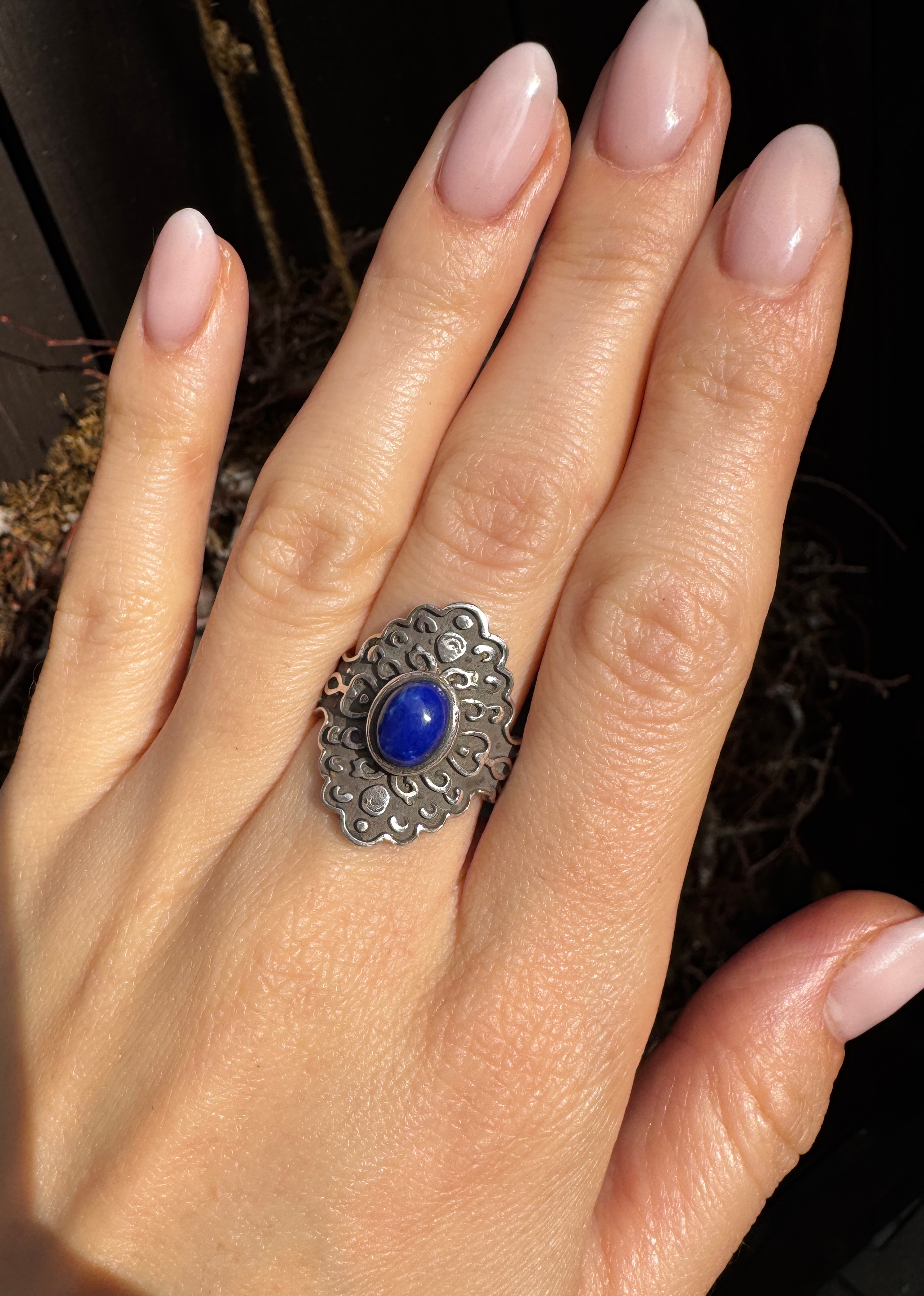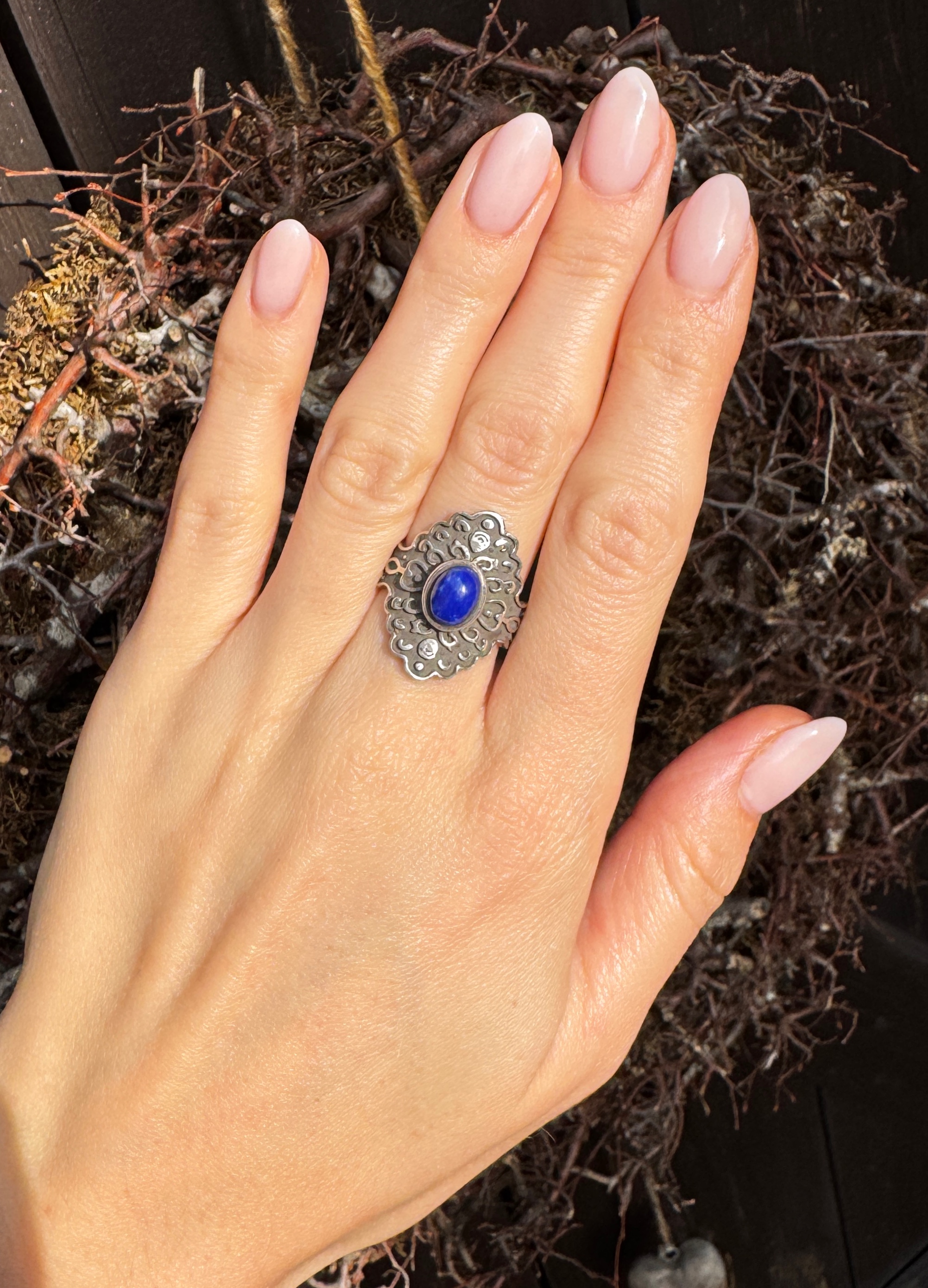 Ręcznie wykonany pierścionek z owalnego lapisu lazuli i srebra pr.925