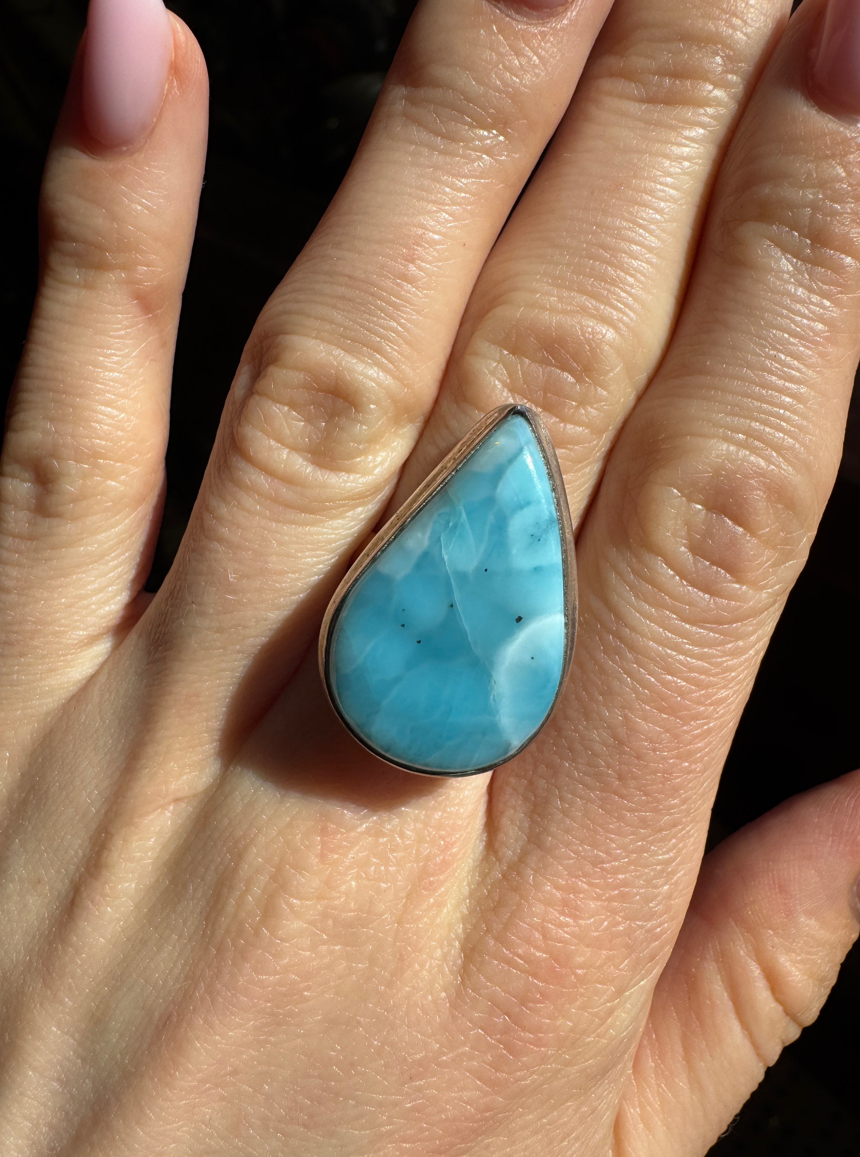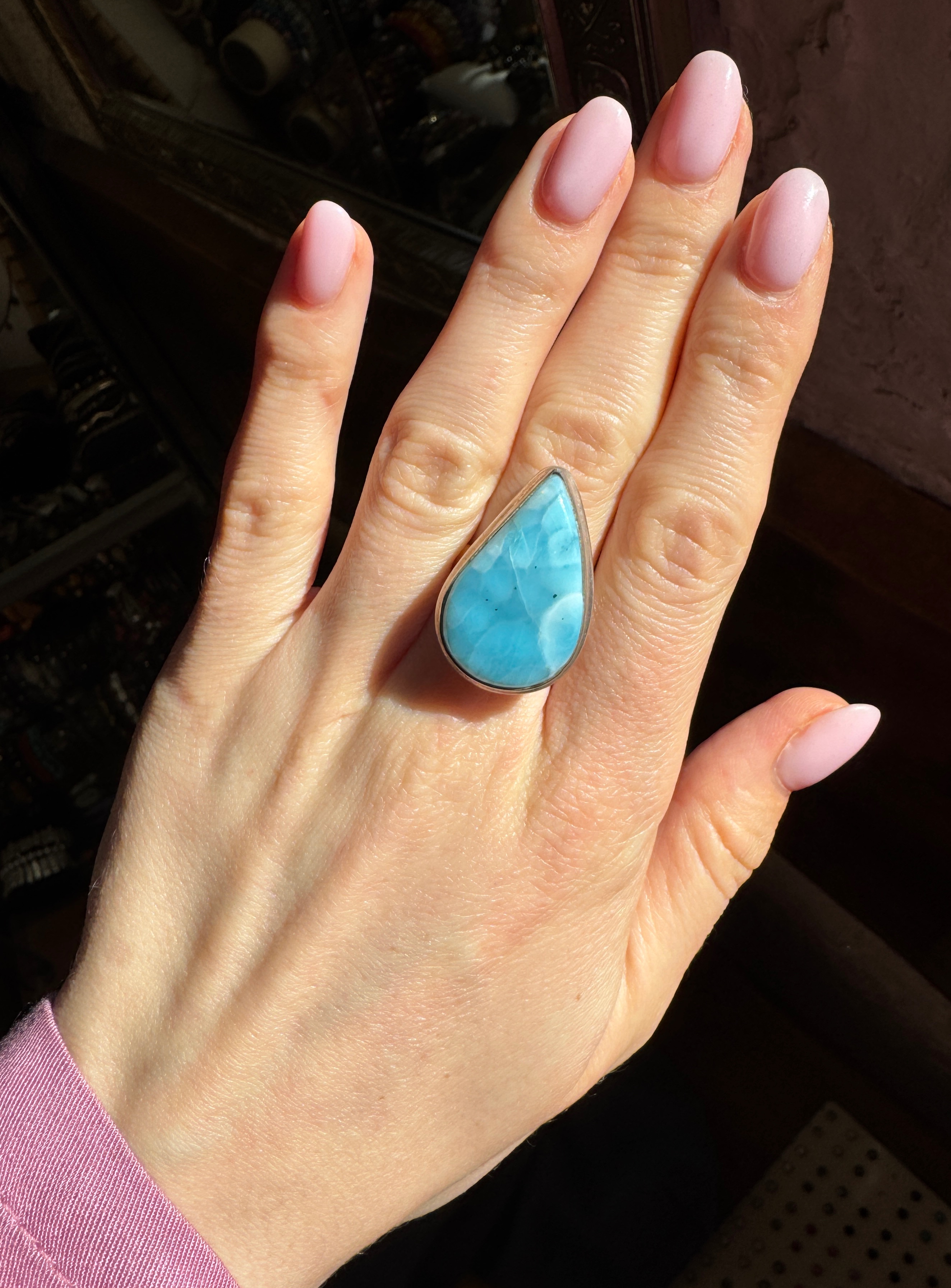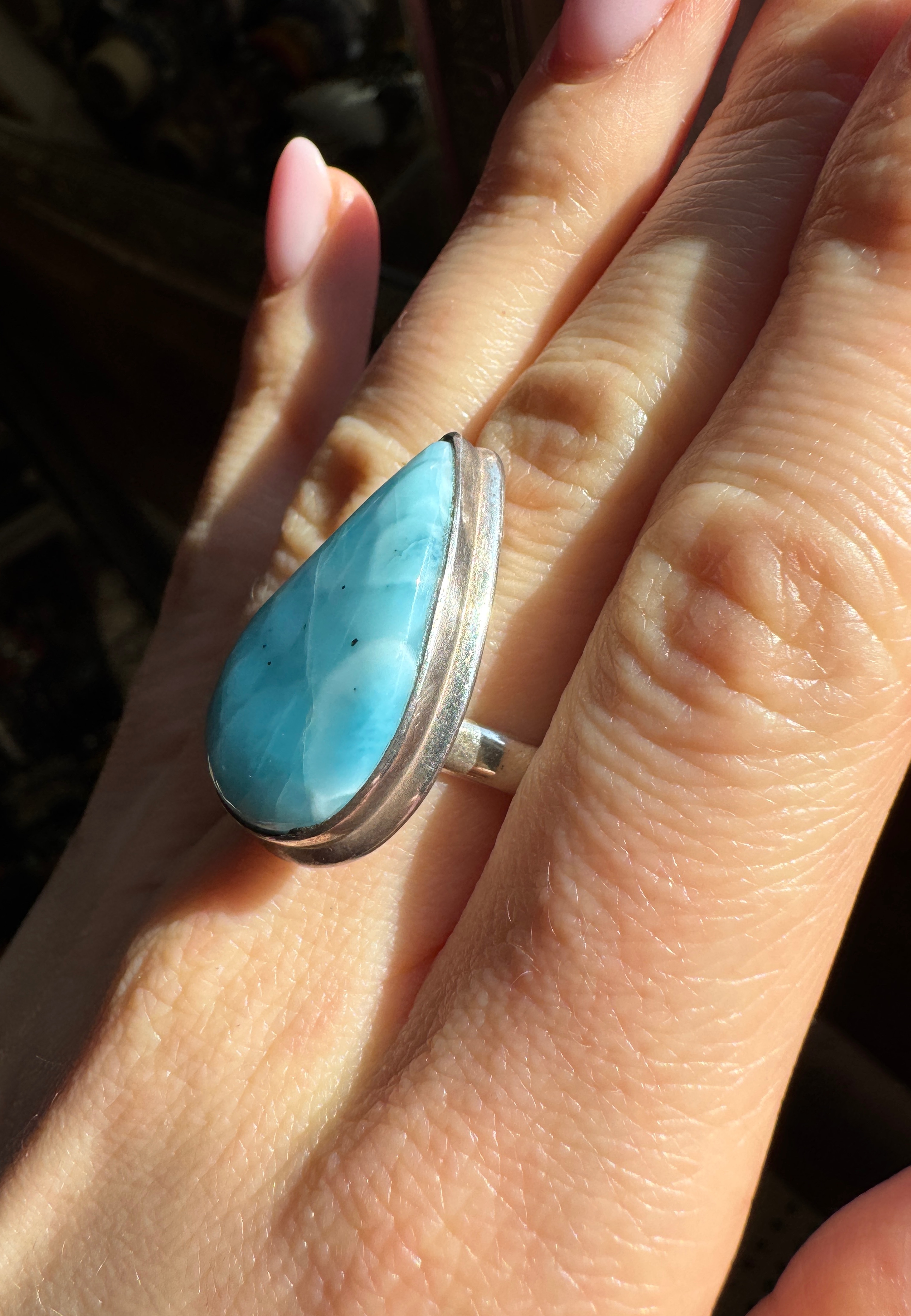 Ręcznie wykonany pierścionek z pięknym larimarem i srebrem pr.925