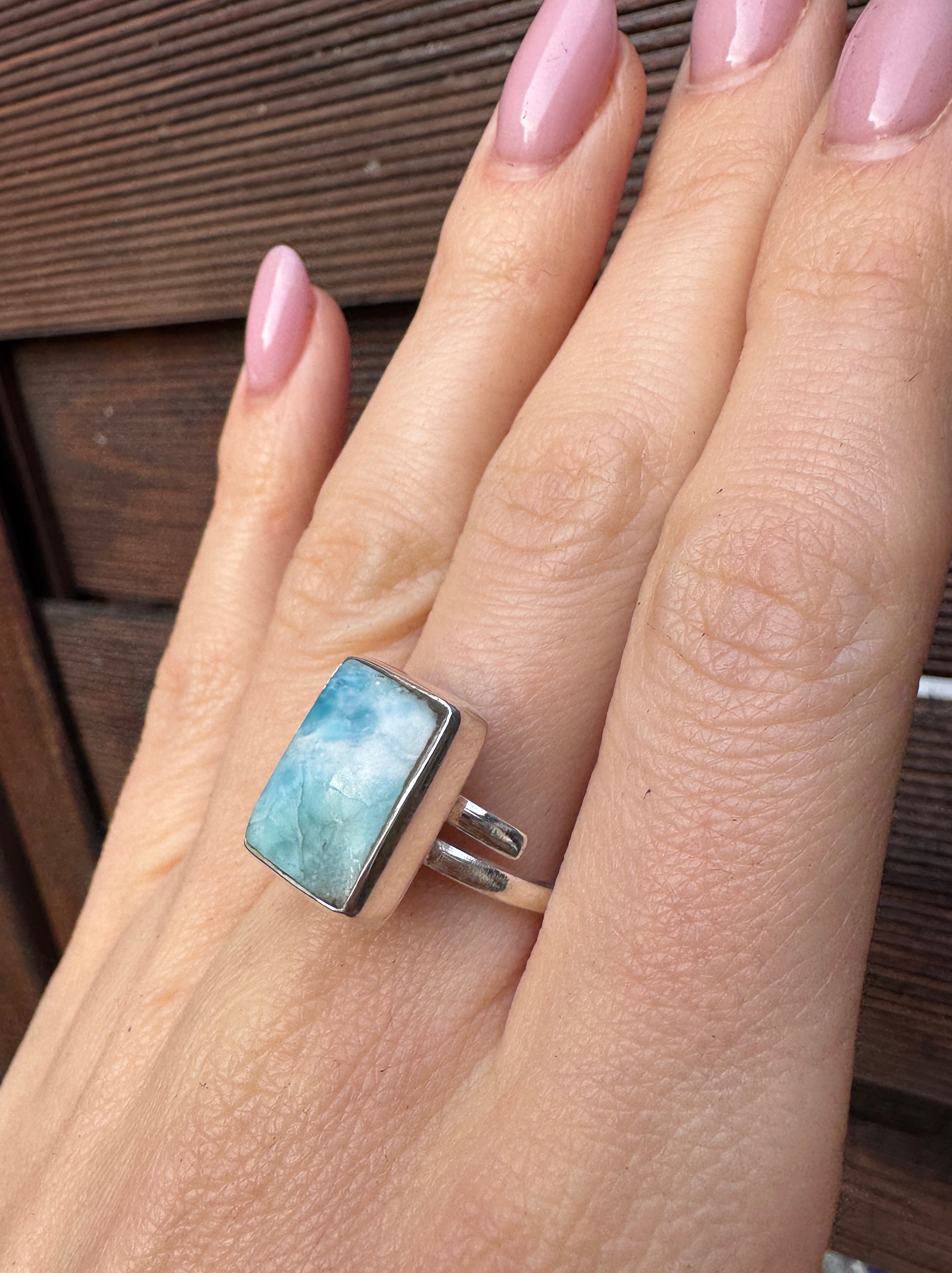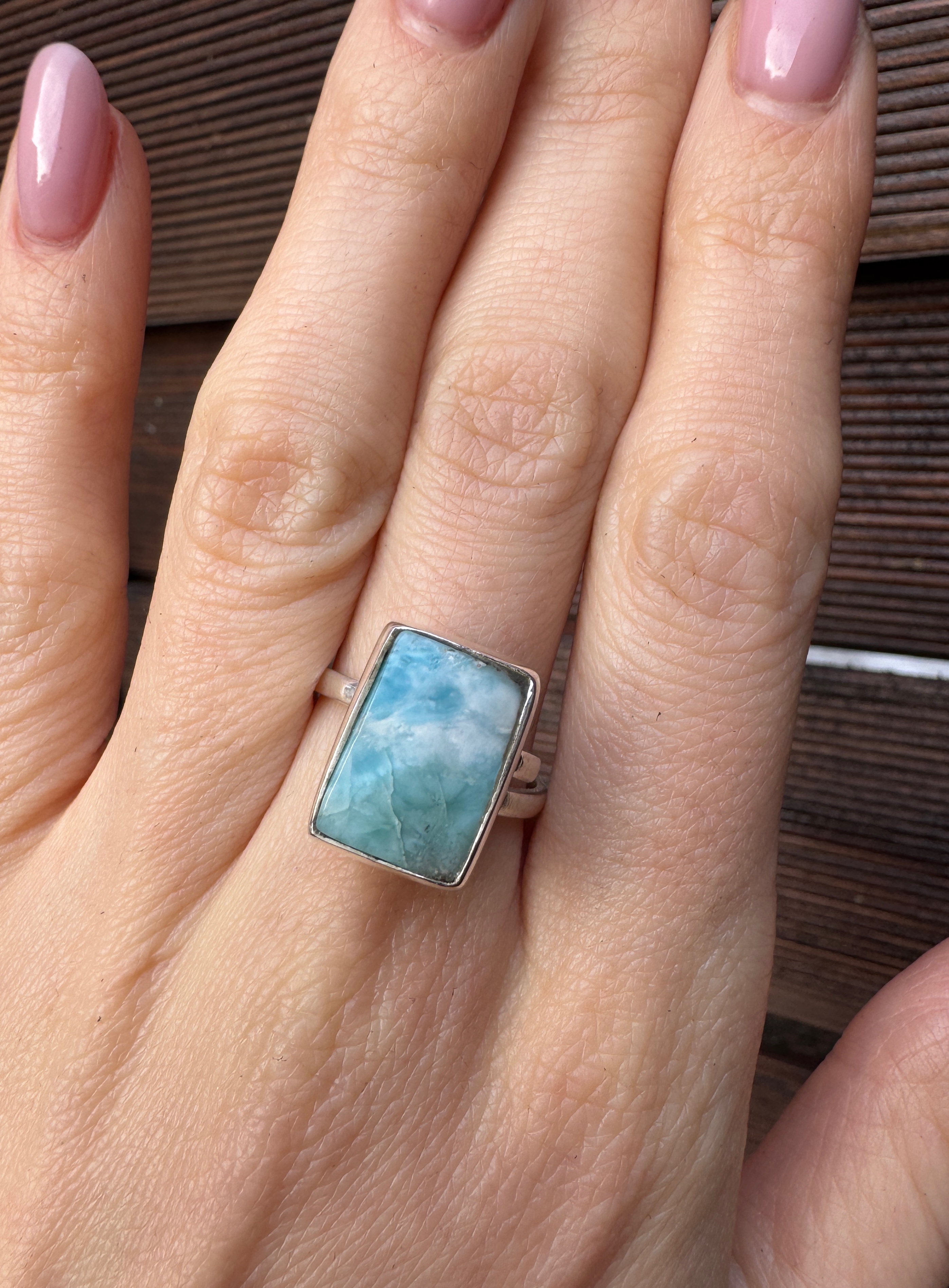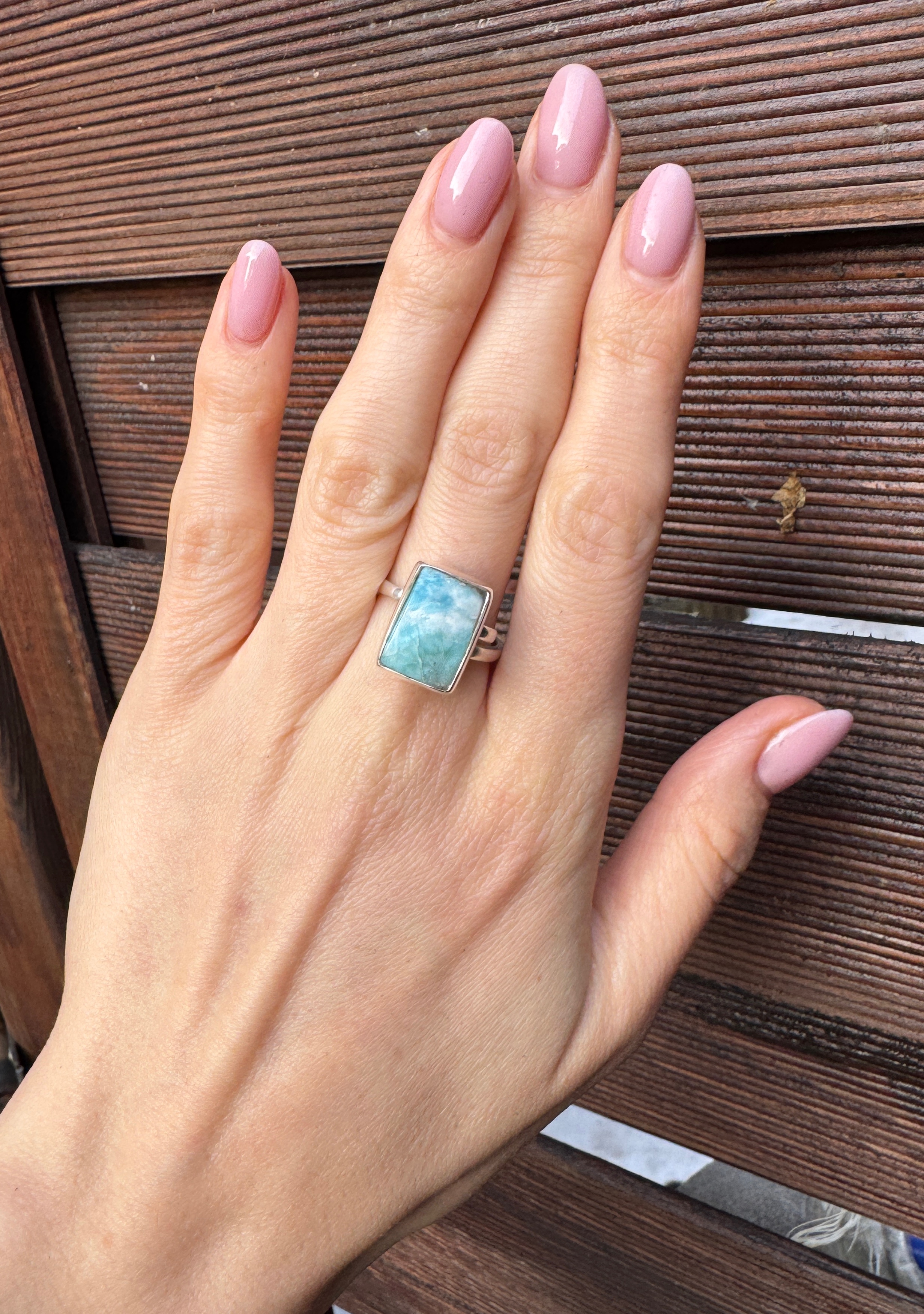 Ręcznie wykonany pierścionek z pięknym larimarem i srebrem pr.925
