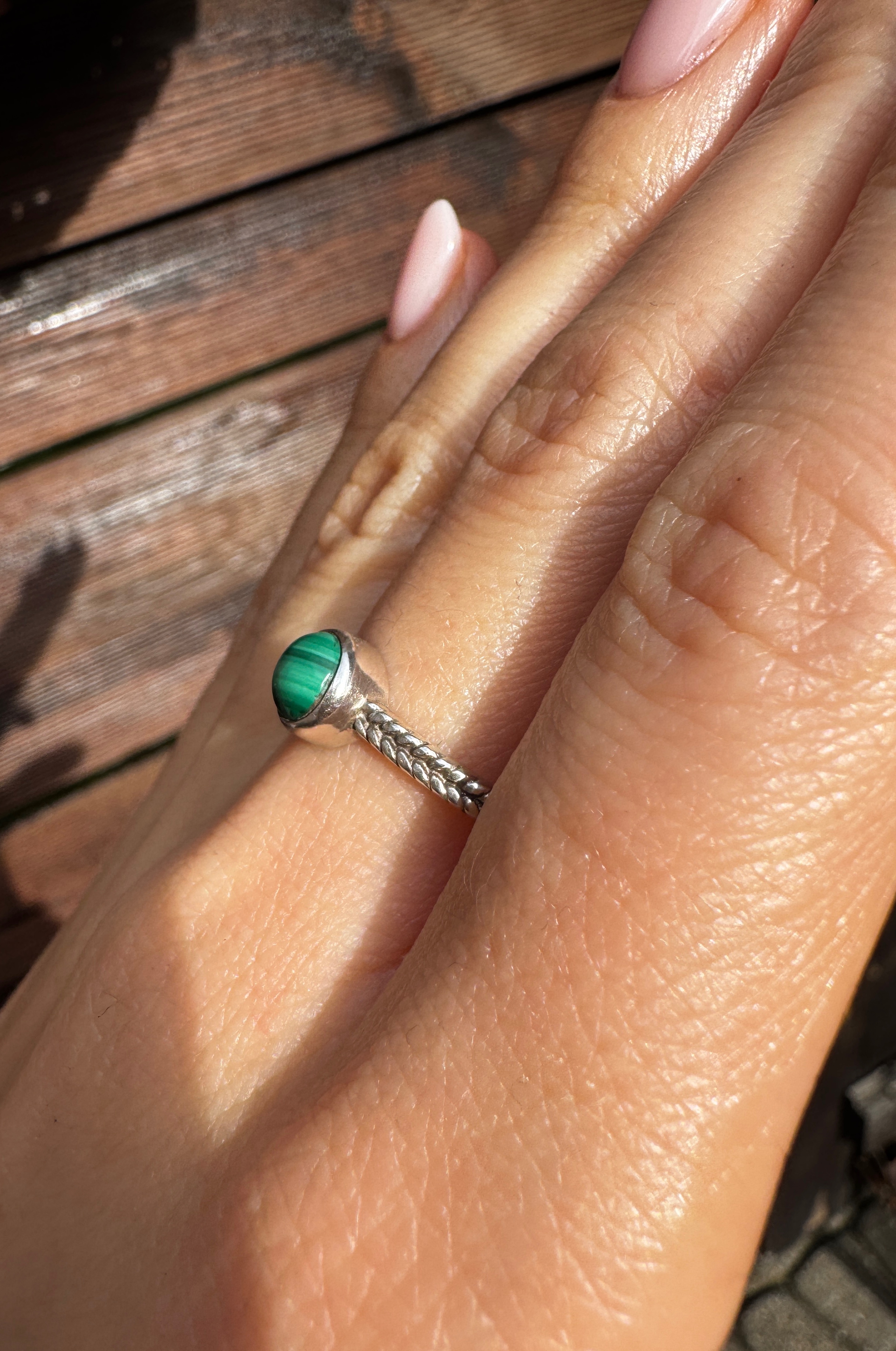 Ręcznie wykonany pierścionek z zielonego malachitu i srebra pr.925