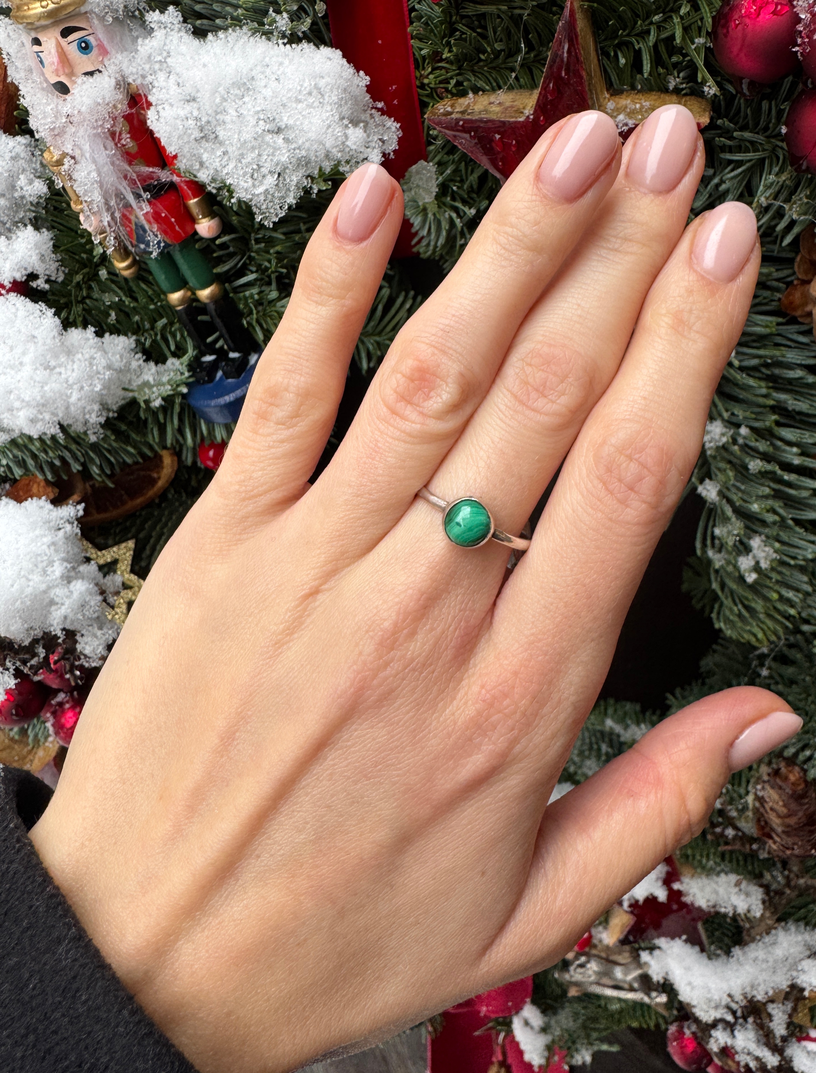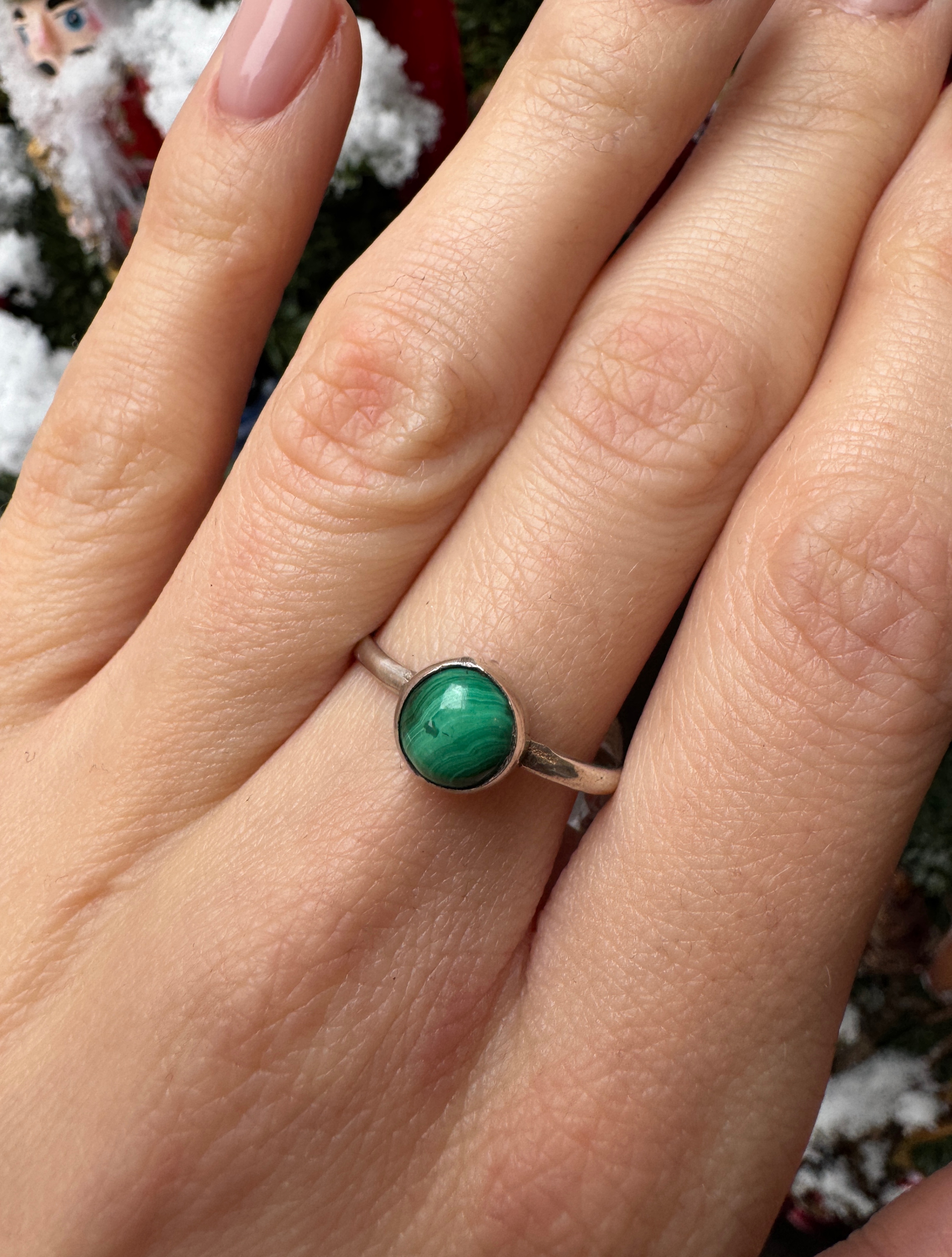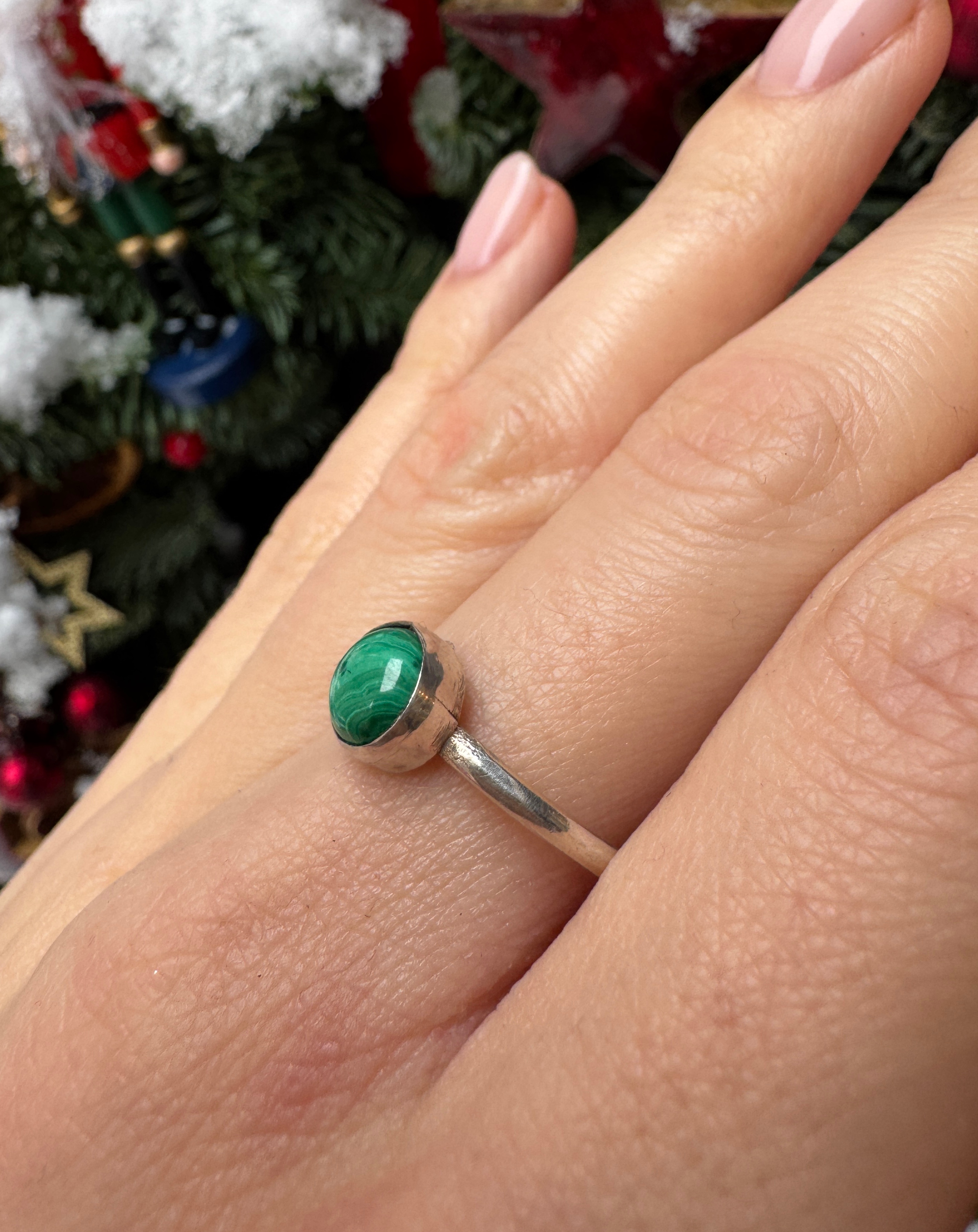 Ręcznie wykonany pierścionek z  zielonego malachitu i srebra pr.925