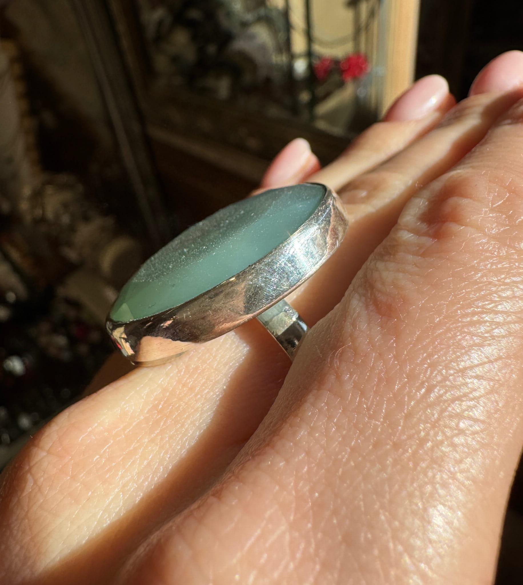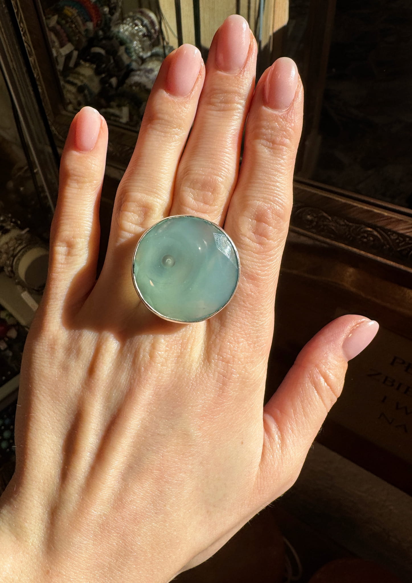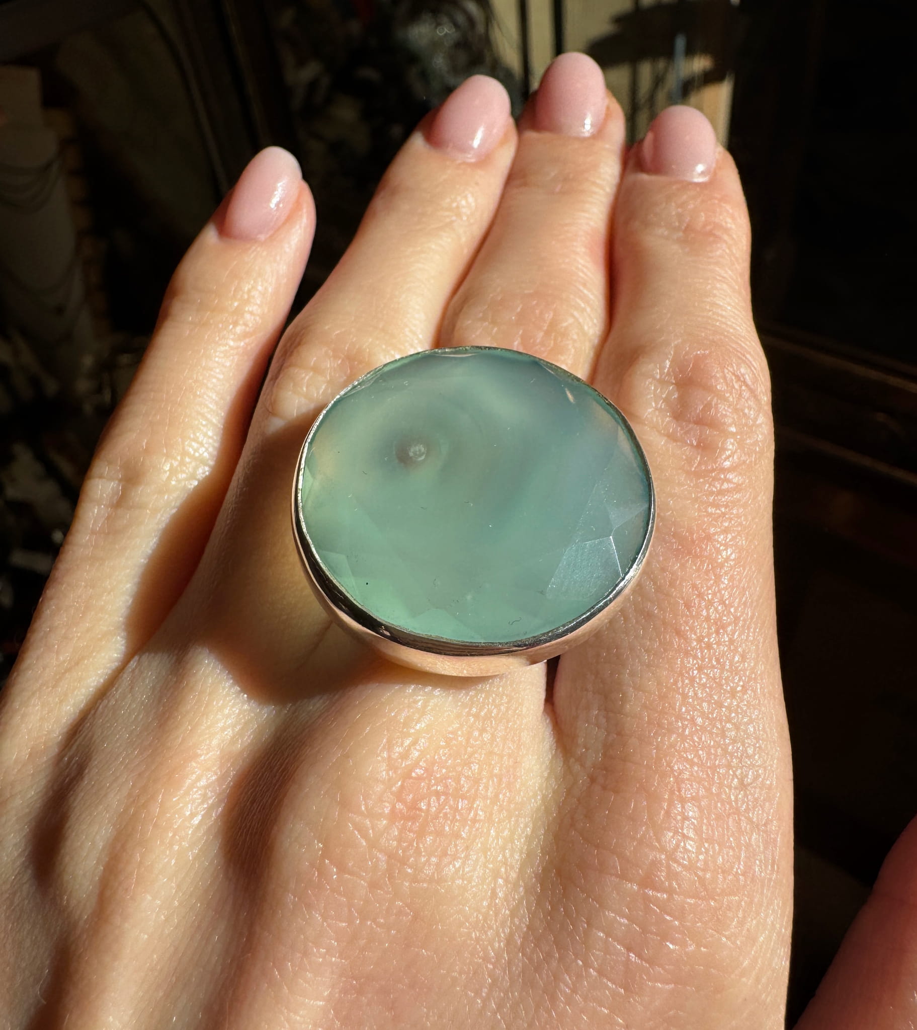 Pierścionek miętowy chalcedon fasetowany