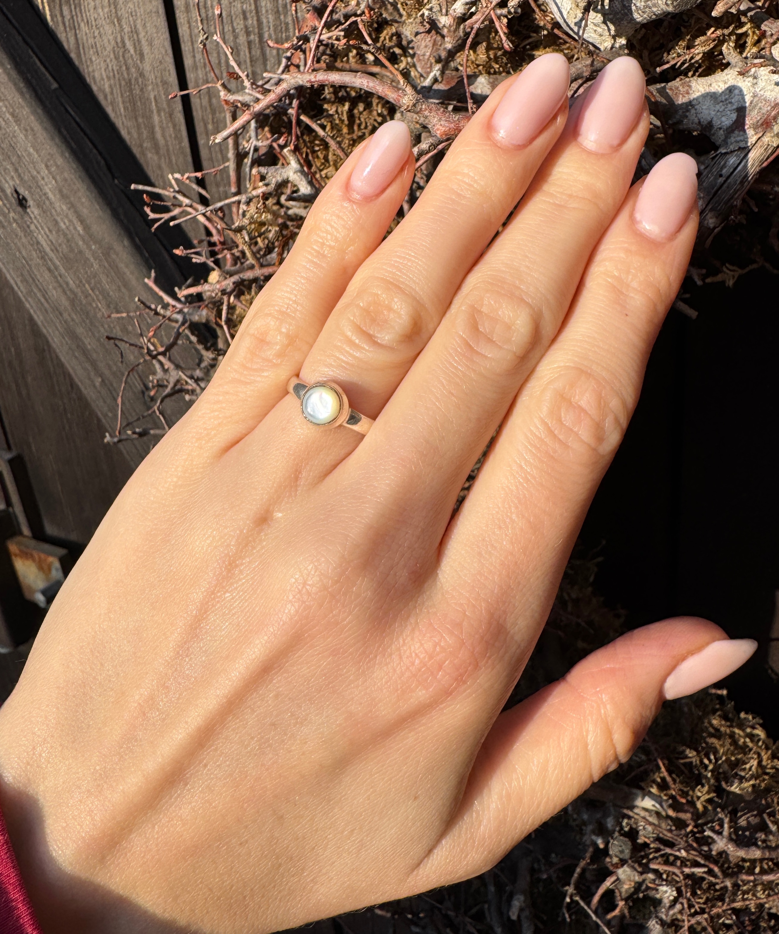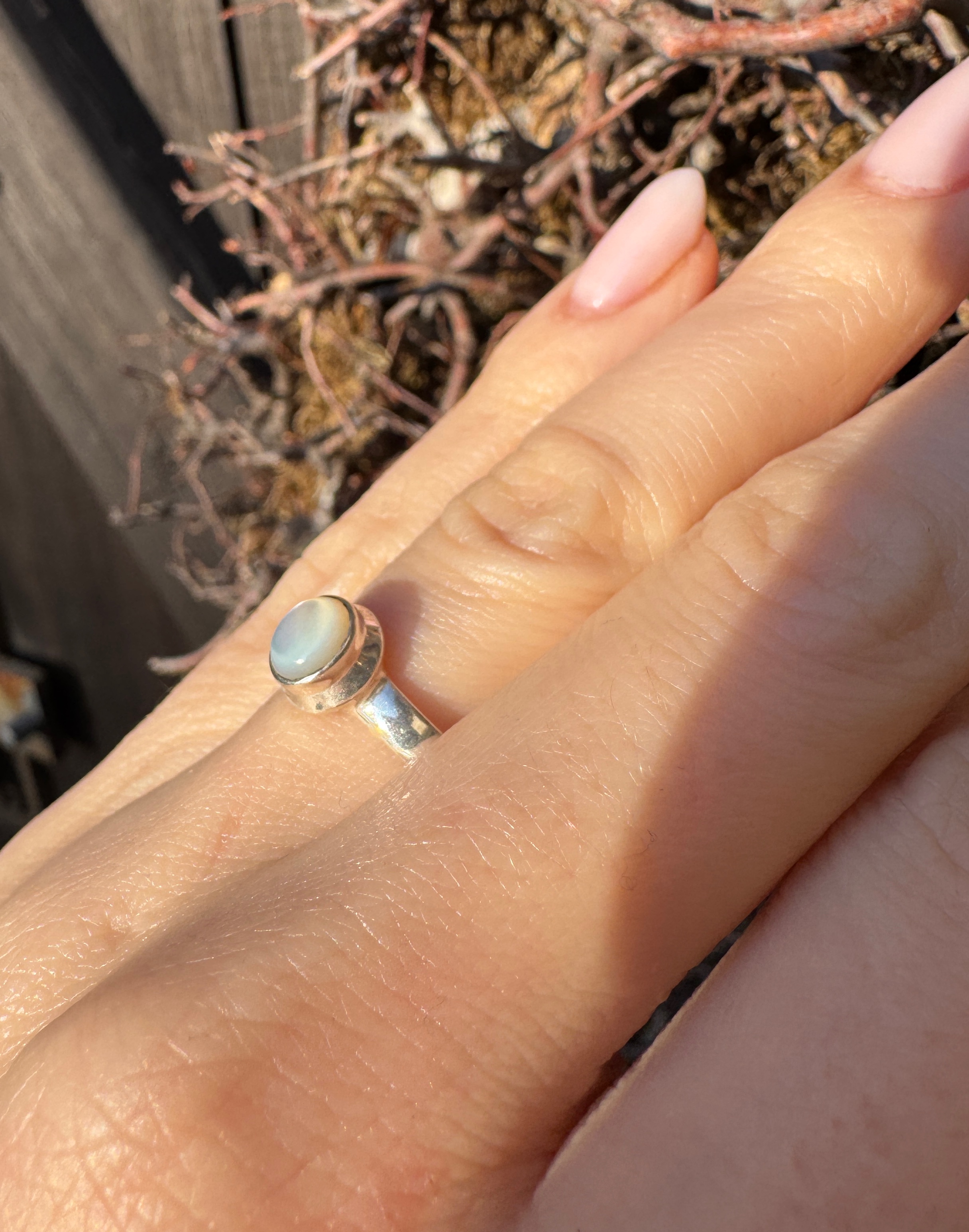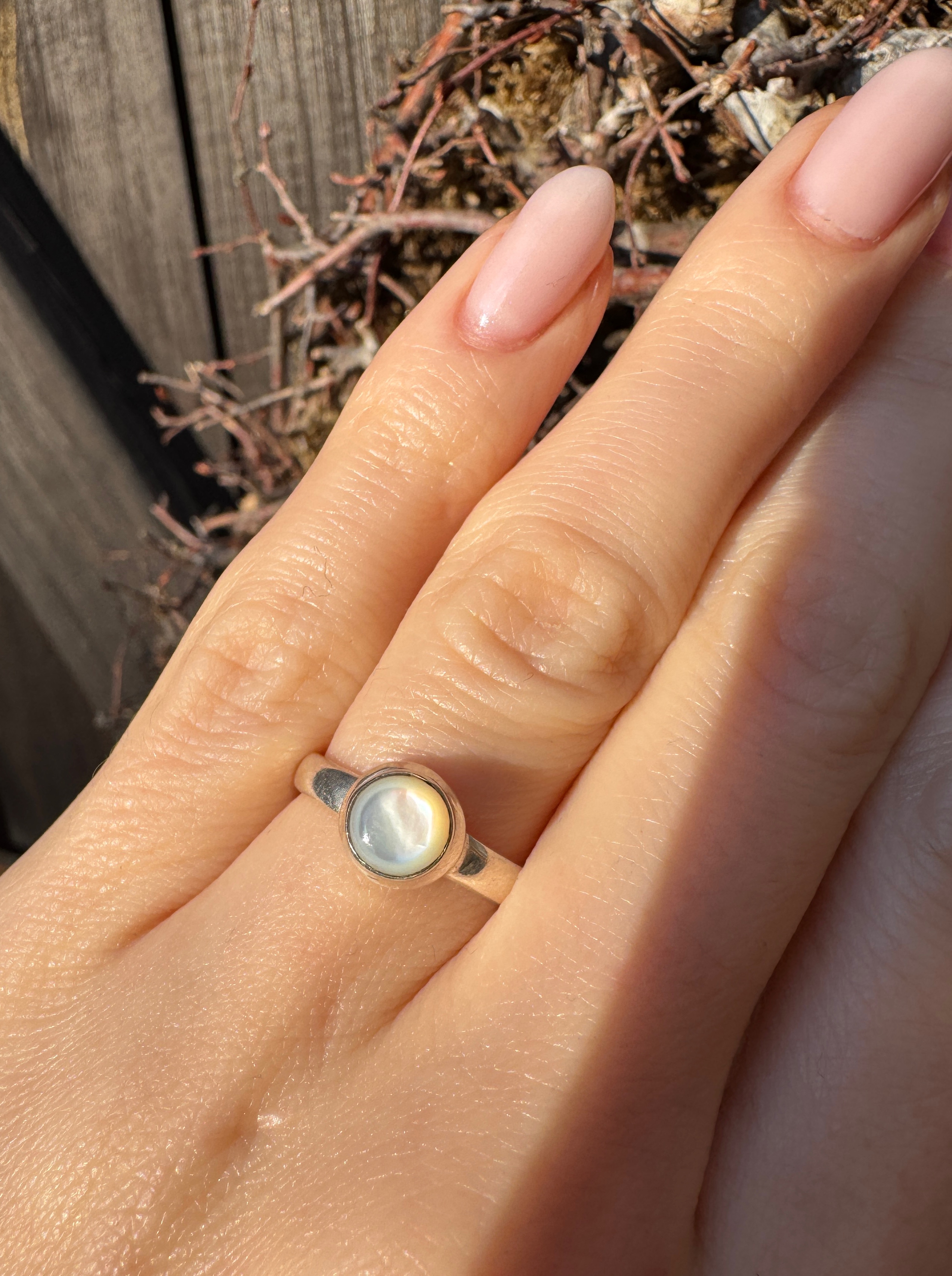 Ręcznie wykonany pierścionek z muszlą białą w srebrze pr.925