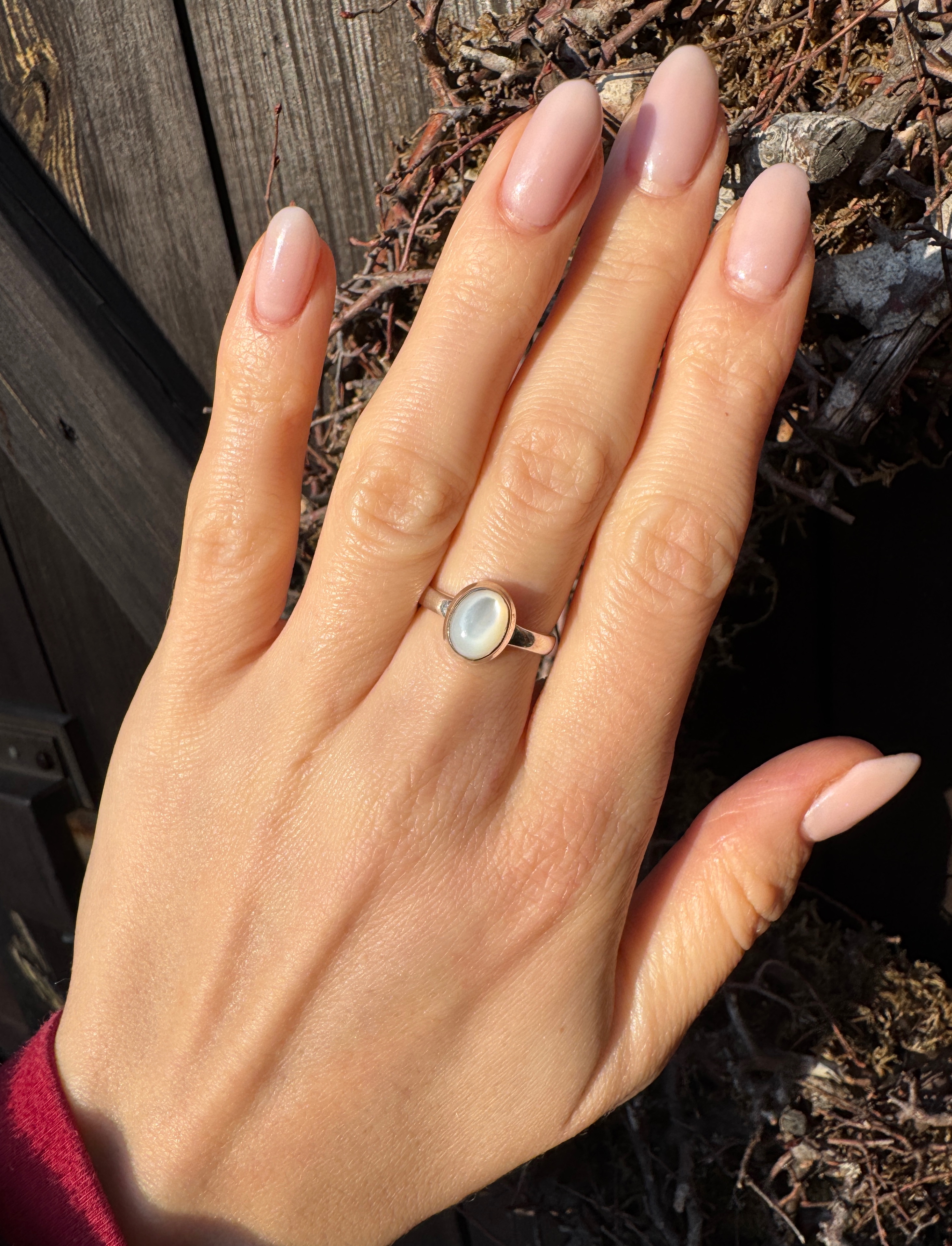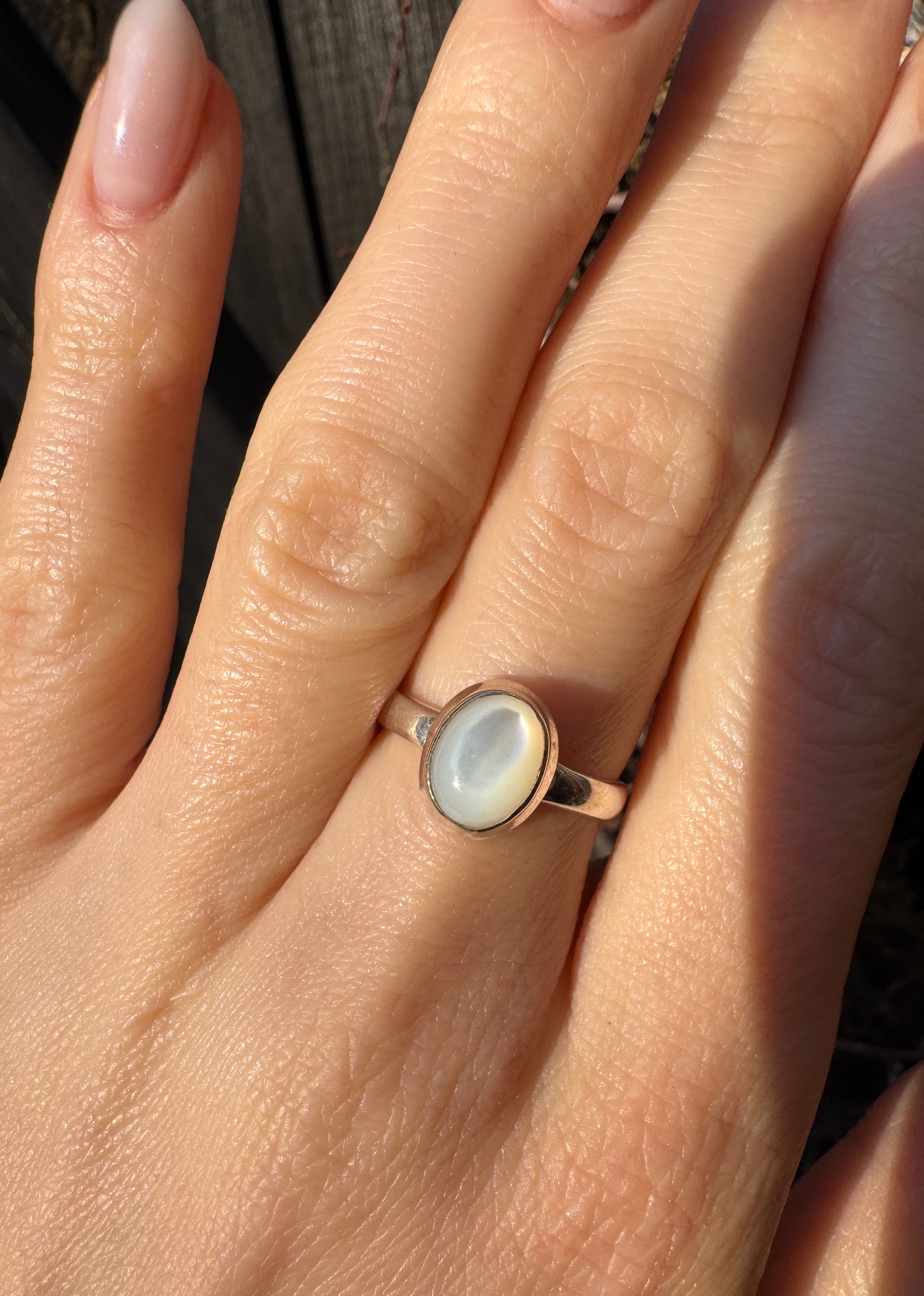 Pierścionek muszla biała owal