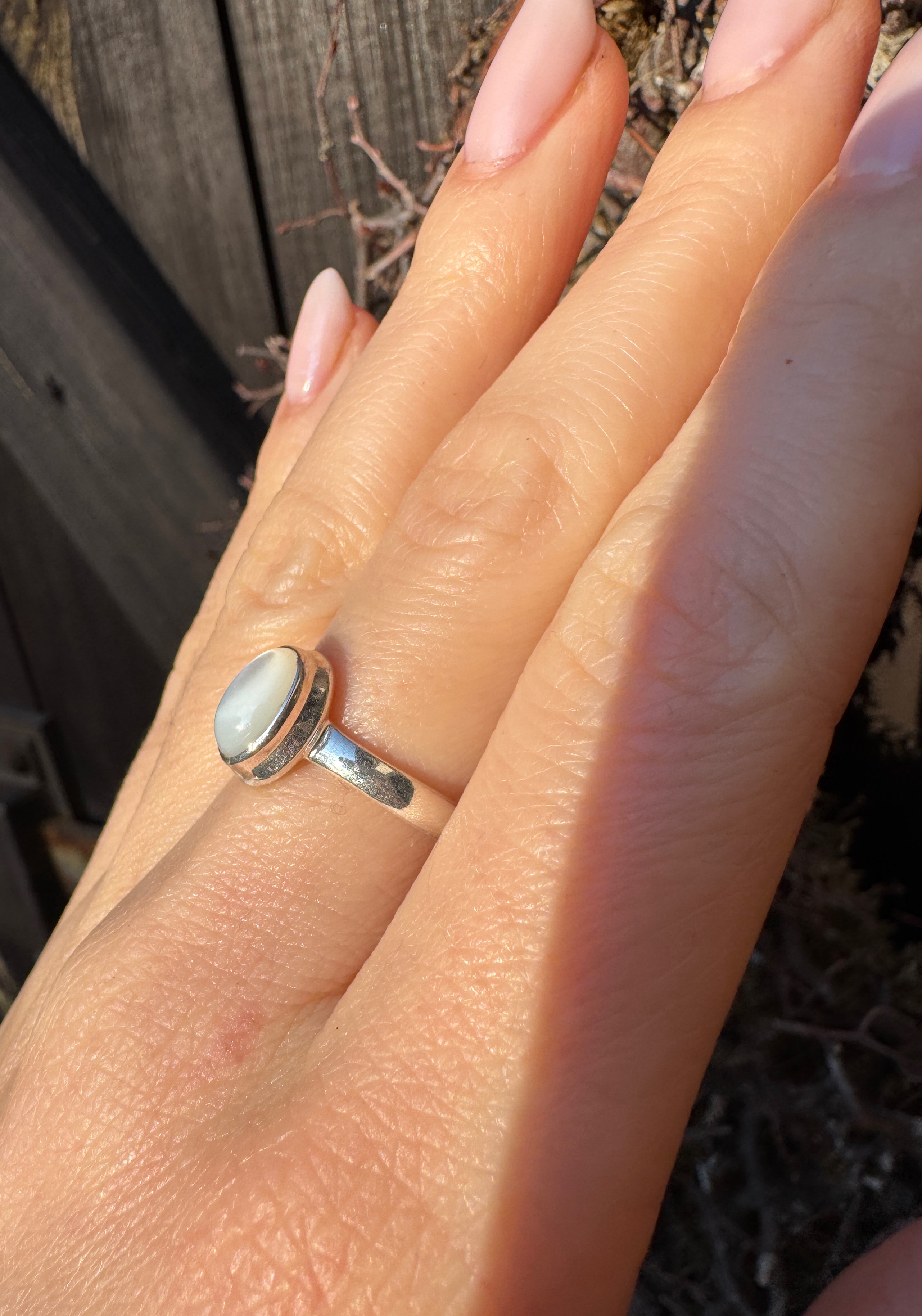 Ręcznie wykonany pierścionek z muszlą białą w srebrze pr.925