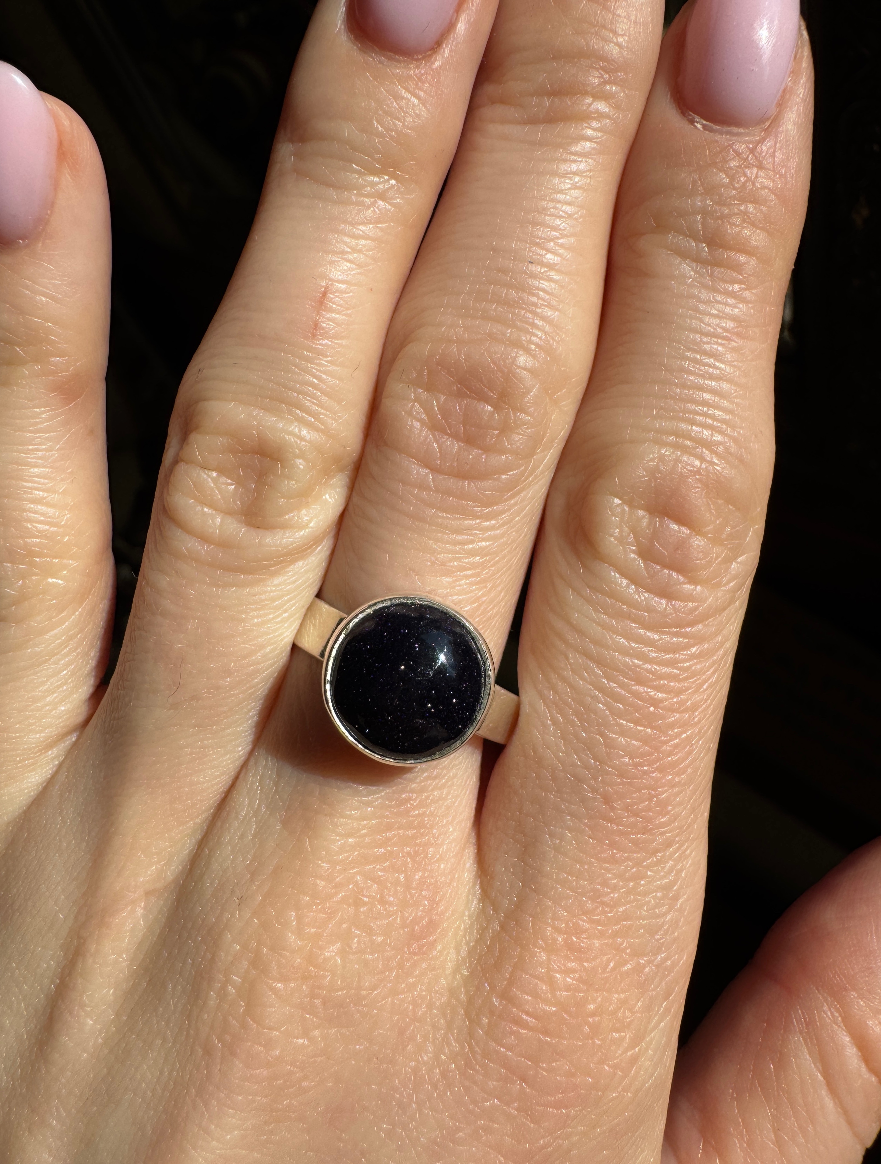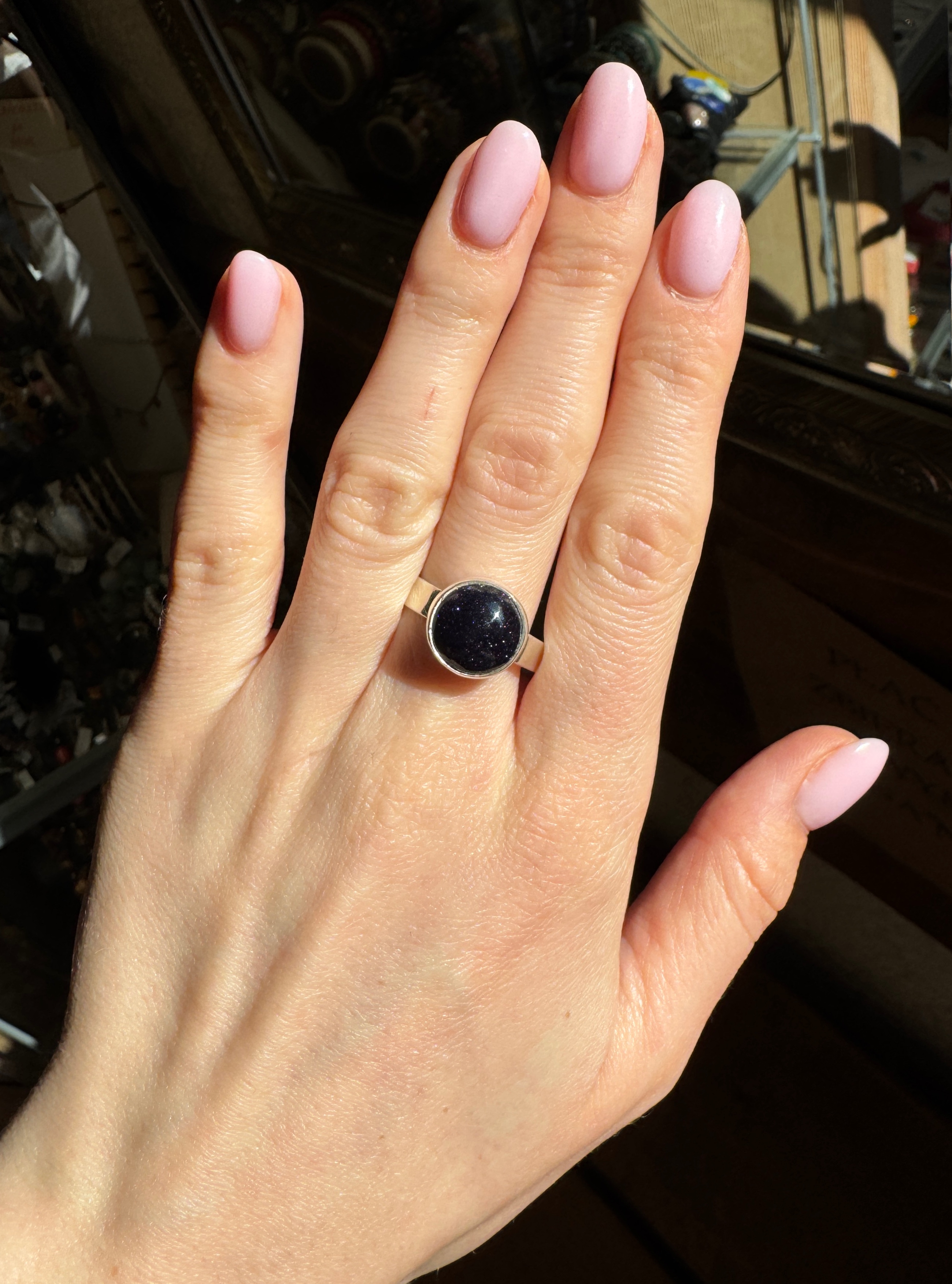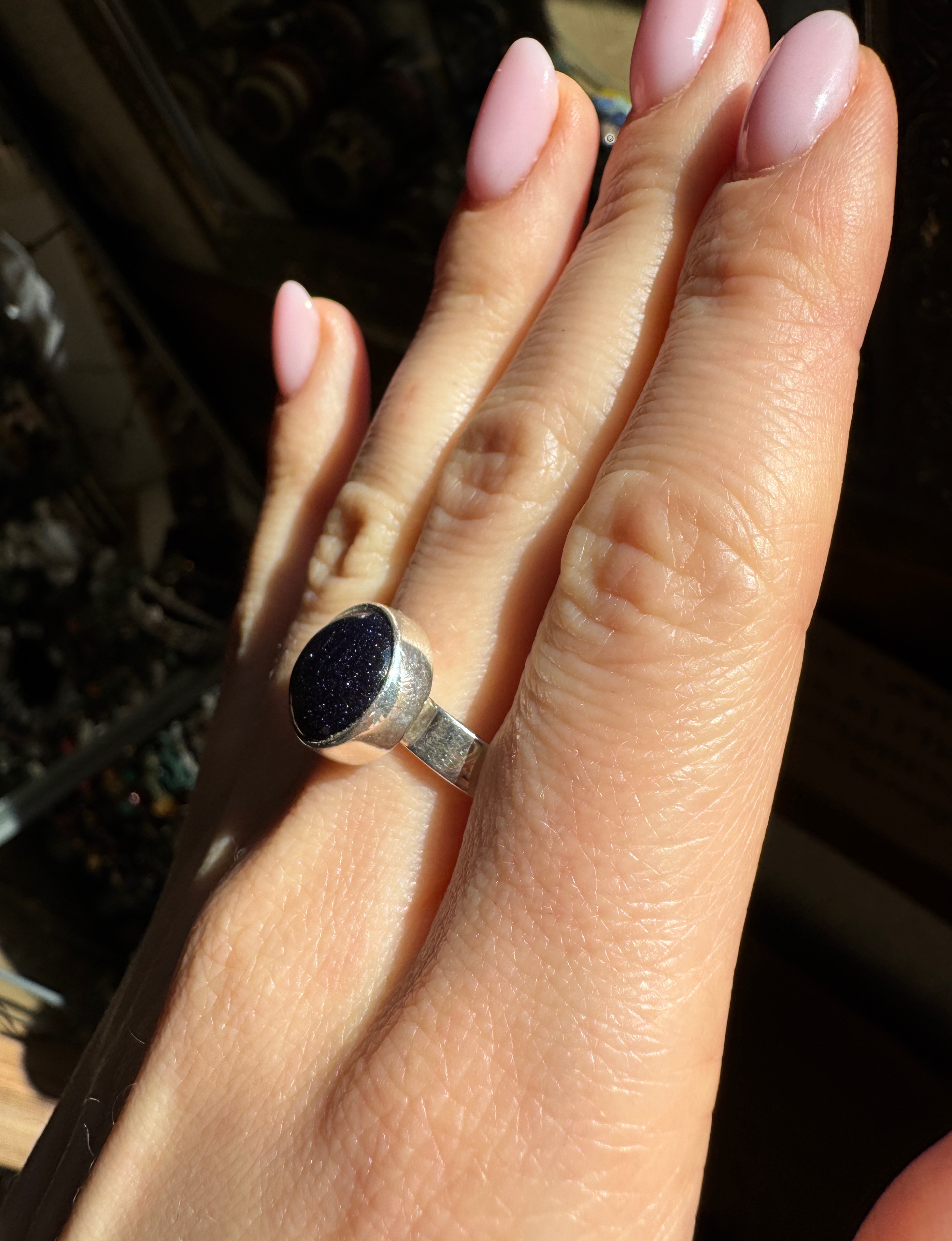 Ręcznie wykonany pierścionek z granatowej Nocy Kairu i srebra pr.925