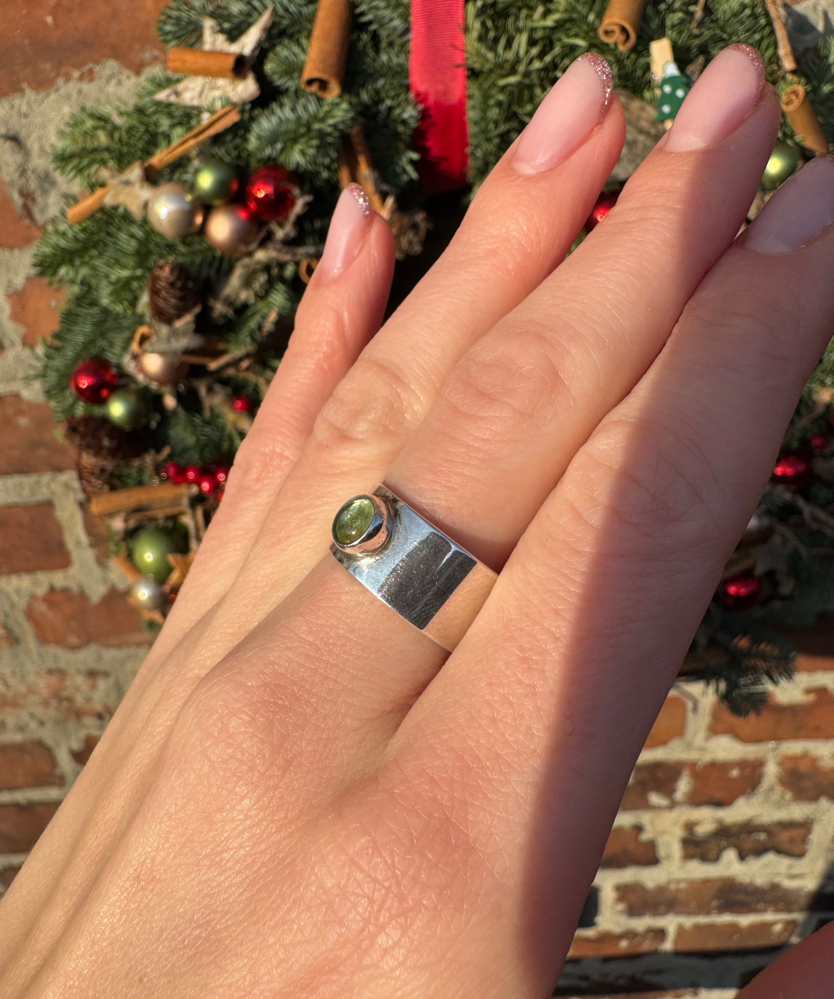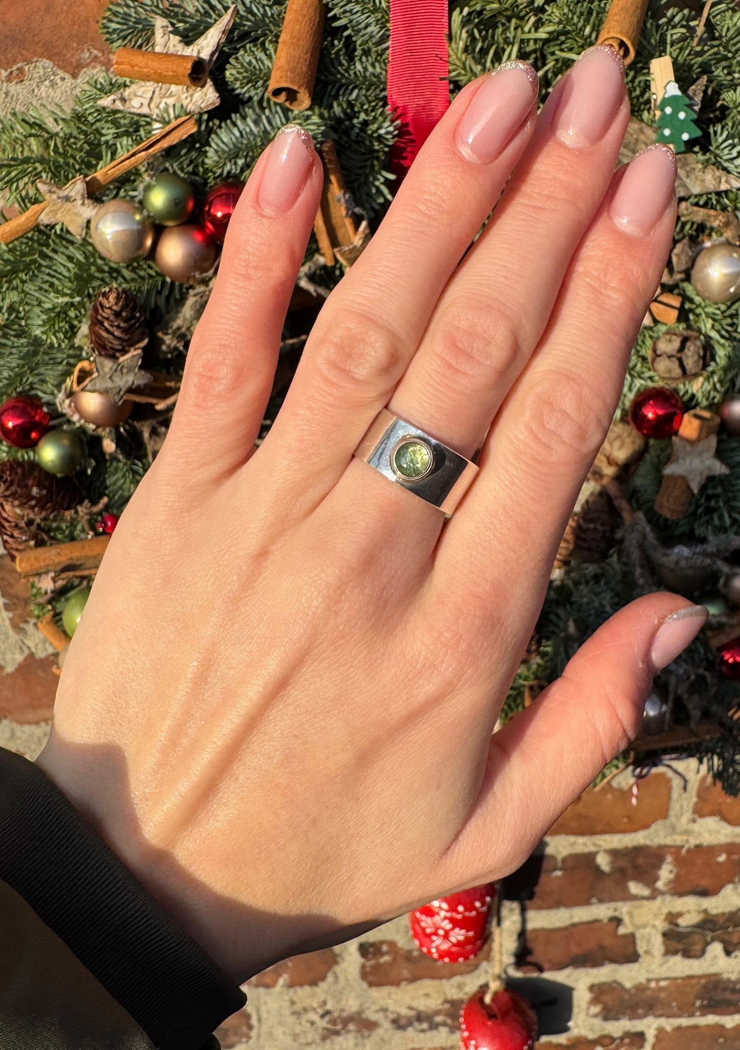 Pierścionek oliwin okrągły szeroka obrączka