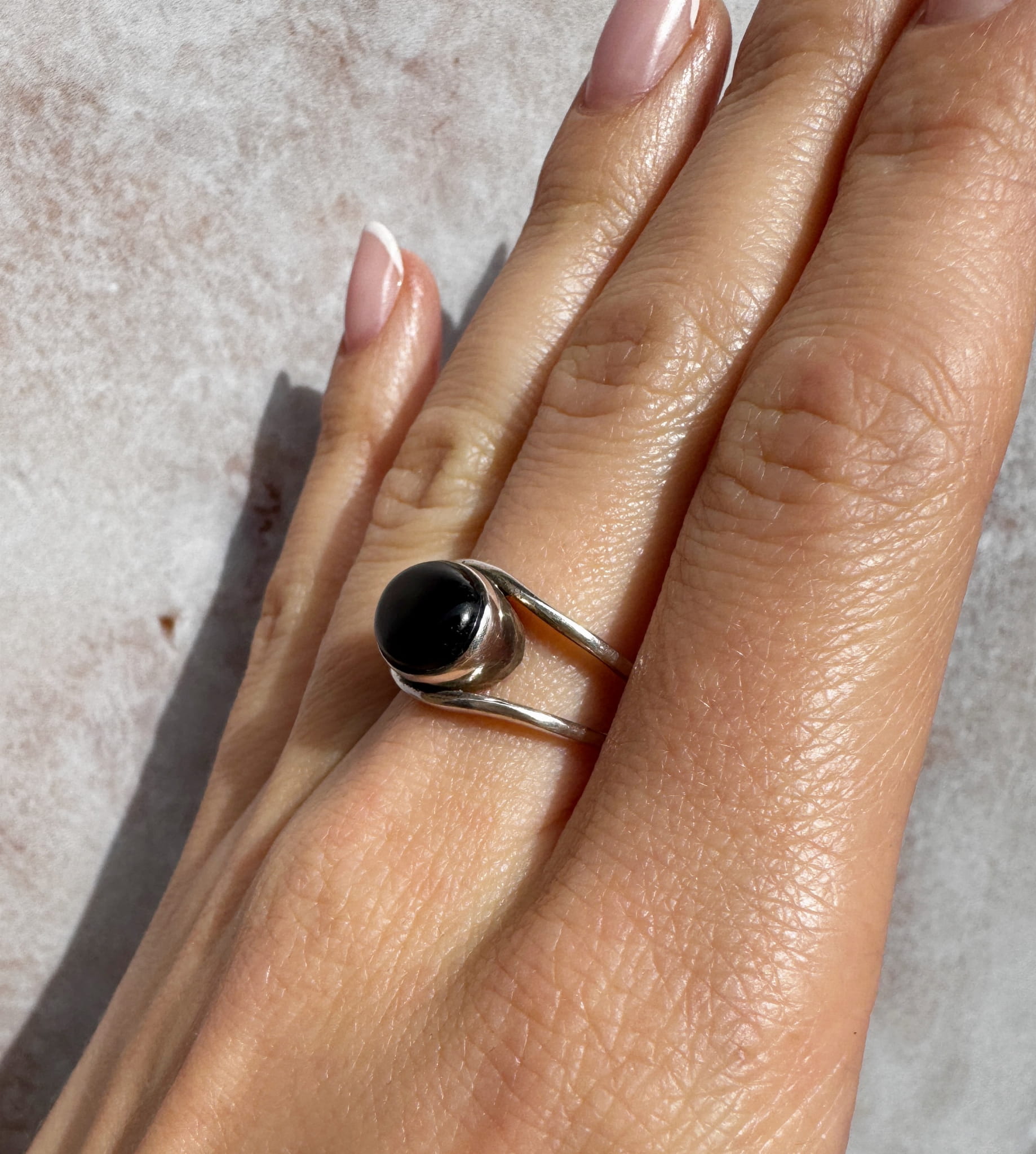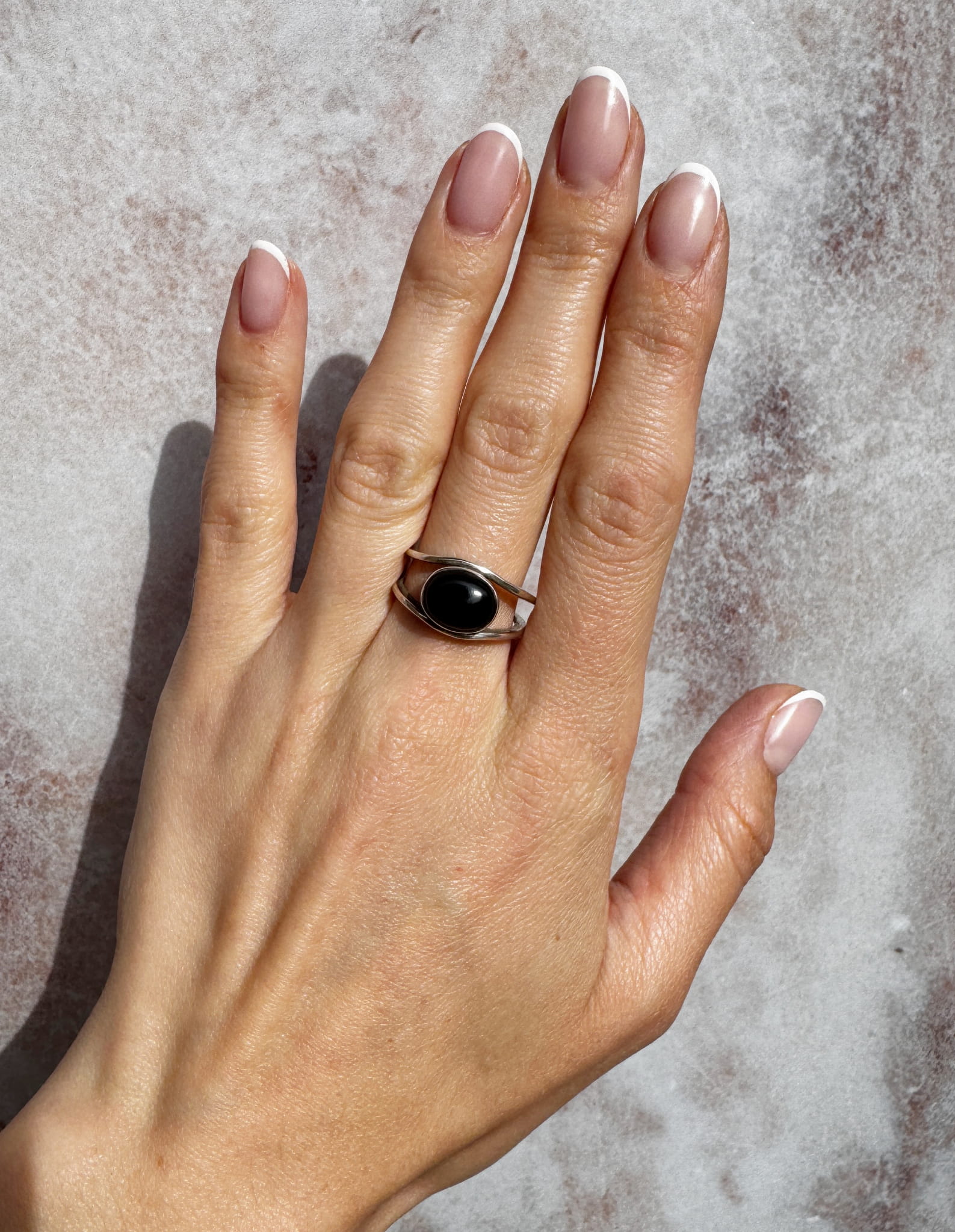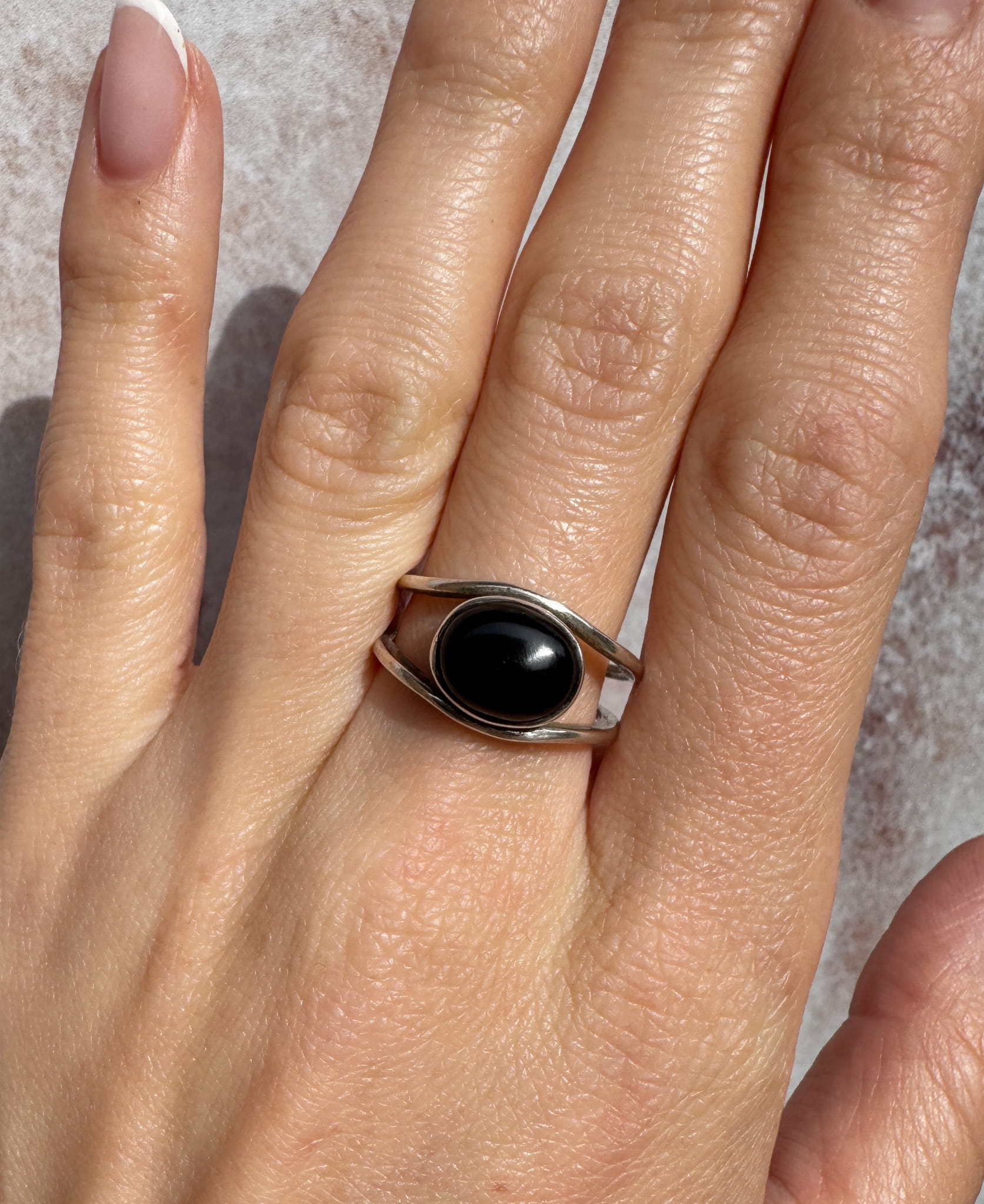 Ręcznie wykonany pierścionek z owalnego onyksu i srebra pr.925