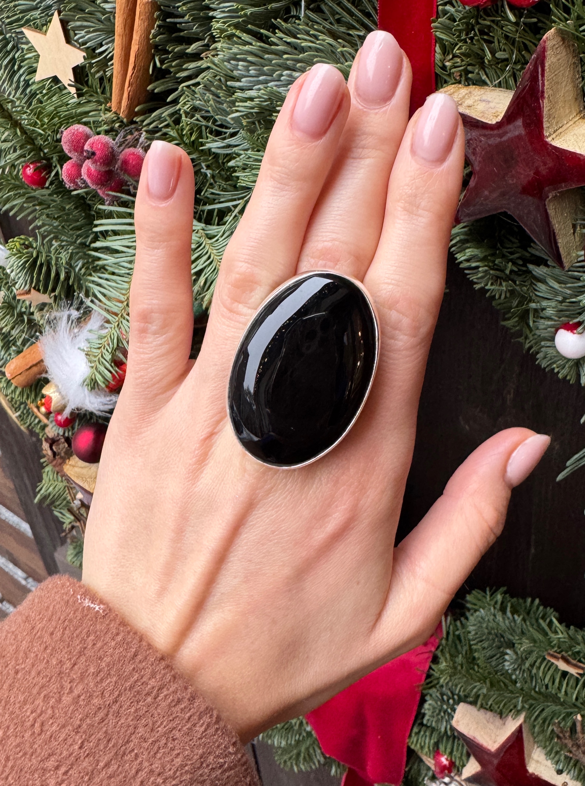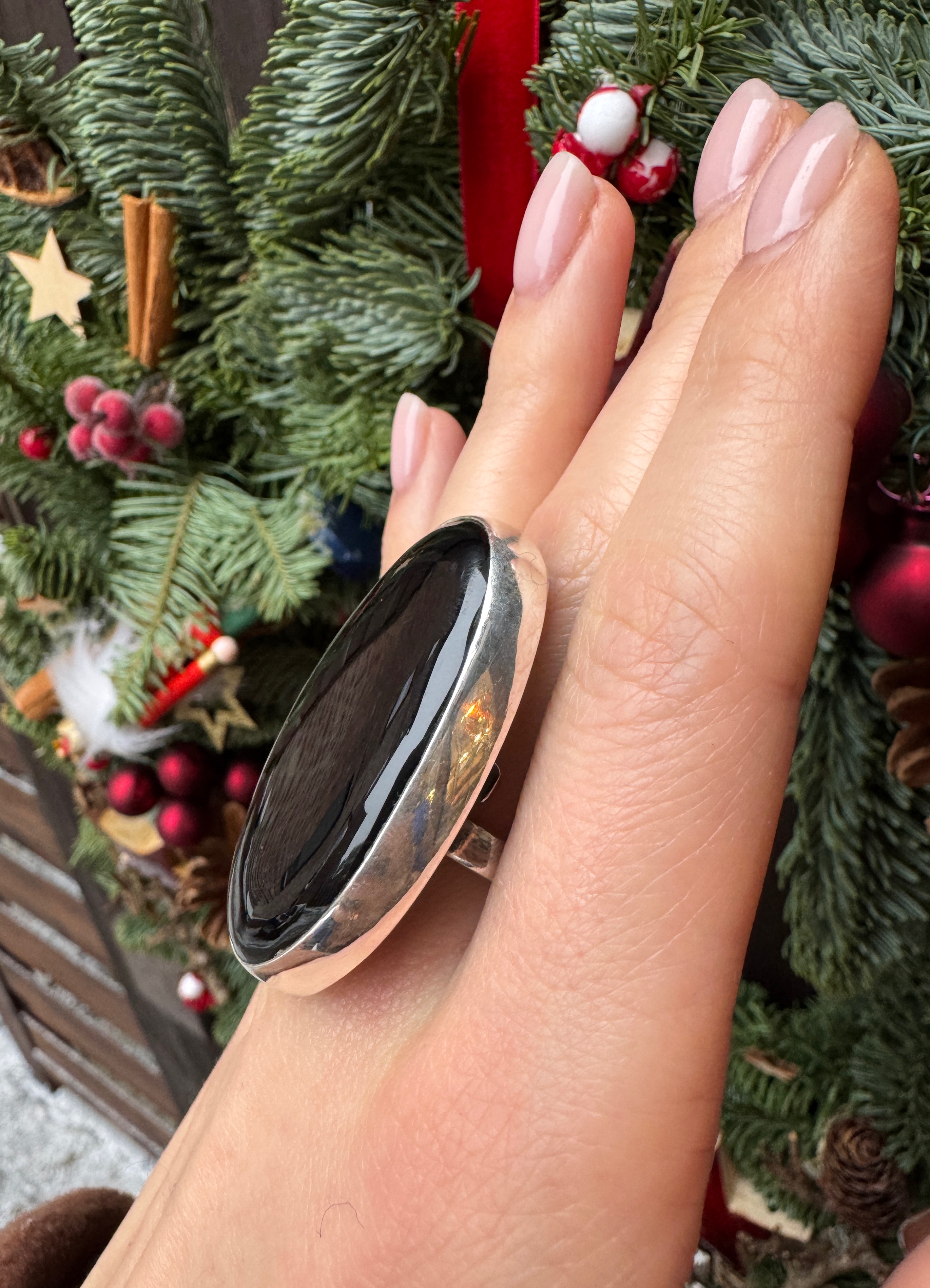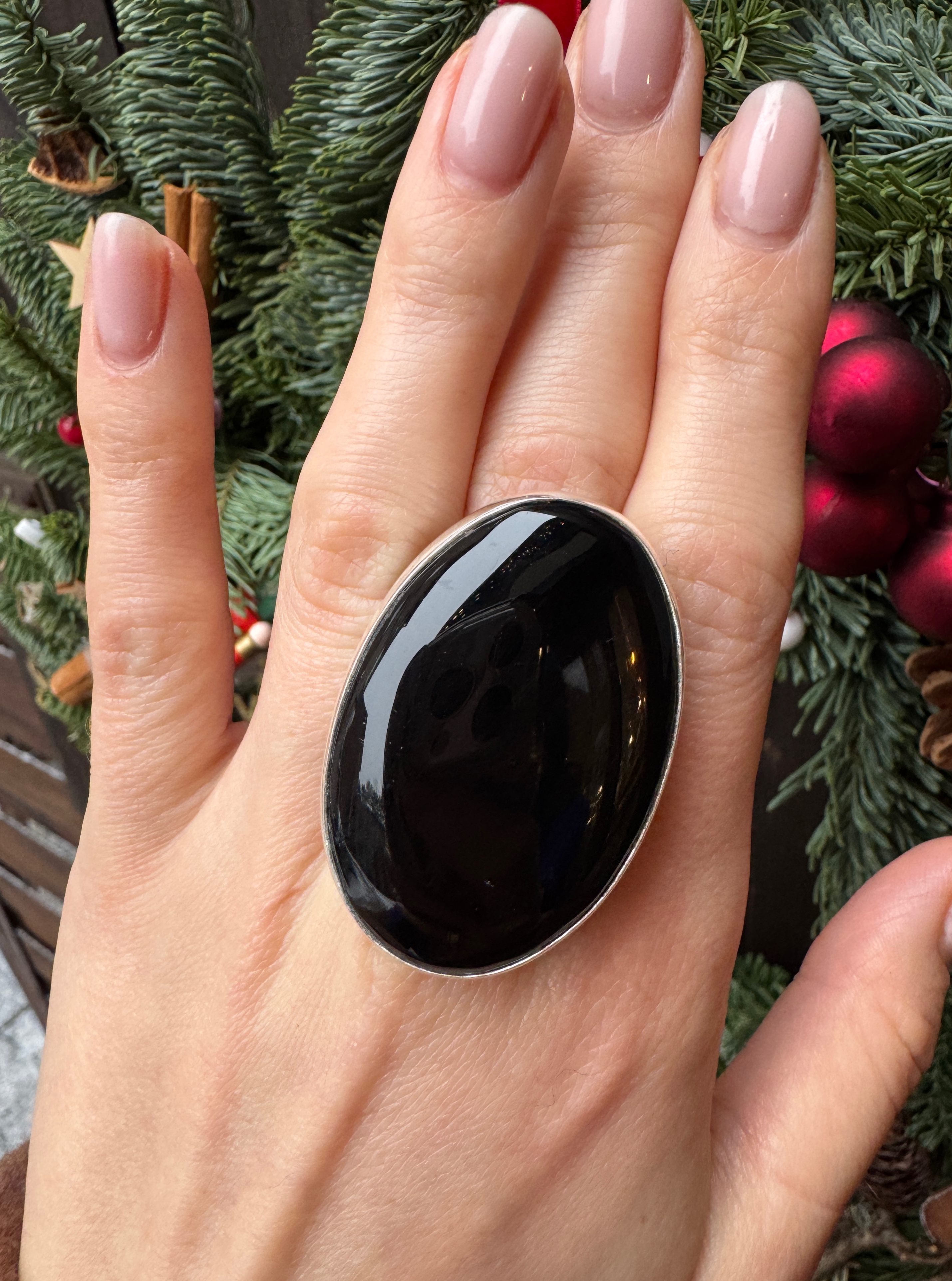Ręcznie wykonany pierścionek z owalnego czarnego onyksu i srebra pr.925