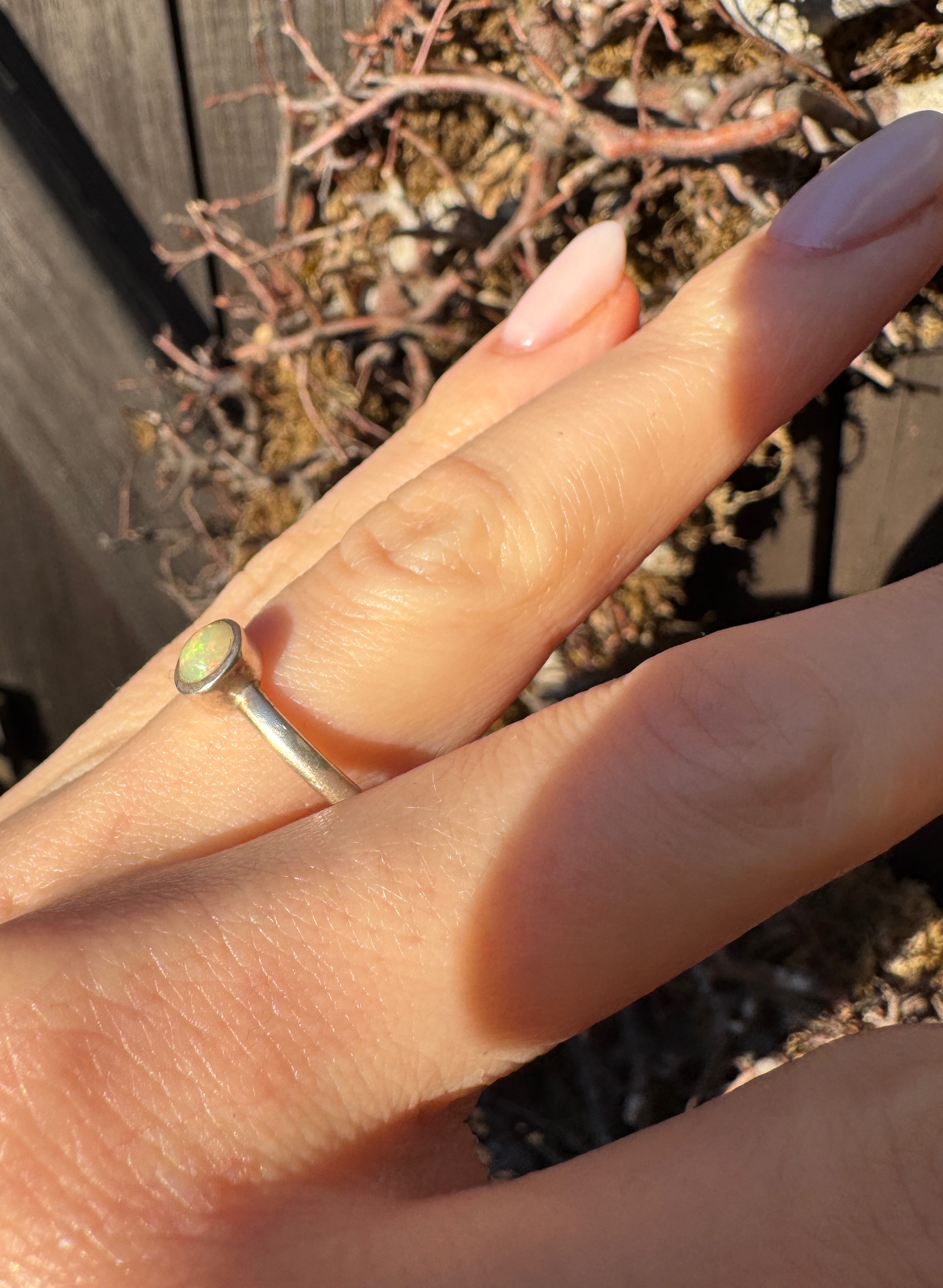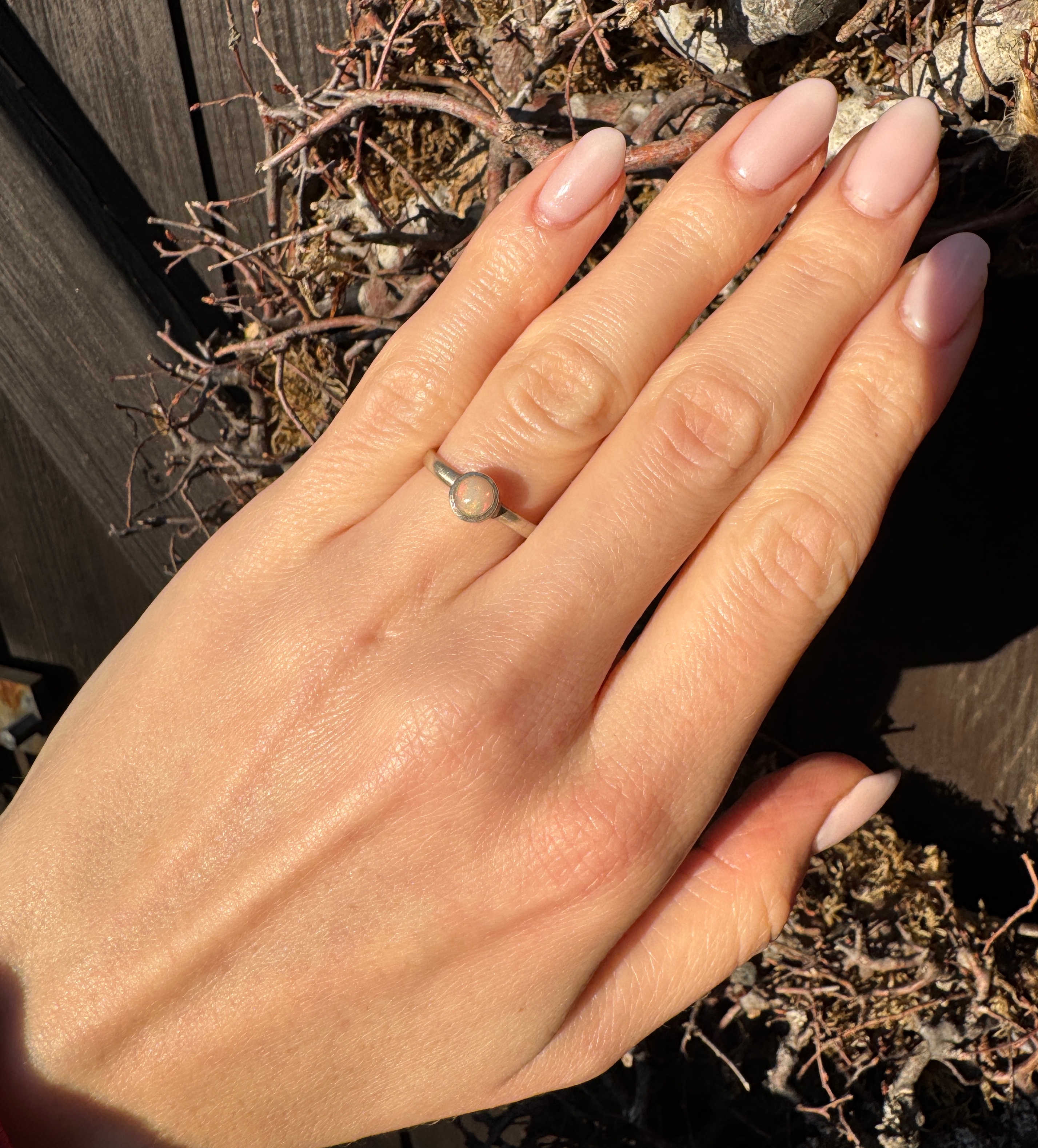 Ręcznie wykonany pierścionek z opalem naturalnym  w srebrze pr.925