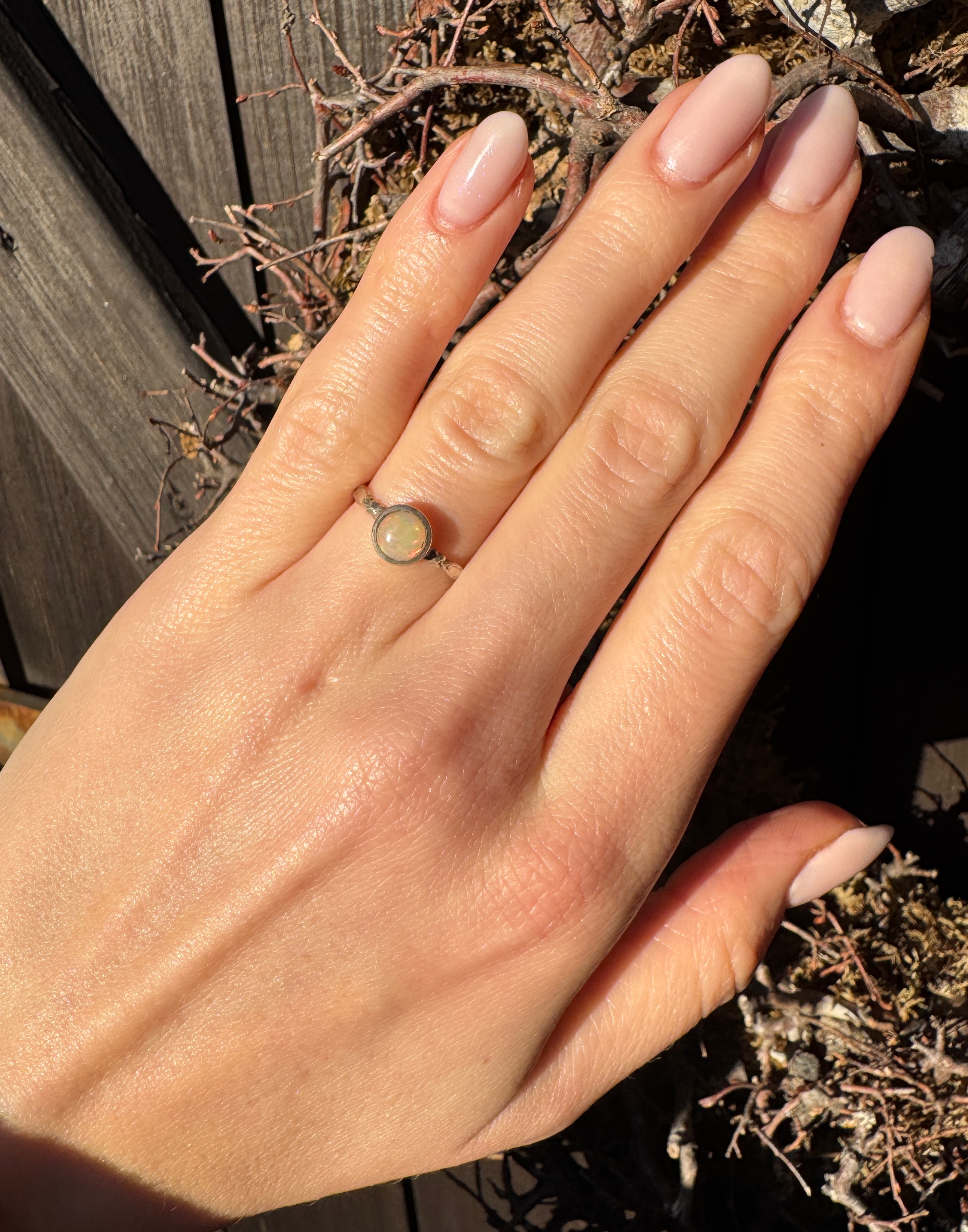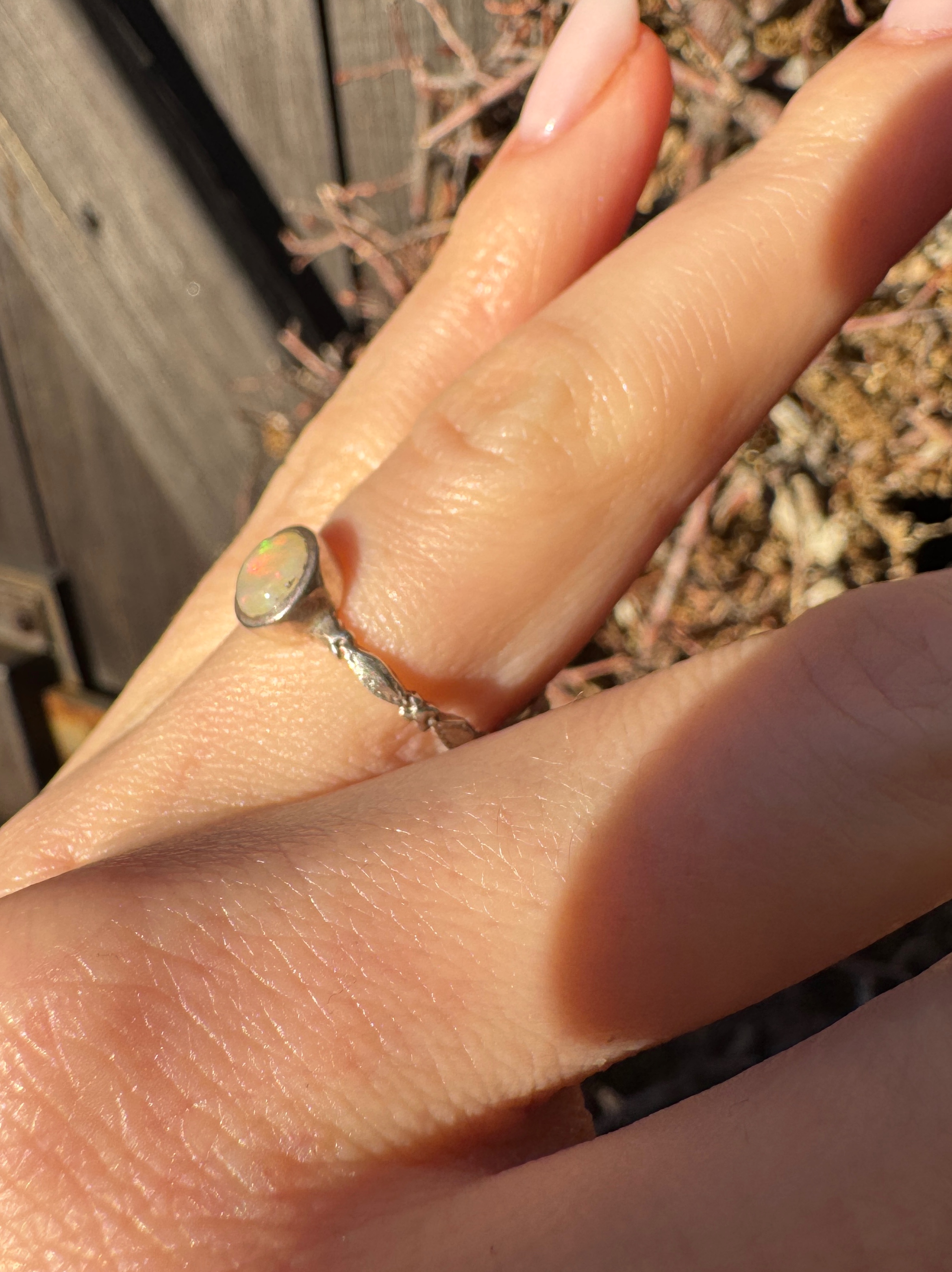 Ręcznie wykonany pierścionek z opalem naturalnym w srebrze pr.925