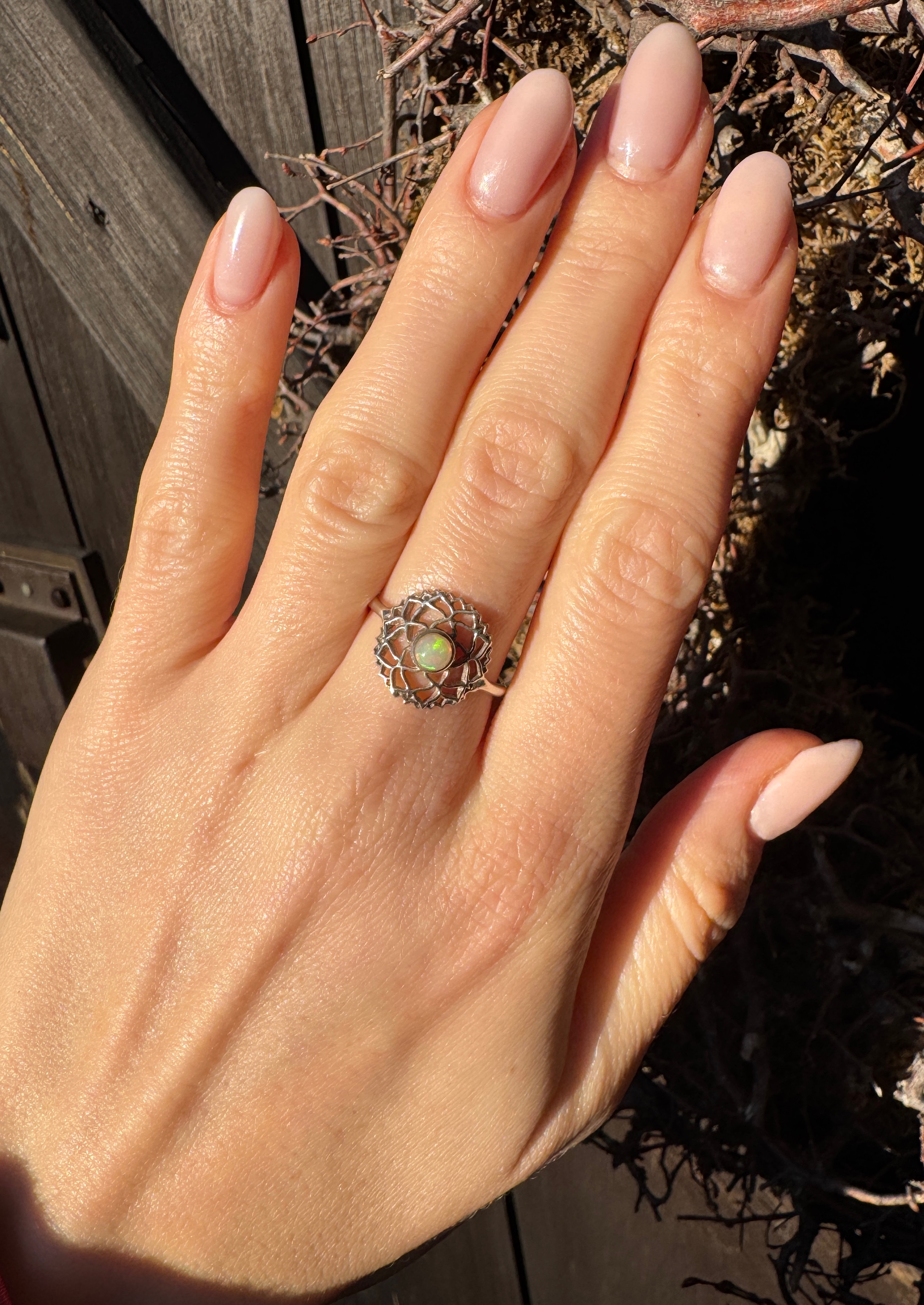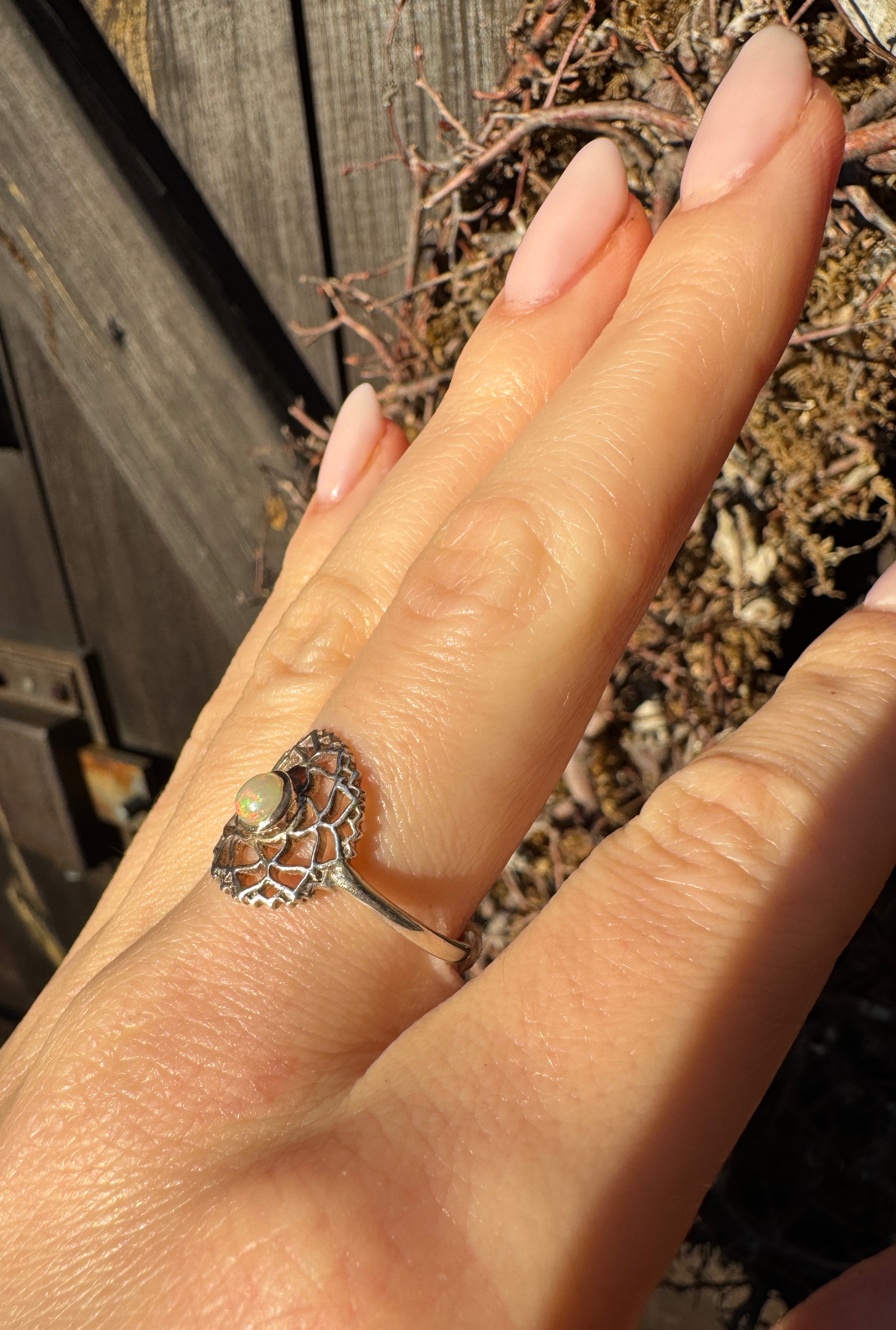 Ręcznie wykonany pierścionek z opalem naturalnym  w srebrze pr.925