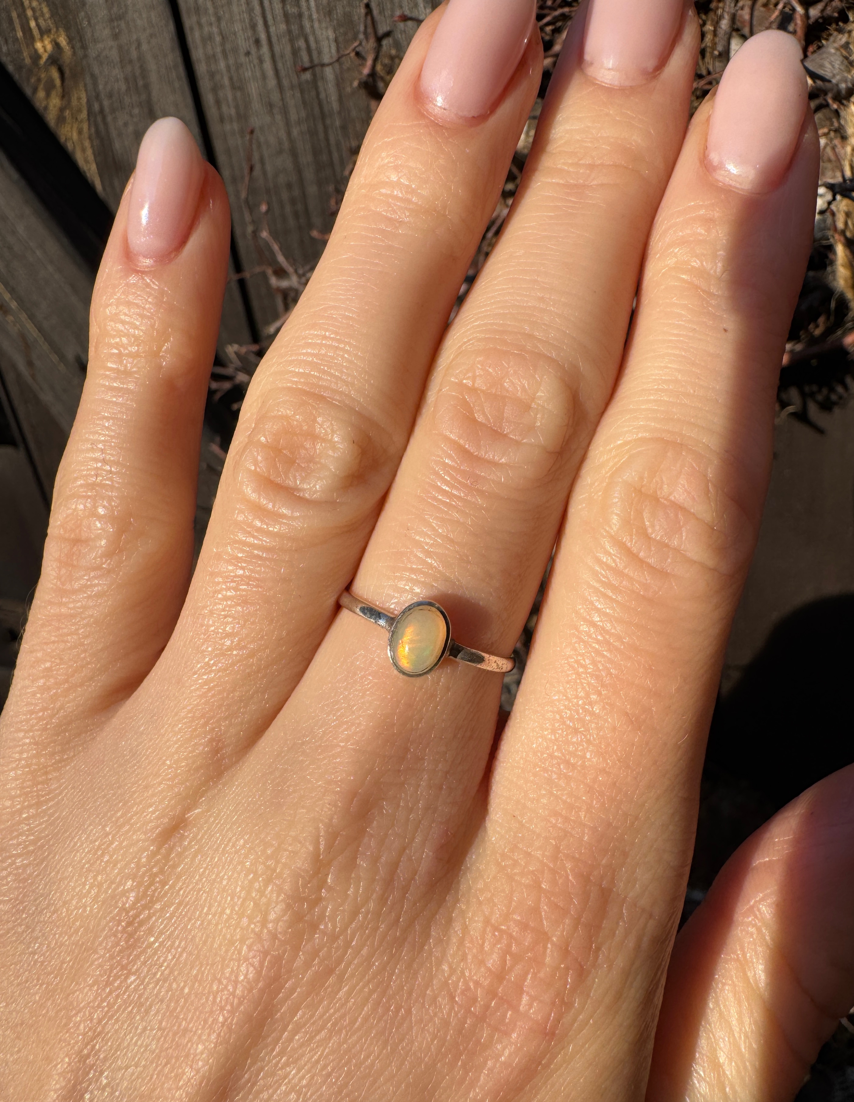 Ręcznie wykonany pierścionek z opalem naturalnym w srebrze pr.925