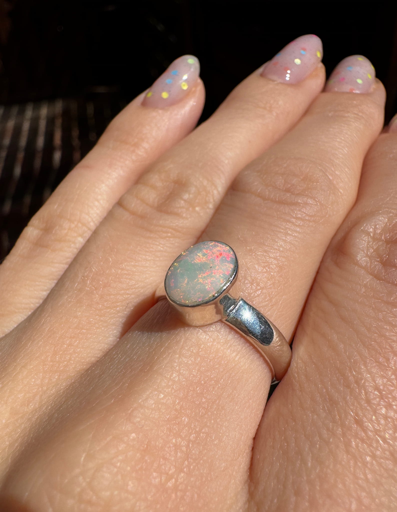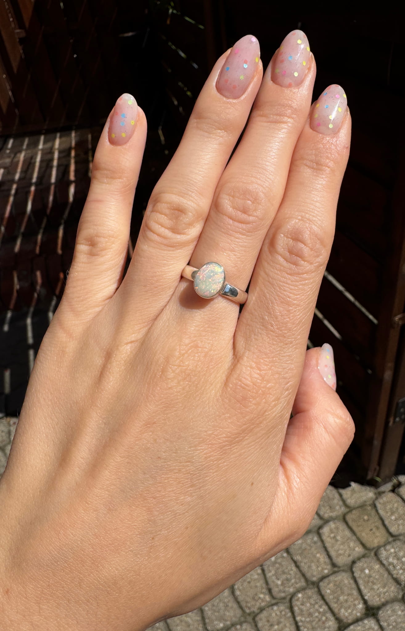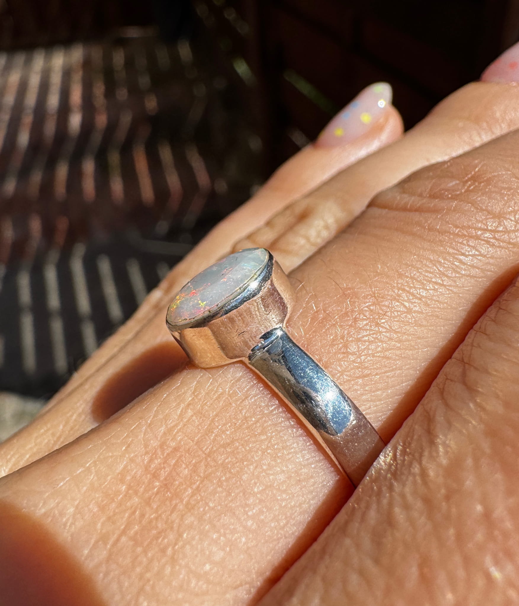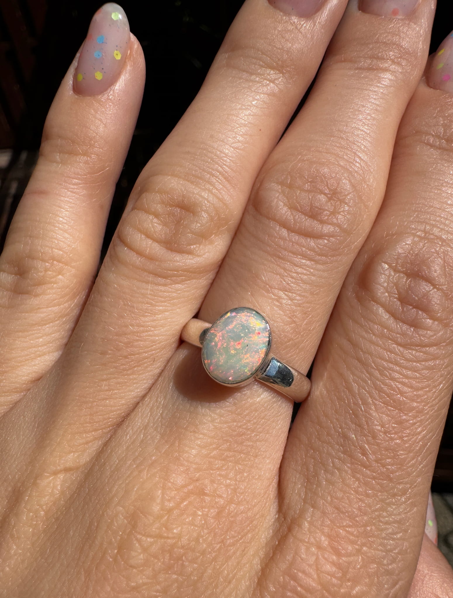 Ręcznie wykonany pierścionek z opalem naturalnym fasetowanym w srebrze pr.925