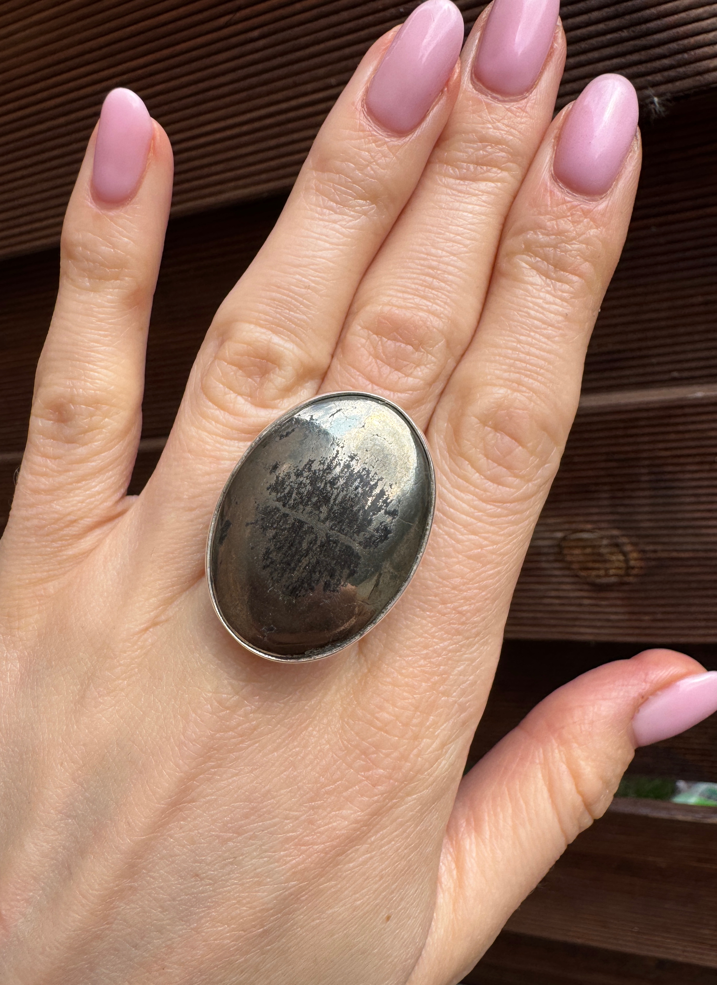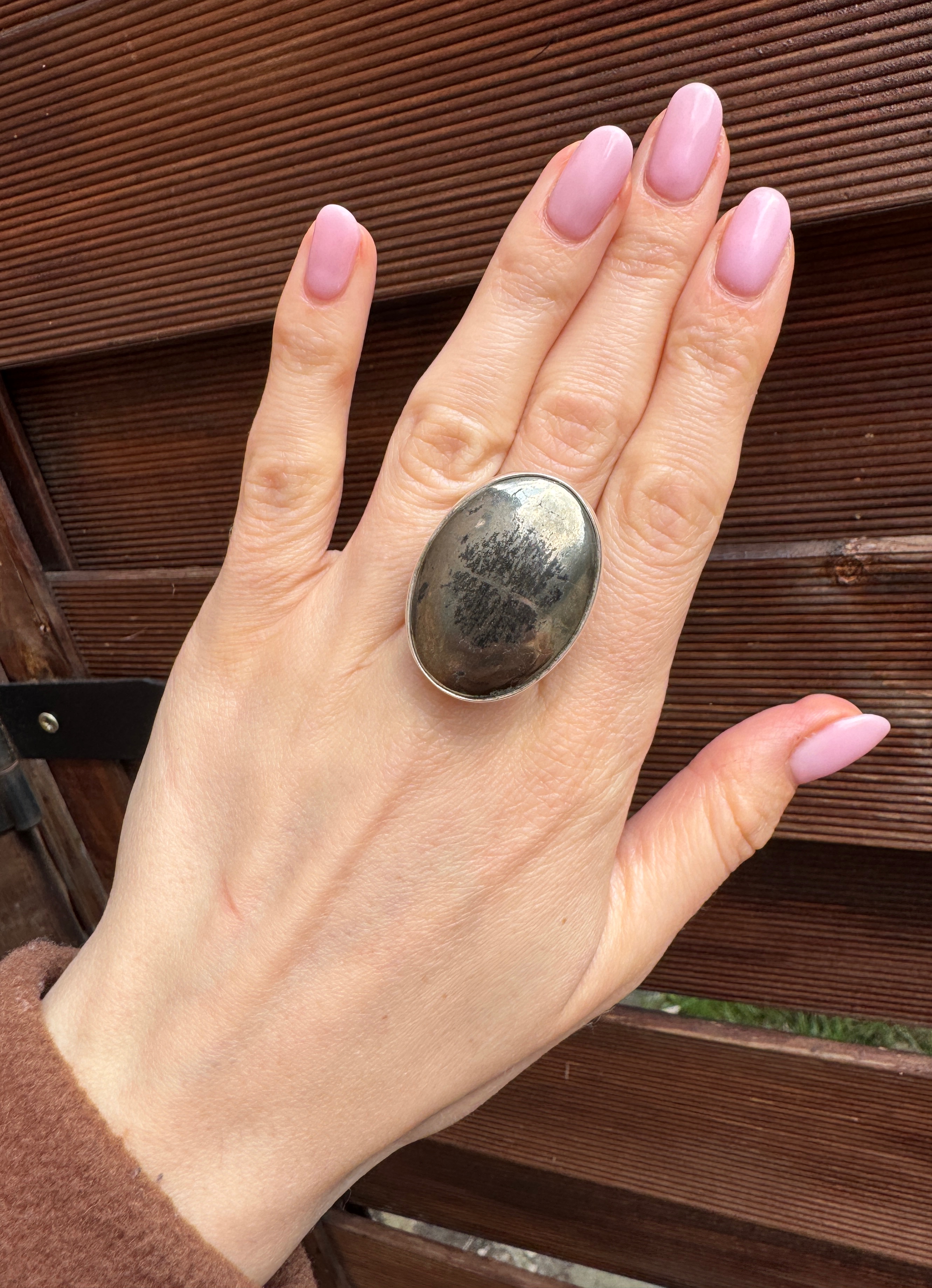Ręcznie wykonany pierścionek z pirytu i srebra pr.925