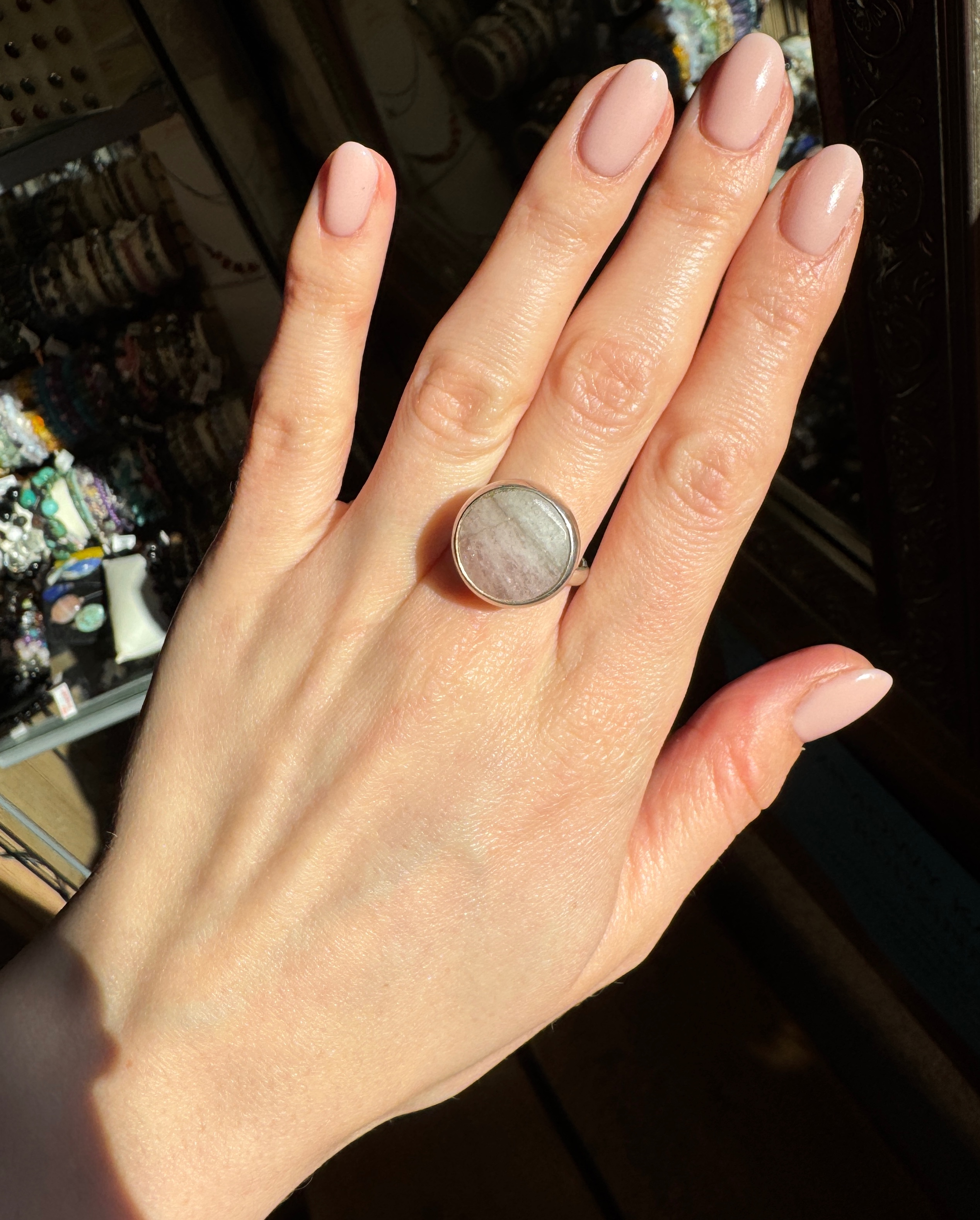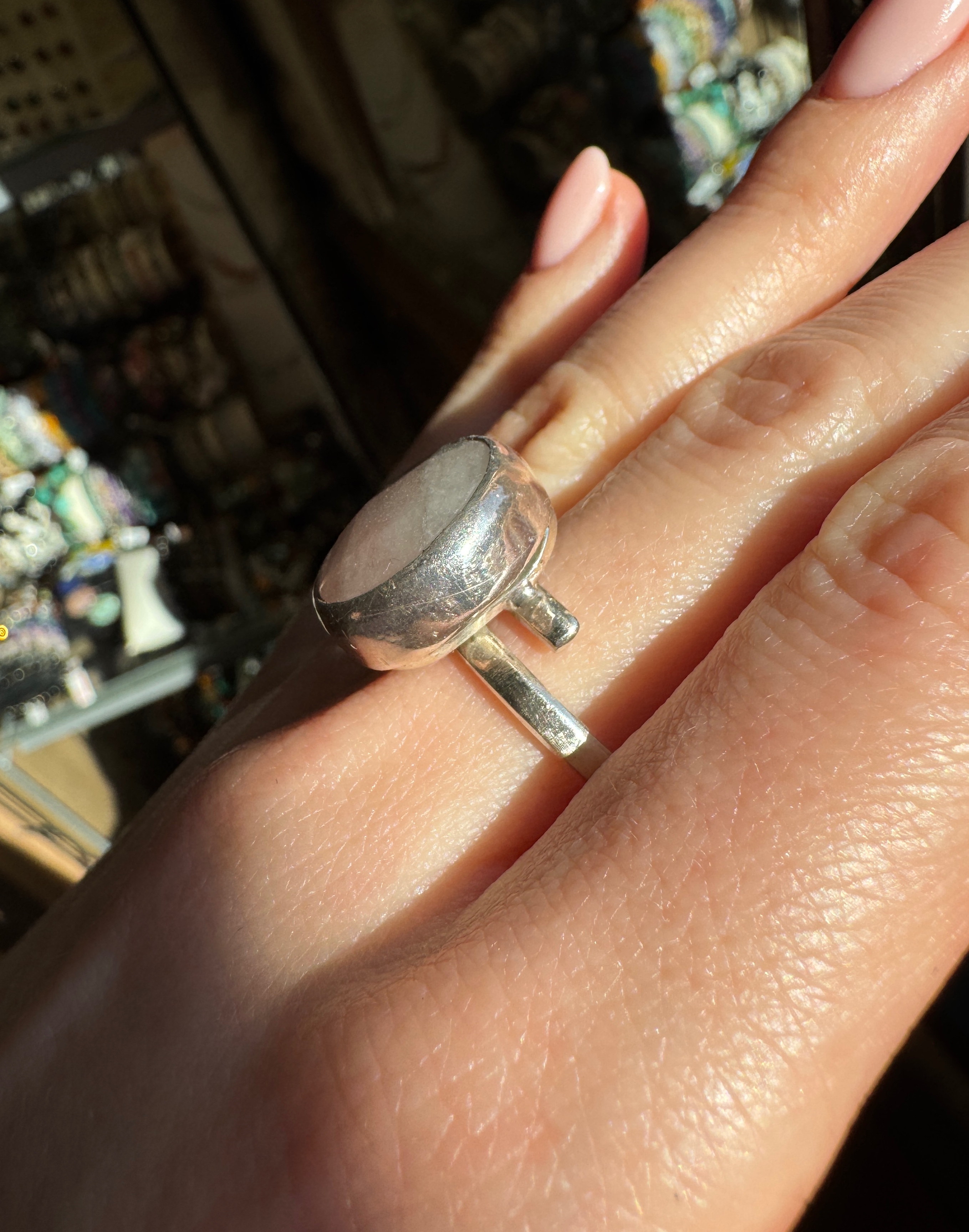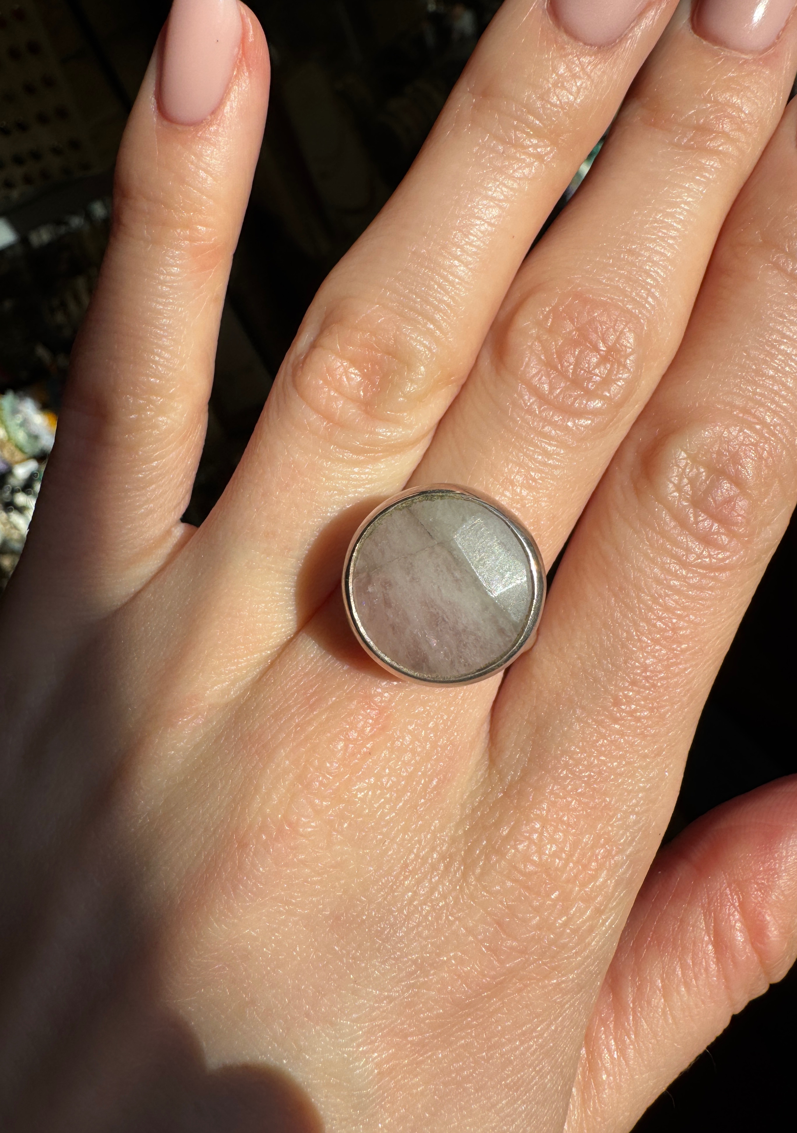Pierścionek róż jadeit fasetowany okrągły