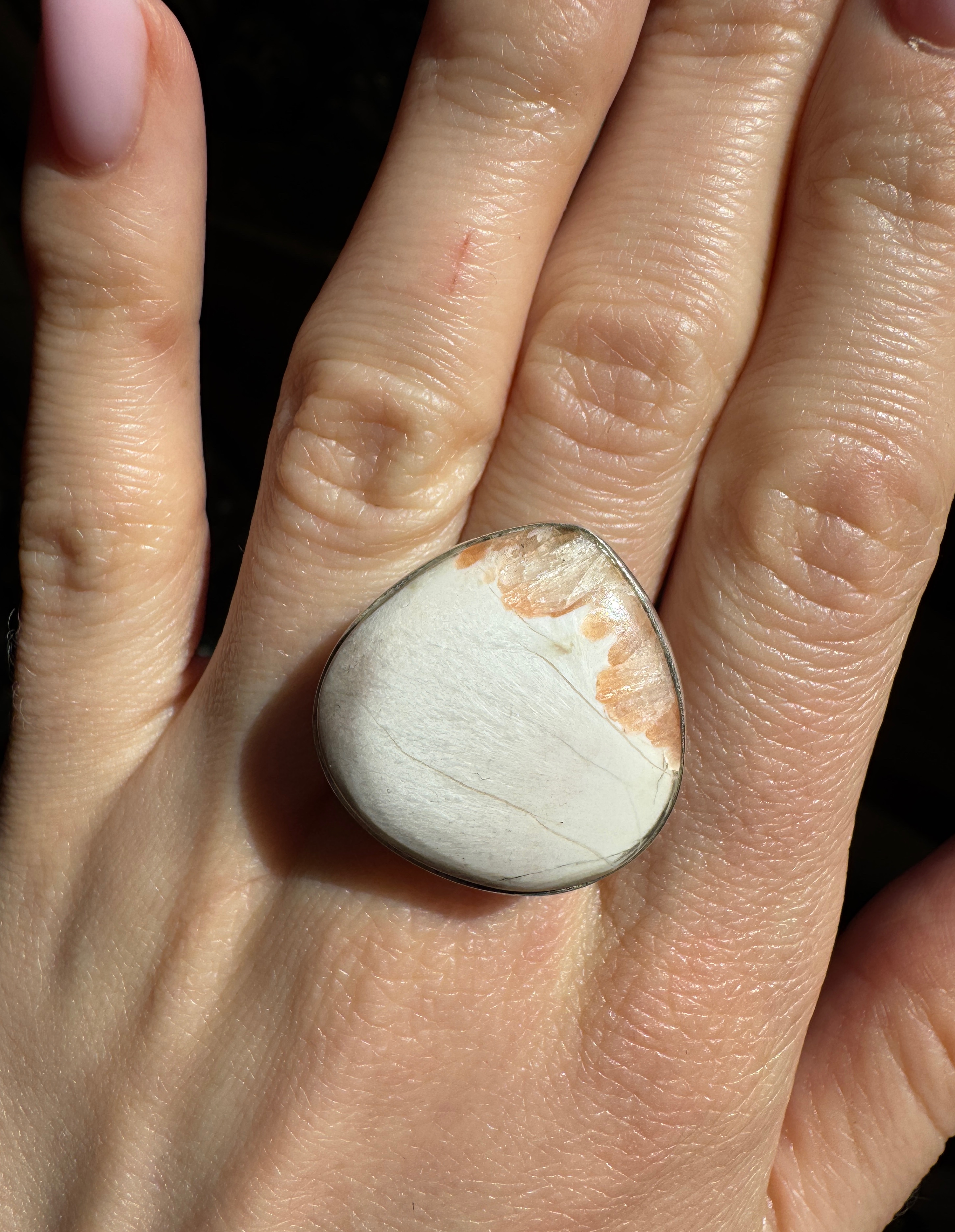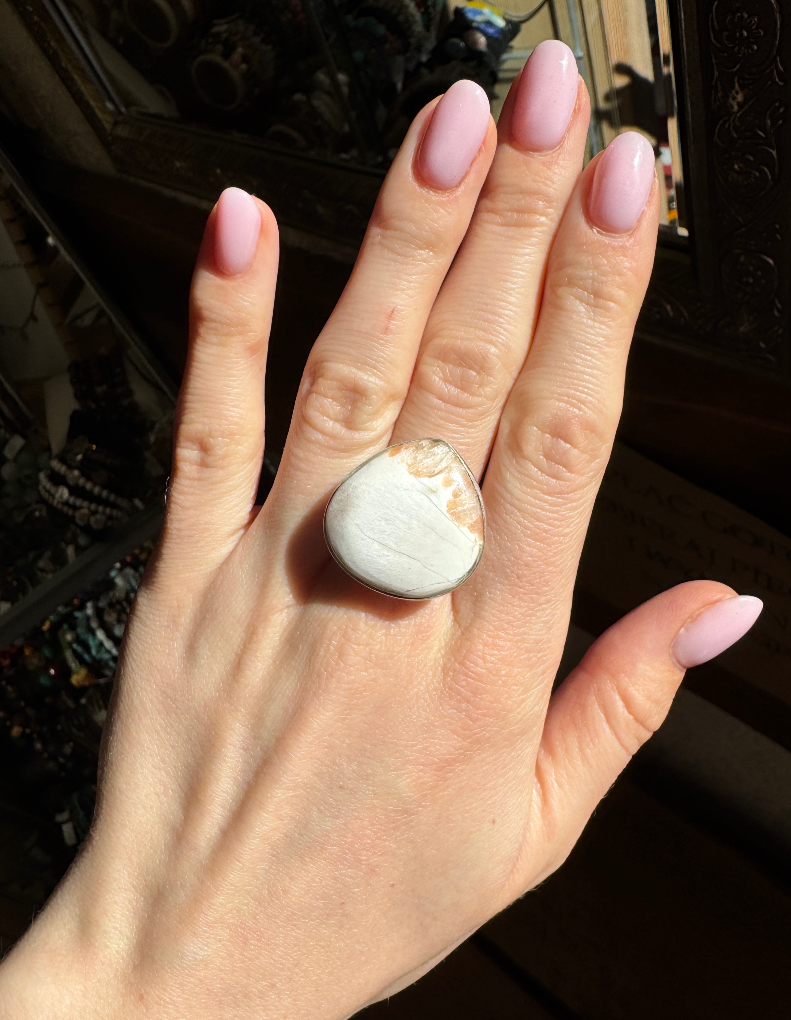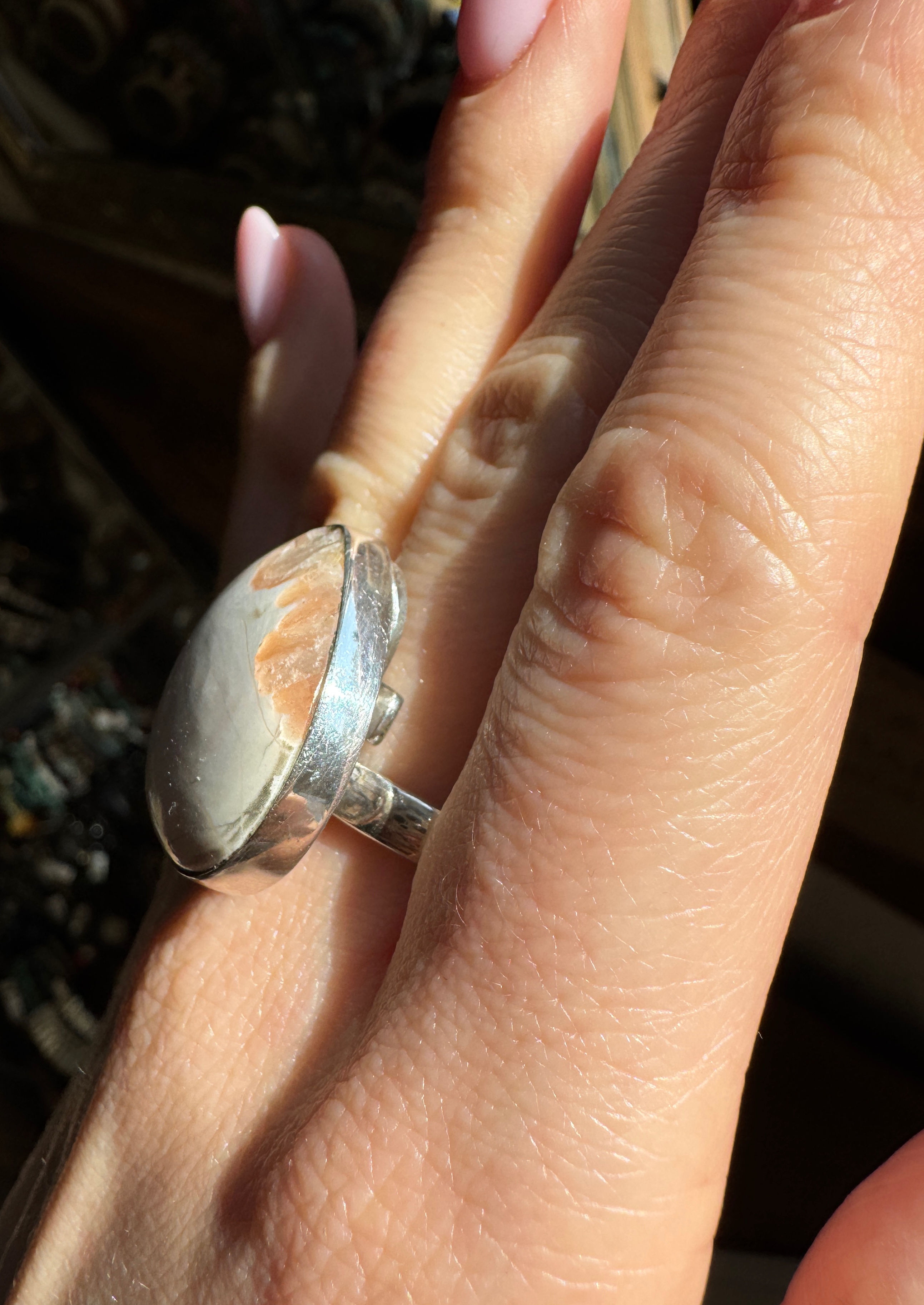 Piękny ręcznie wykonany pierścionek z skolecytu i srebra pr.925.