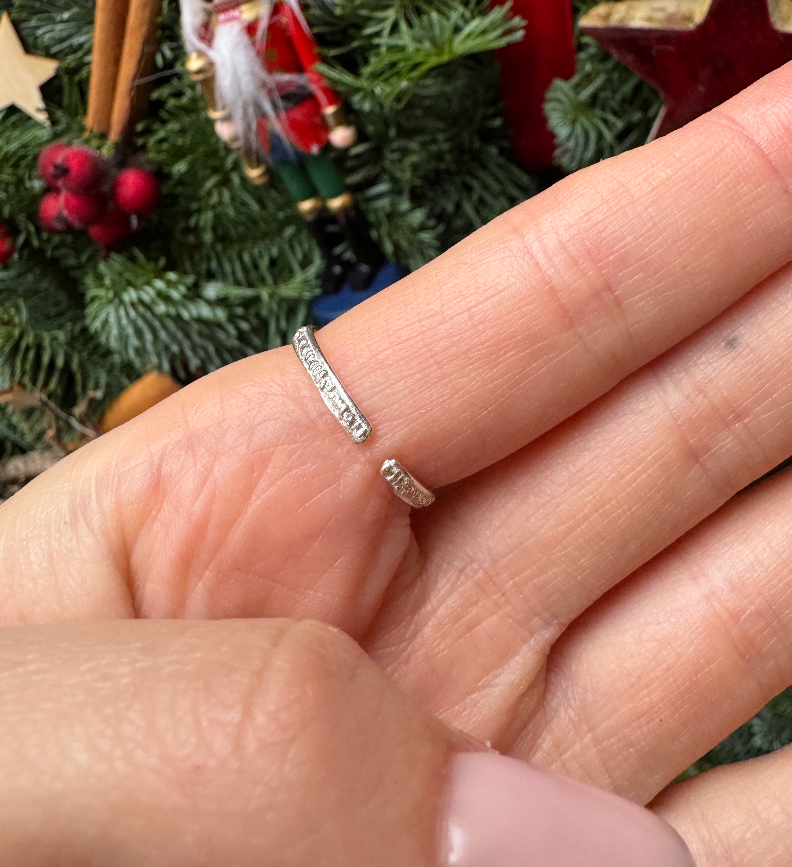 Prosty pierścionek ze srebra pr. 925. regulacja od rozmiaru 14 wzwyż. Im większy rozmiar tym większa będzie "przerwa" między nimi