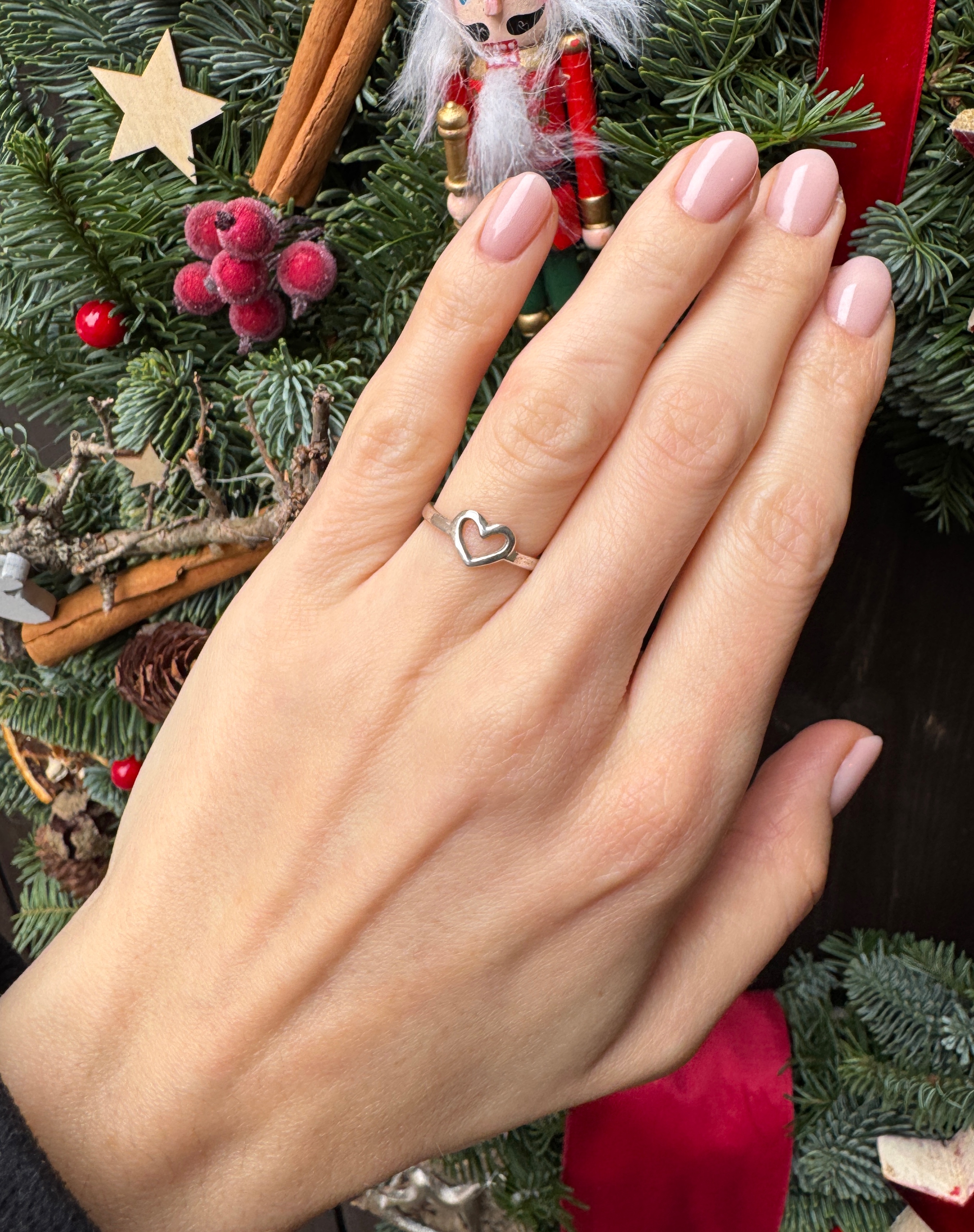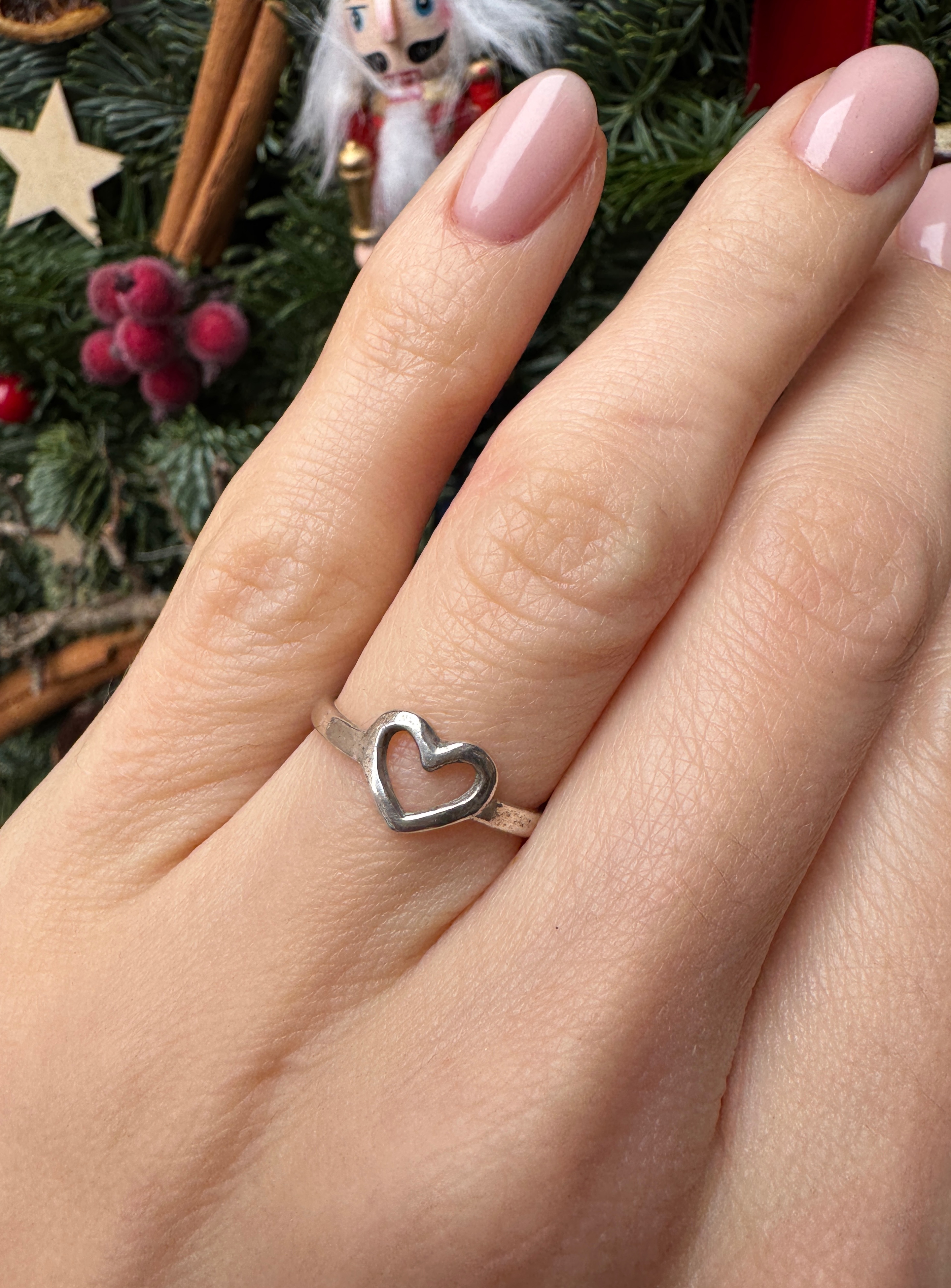 Prosty pierścionek ze srebra pr. 925 z motywem serca. Można go nosić na początku palca