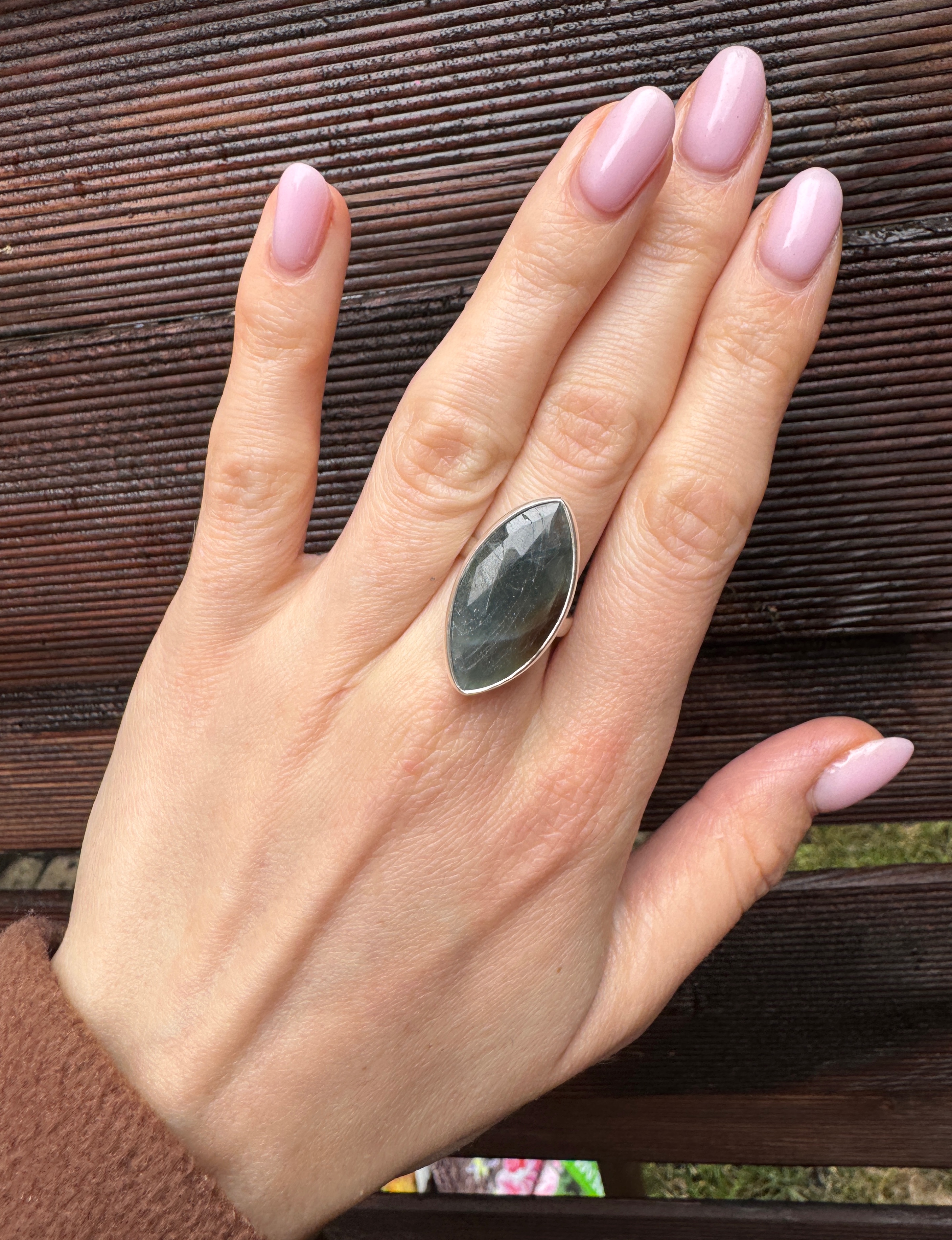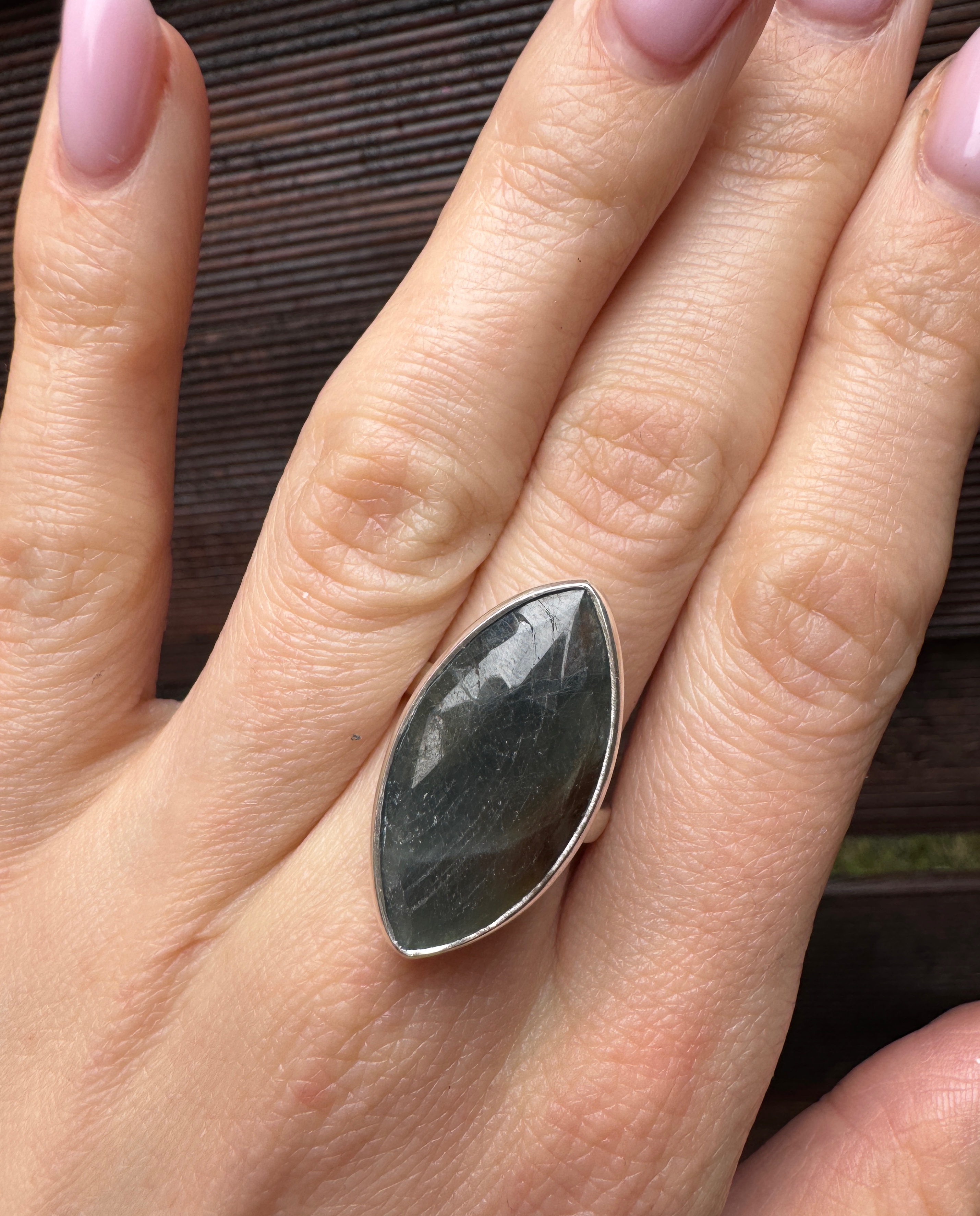 Ręcznie wykonany pierścionek z fasetowanego szafiru i srebra pr.925