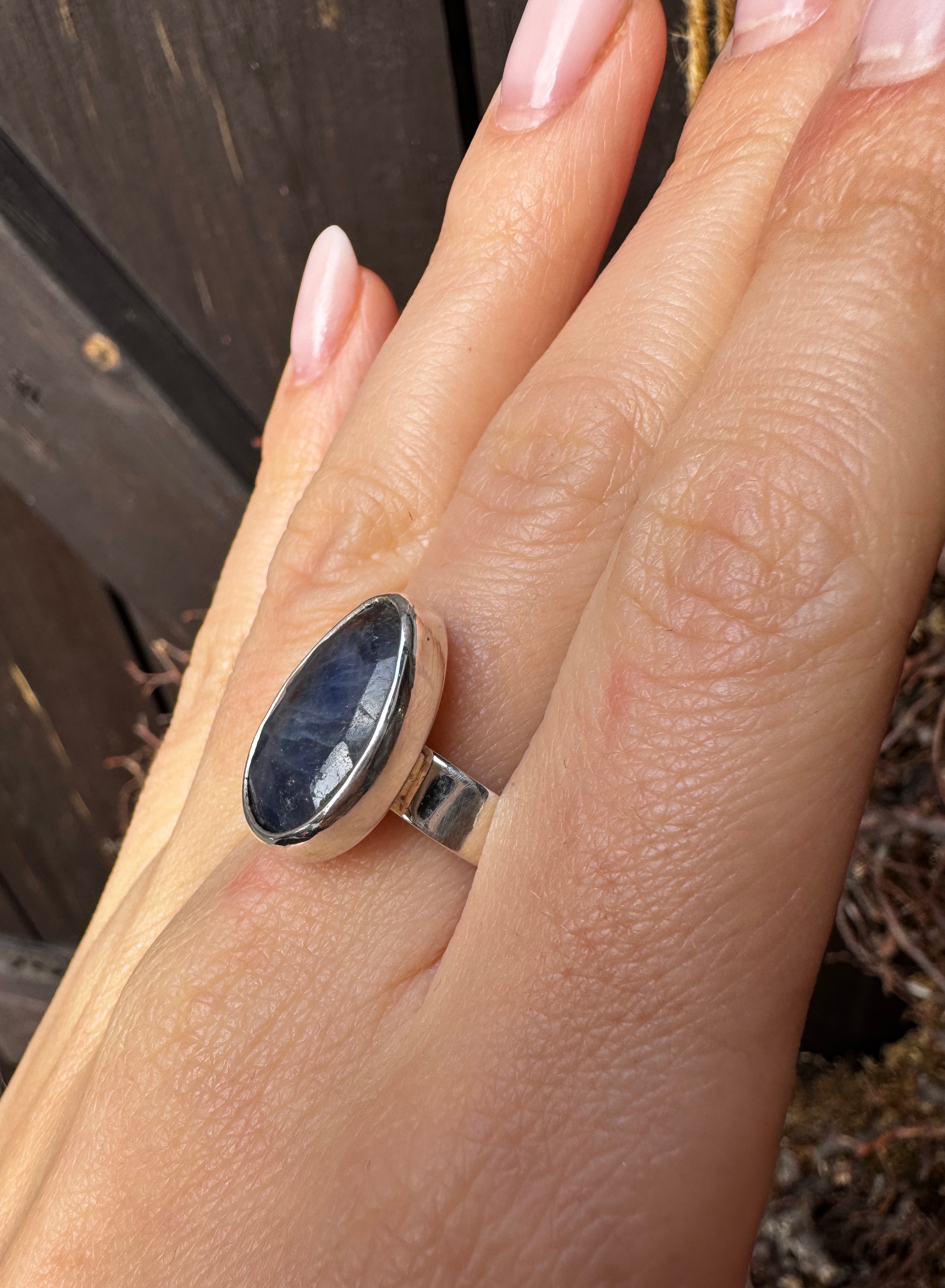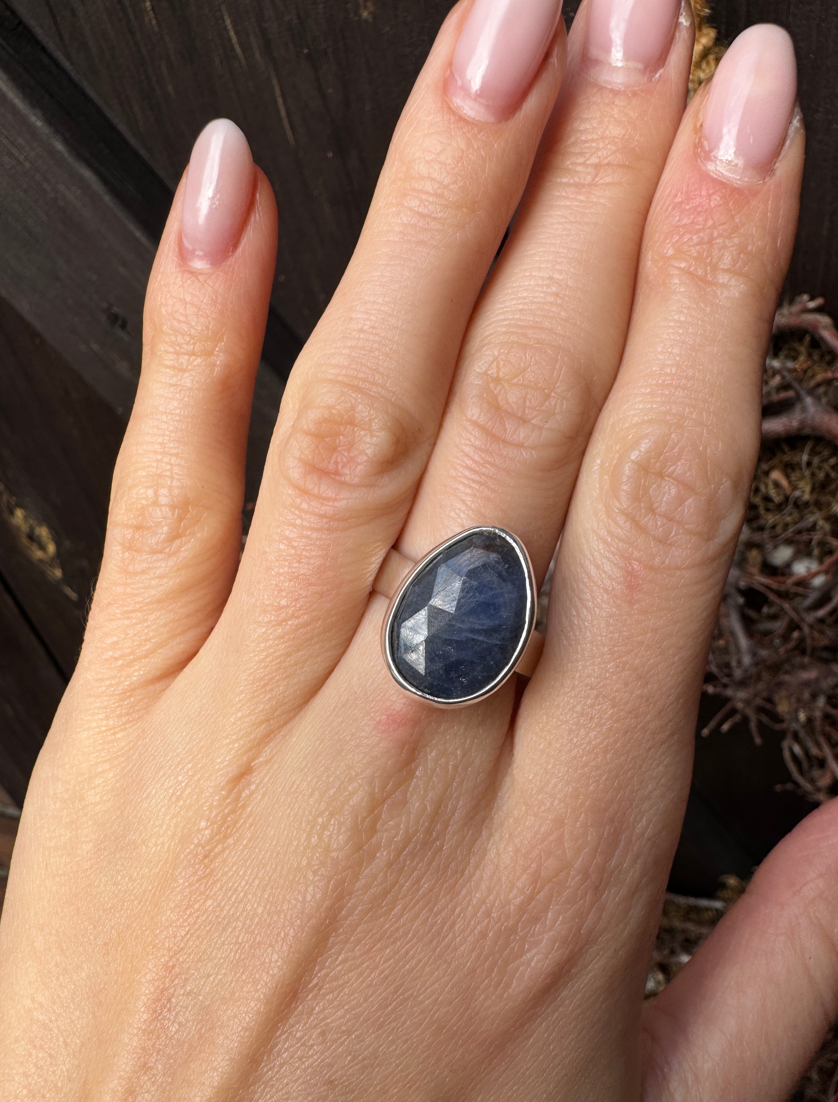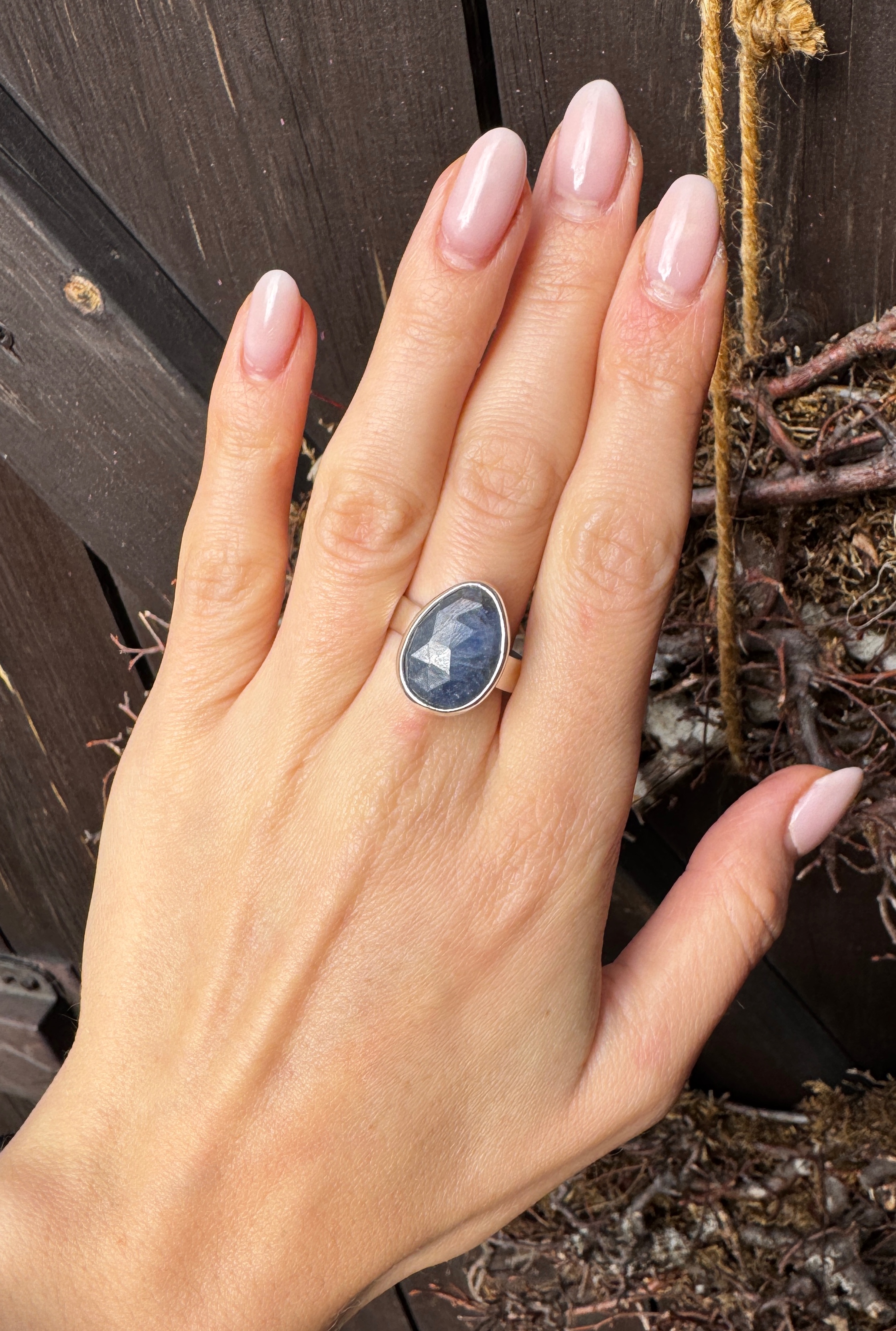Ręcznie wykonany pierścionek z fasetowanego szafiru i srebra pr.925