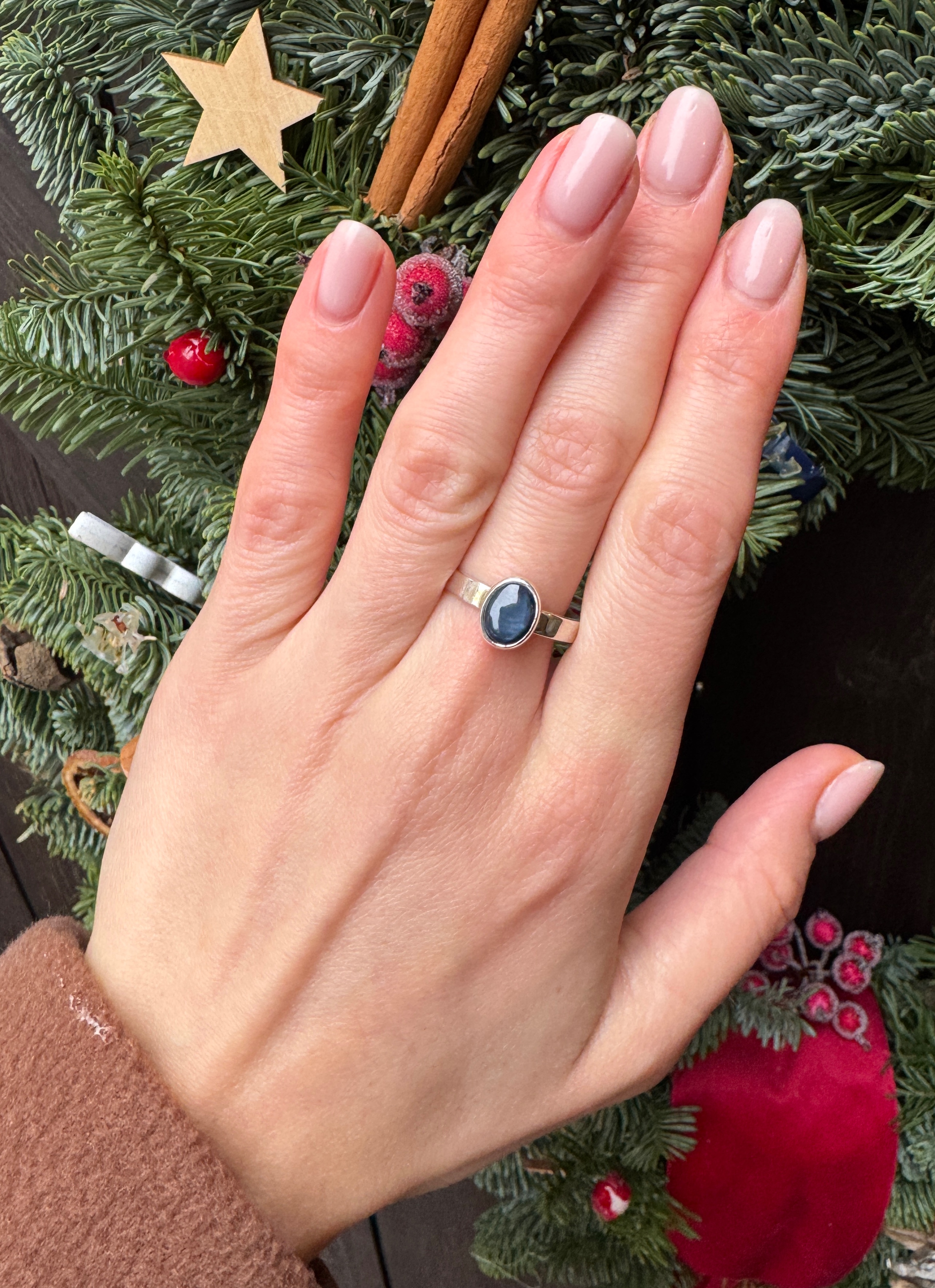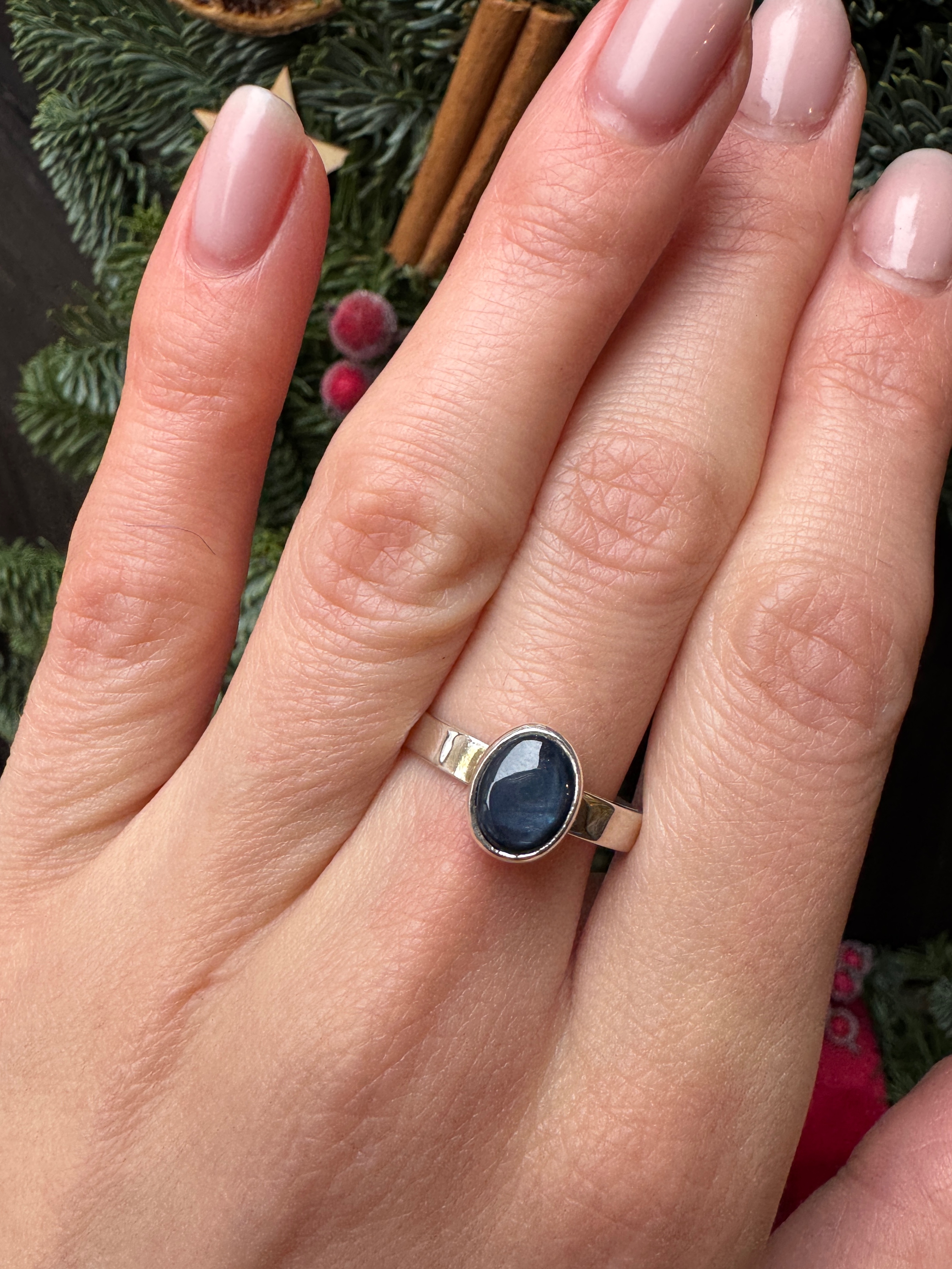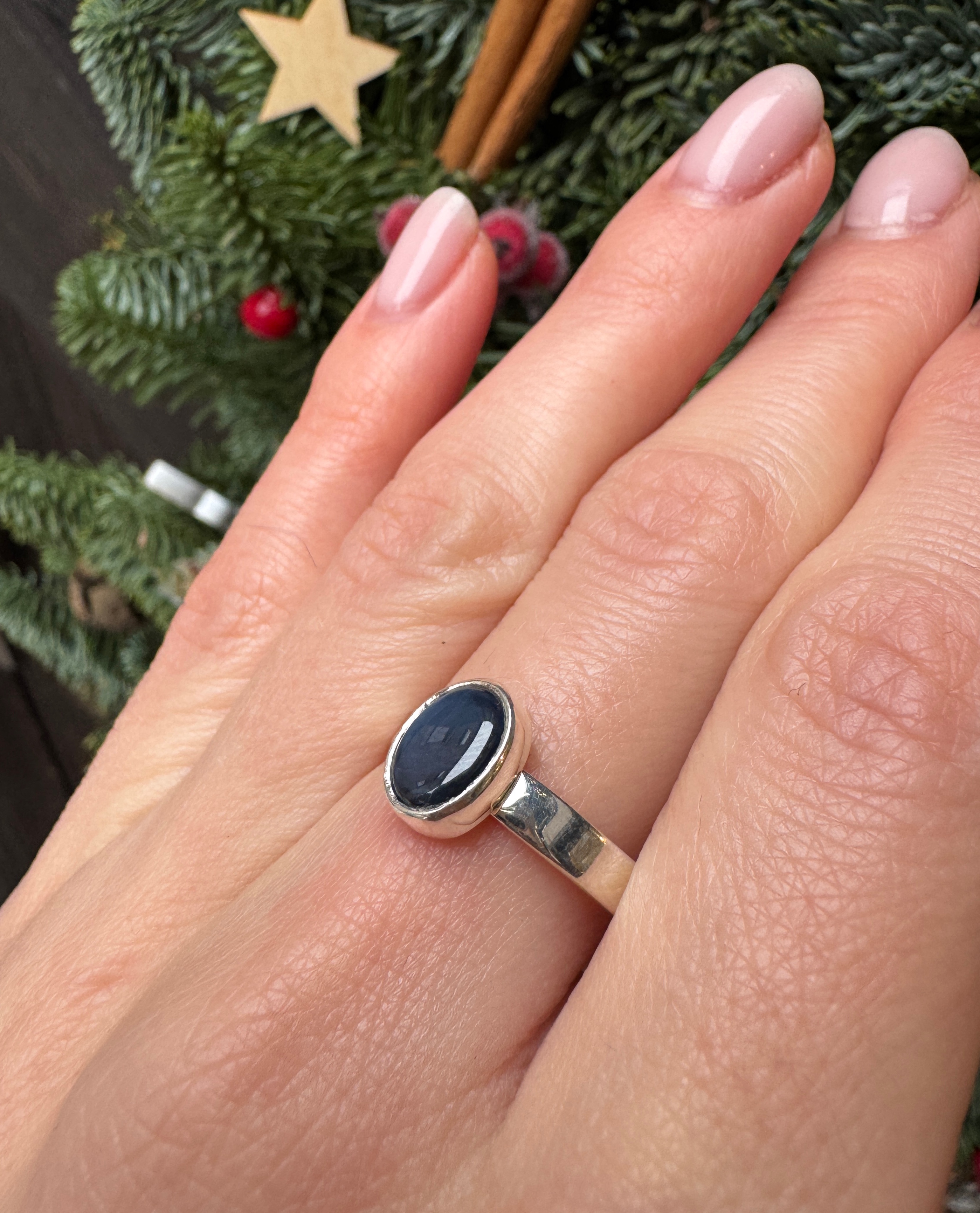 Ręcznie wykonany pierścionek z szafiru gwiaździstego i srebra pr.925