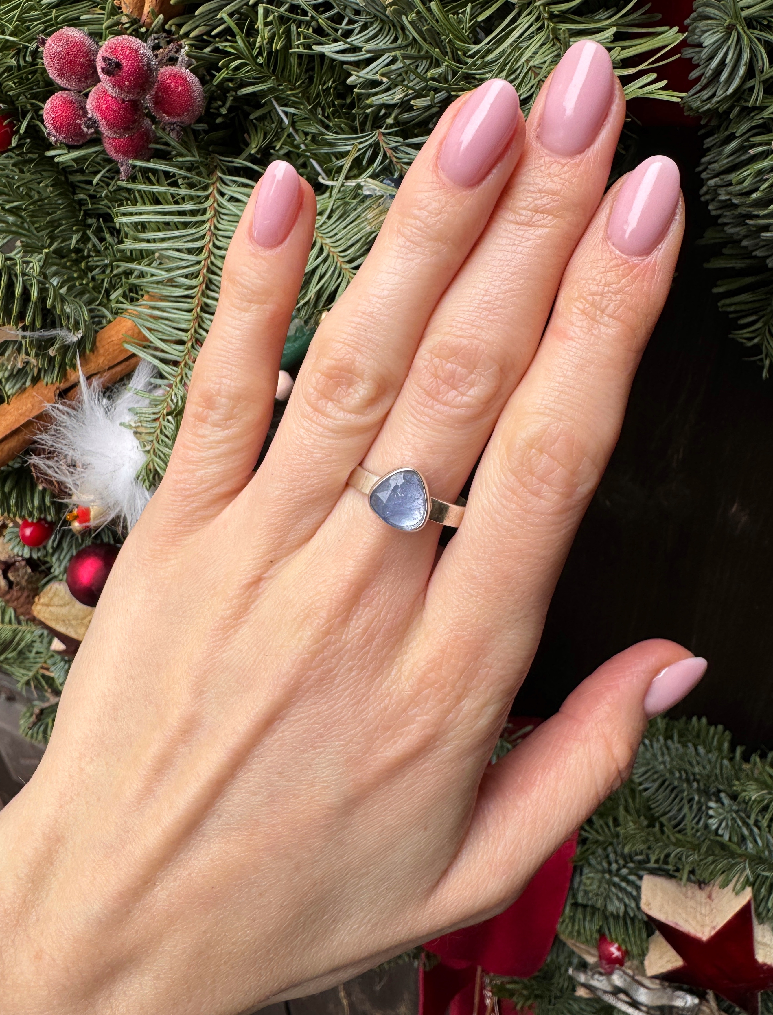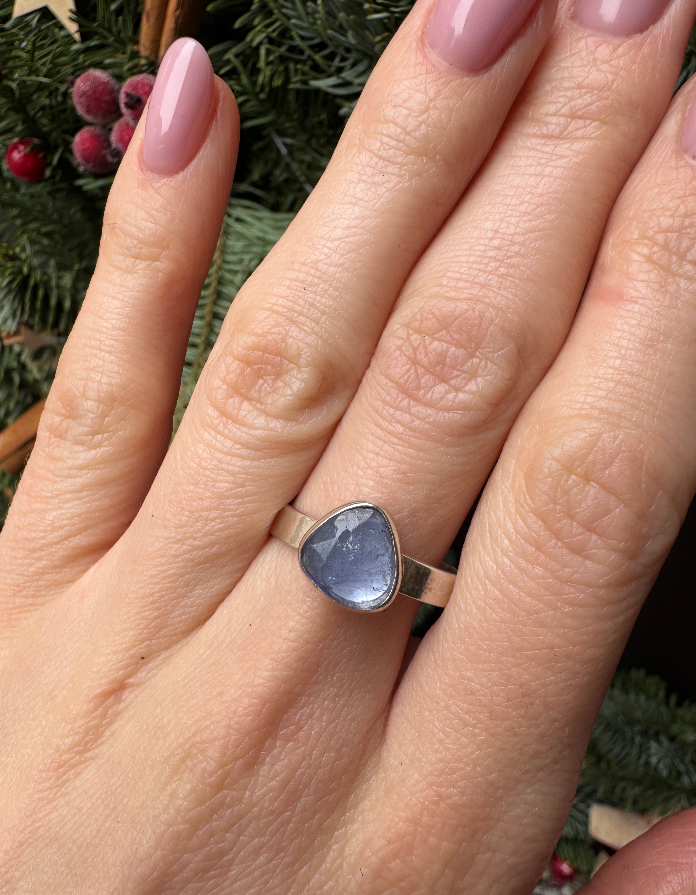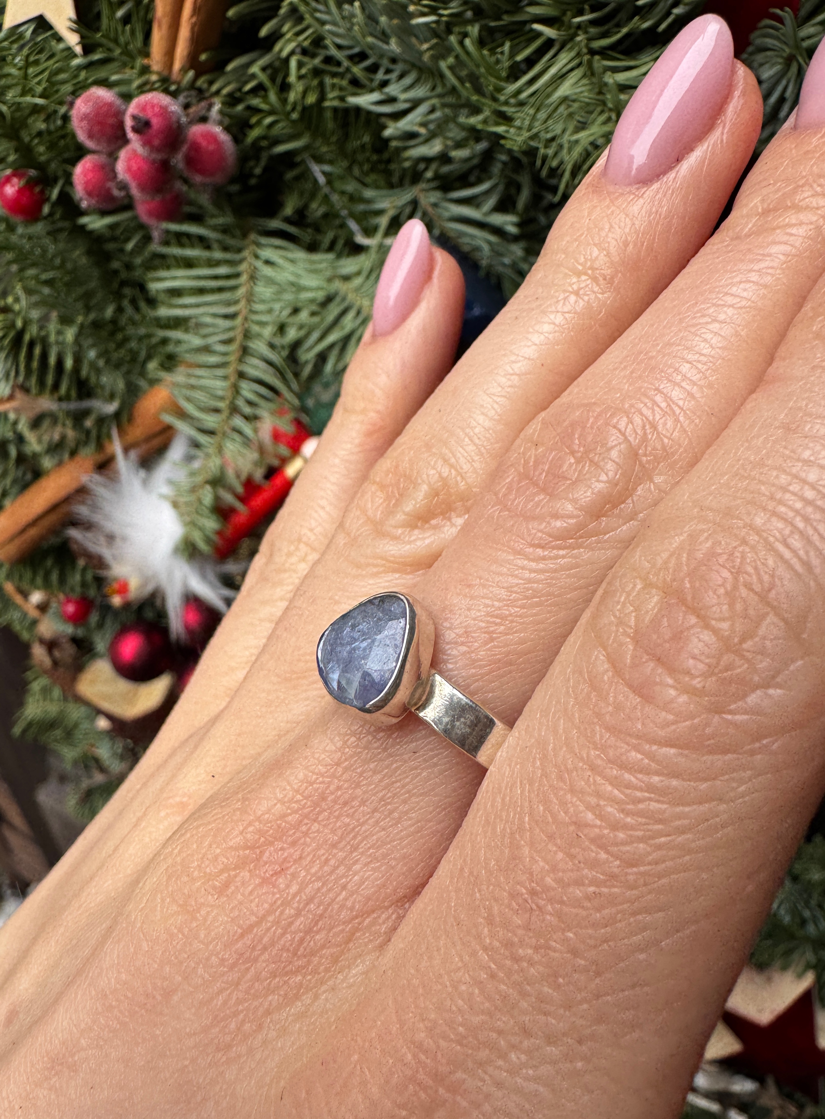 Ręcznie wykonany pierścionek z fasetowanym tanzanitem w odcieniu fioletu i srebra pr.925