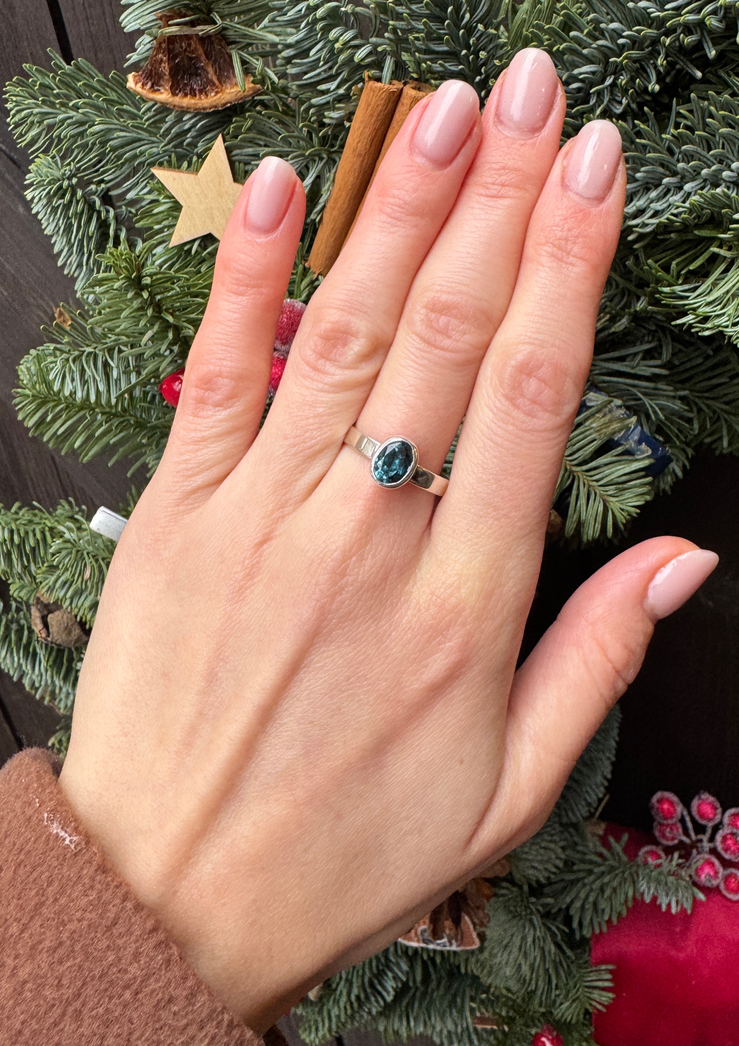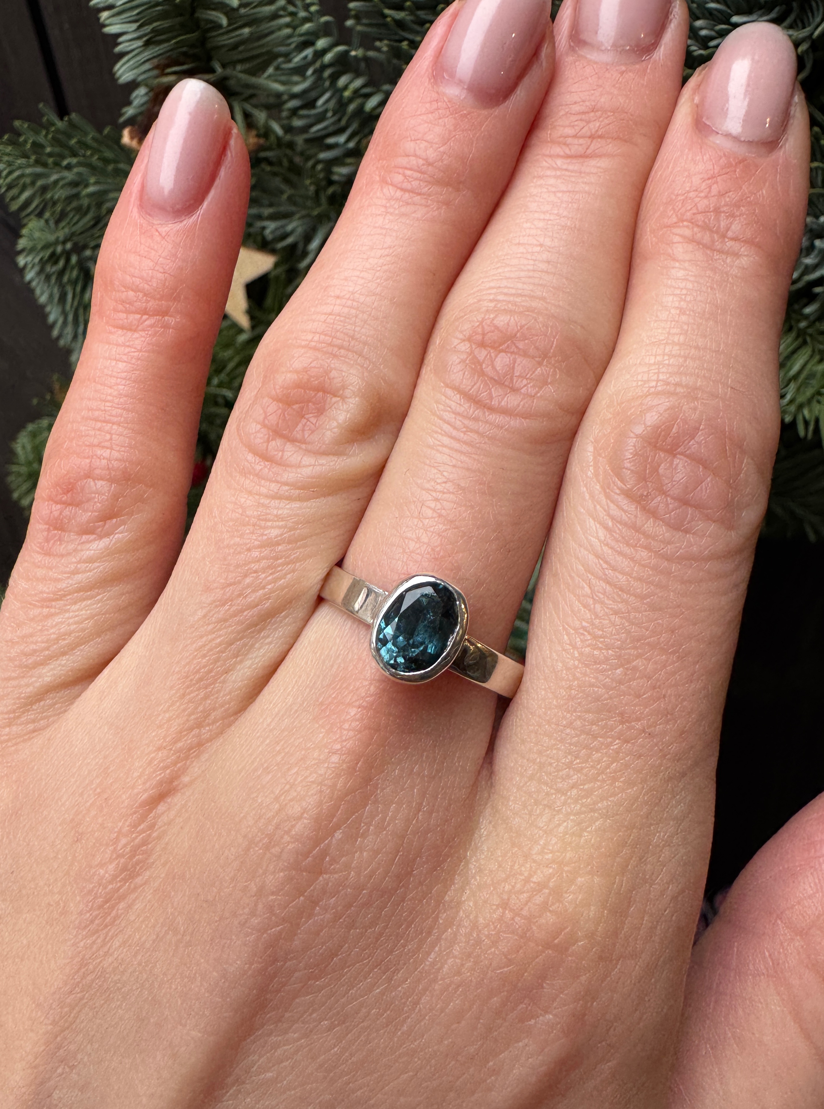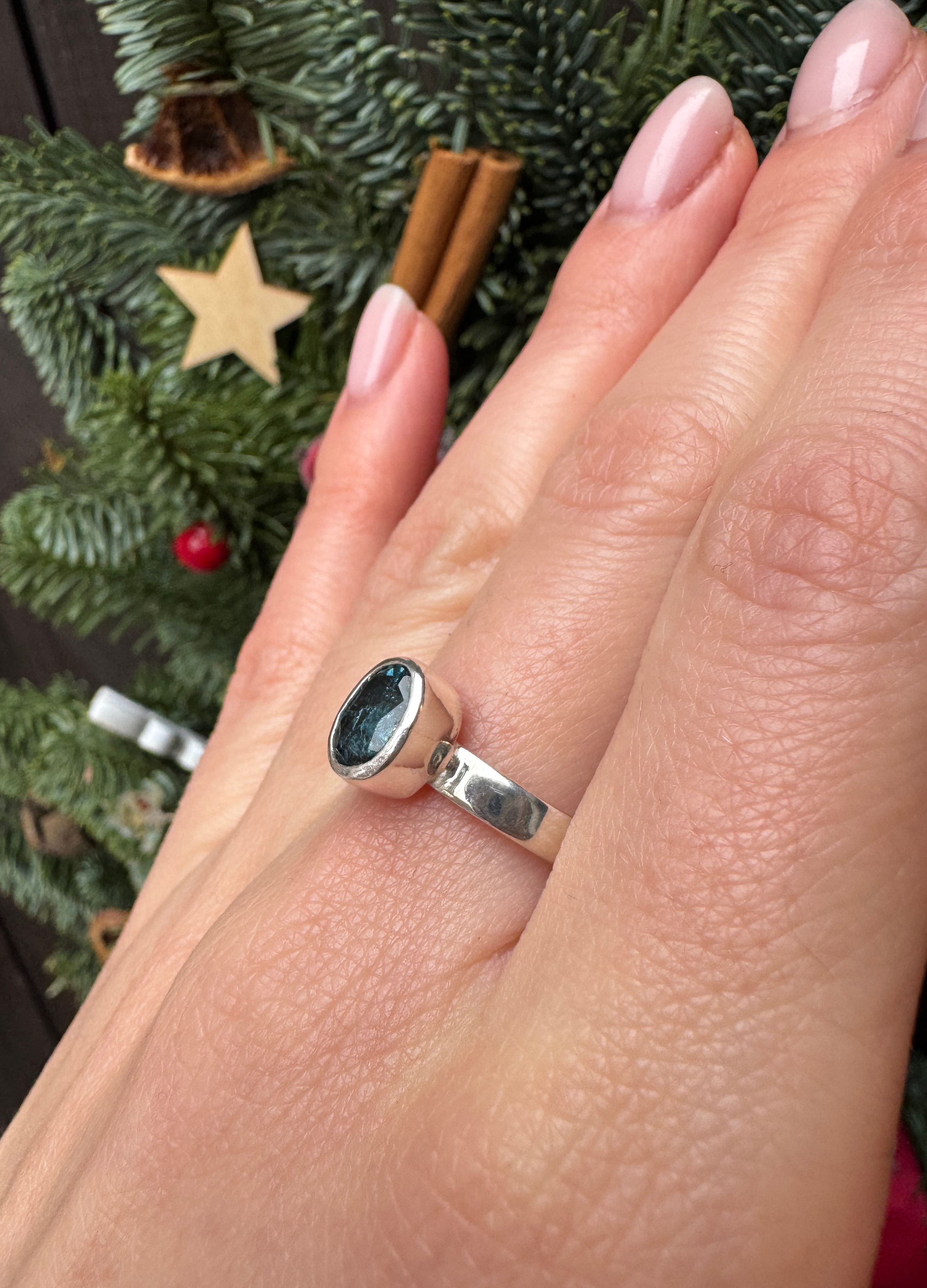 Ręcznie wykonany pierścionek z topazu london blue i srebra pr.925