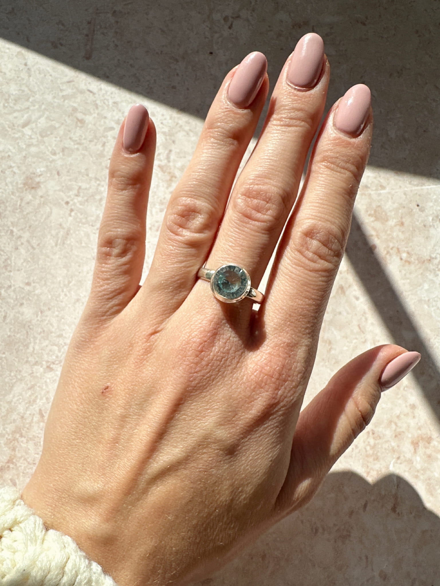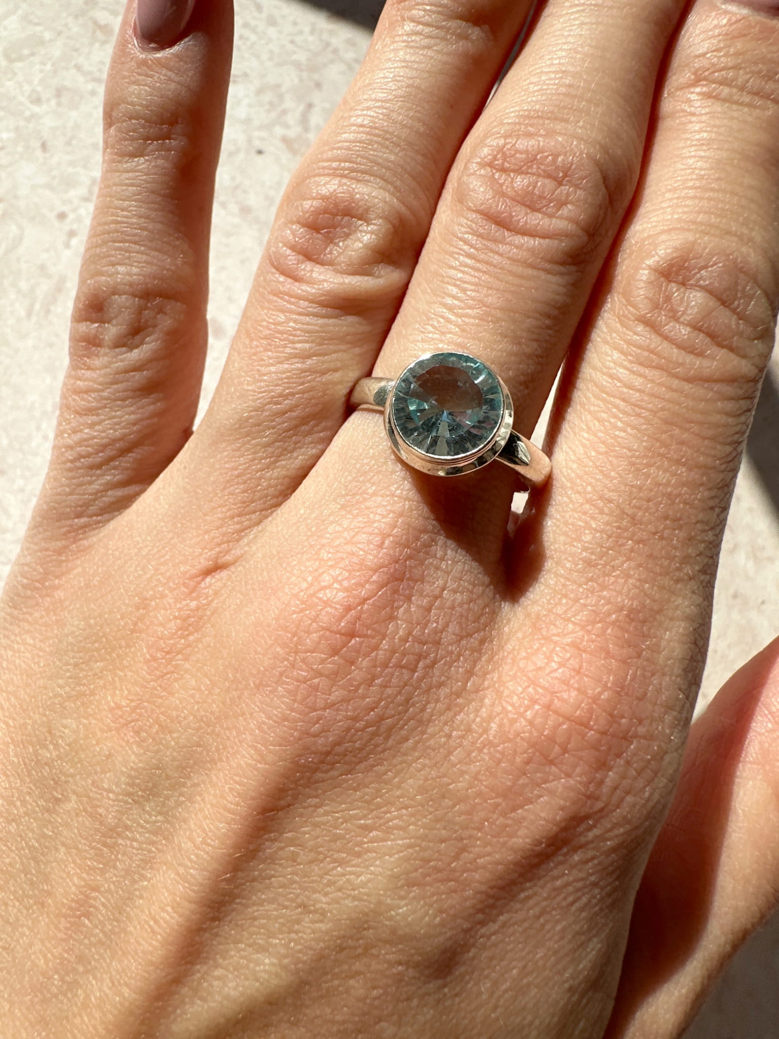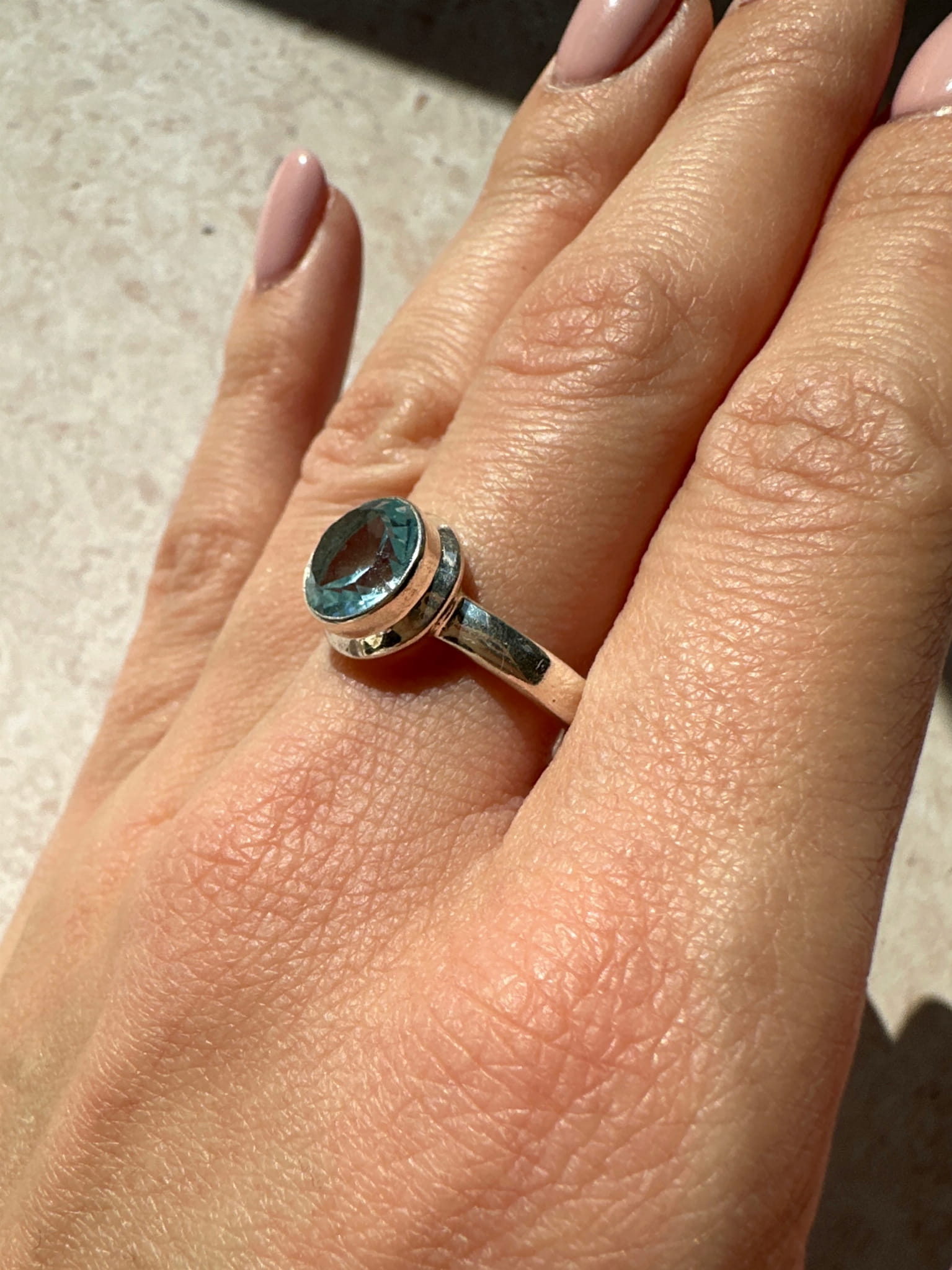 Ręcznie wykonany pierścionek z topazu sky blue i srebra pr.925
