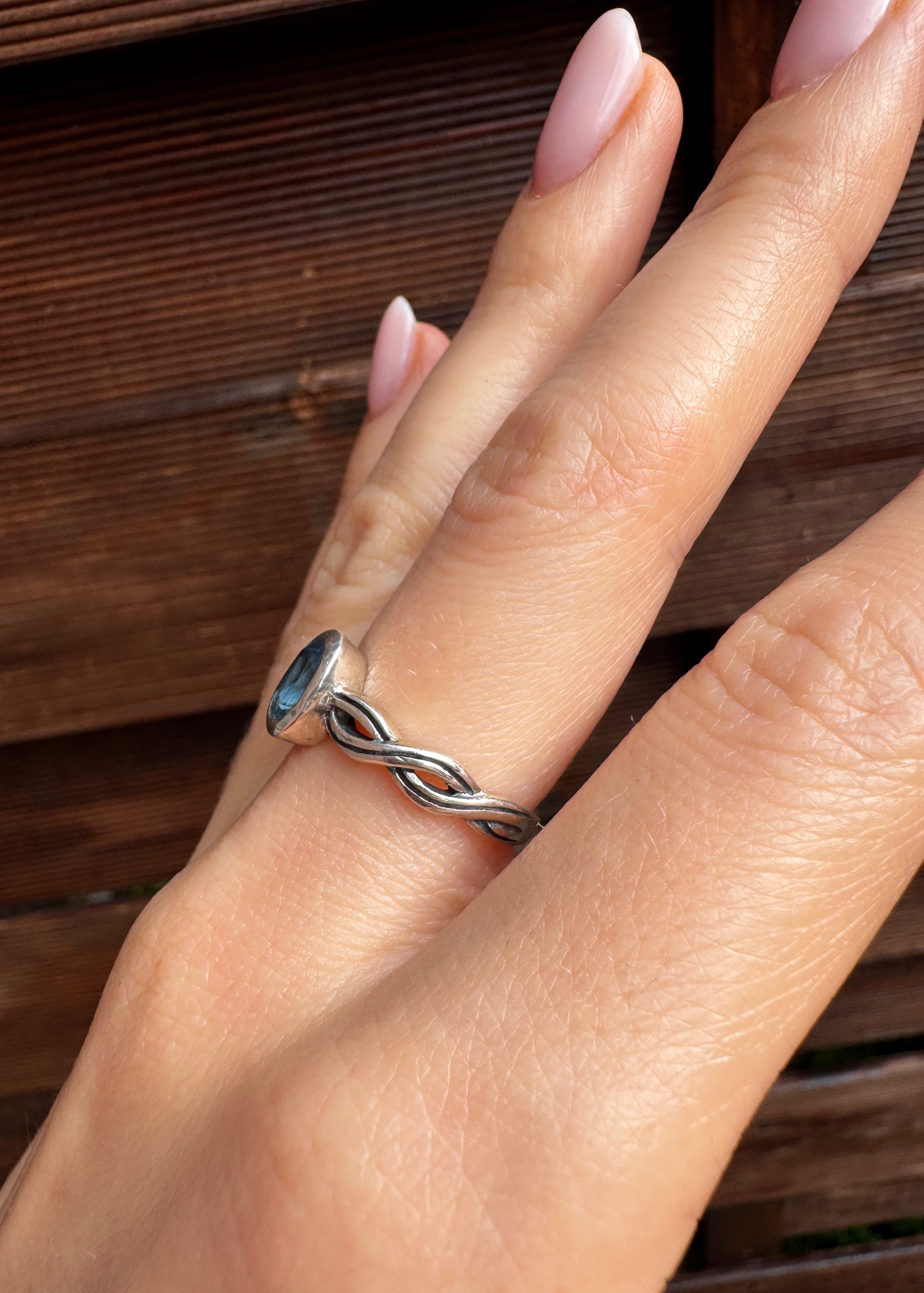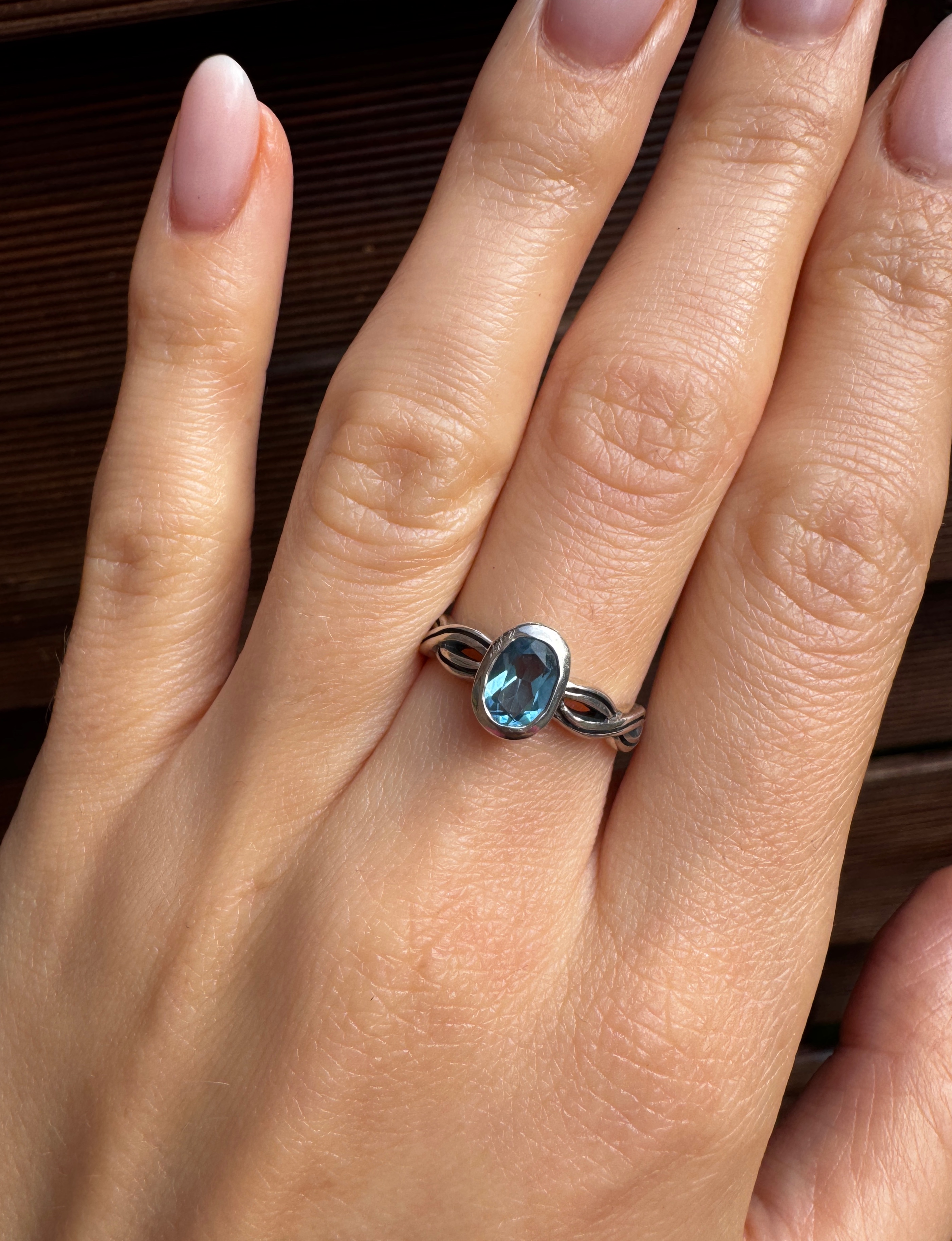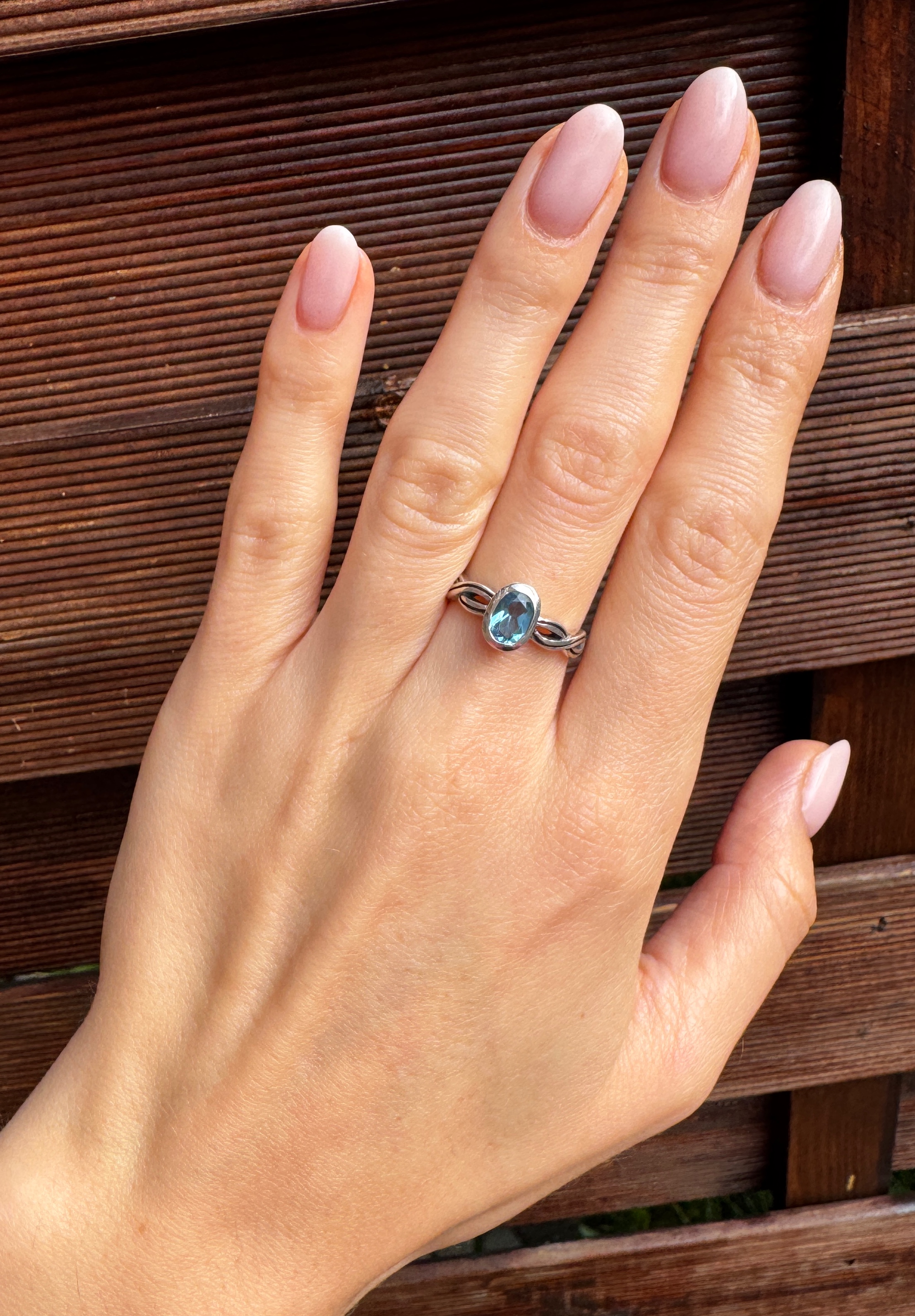 Ręcznie wykonany pierścionek z topazu sky blue i srebra pr.925