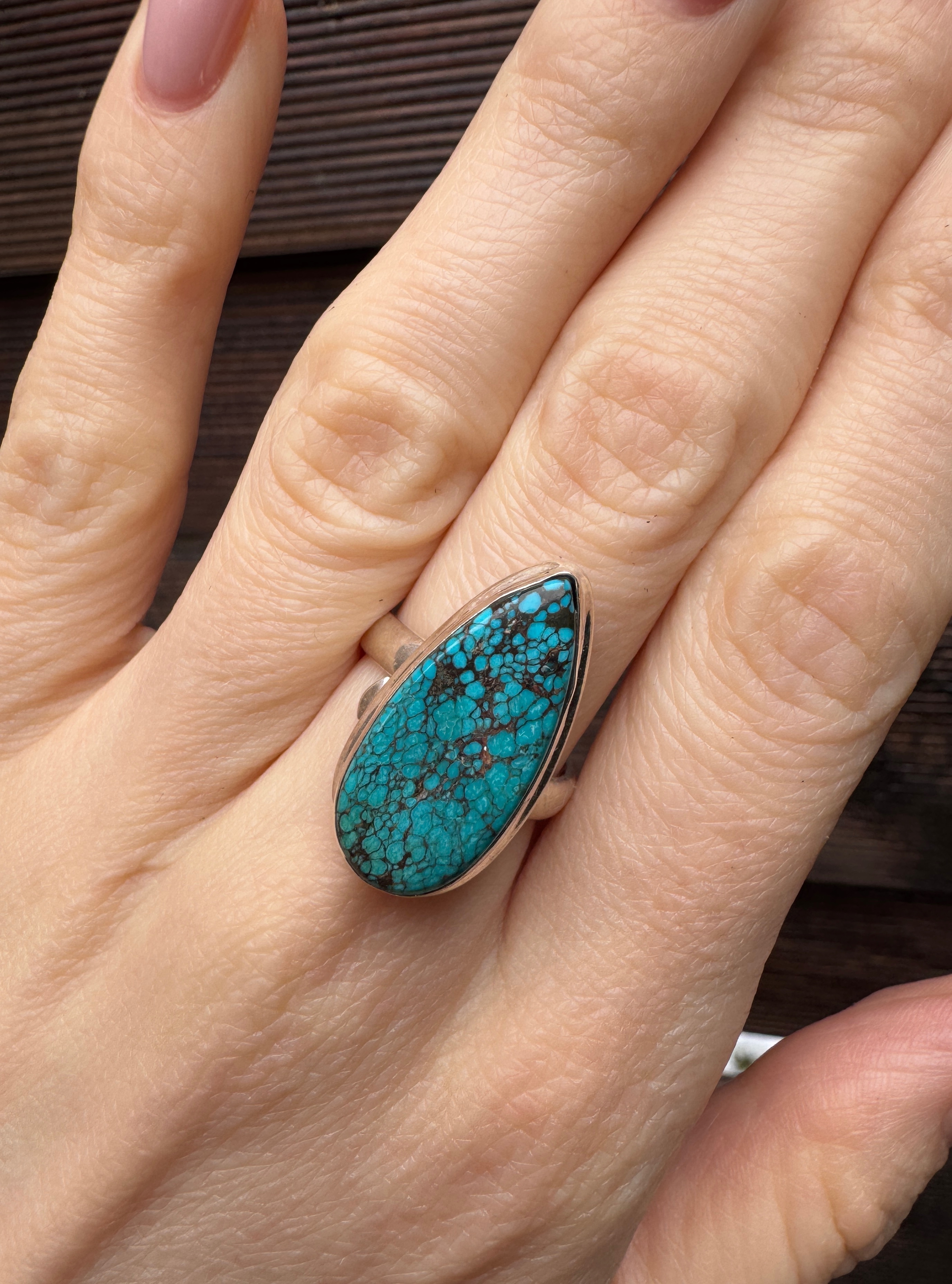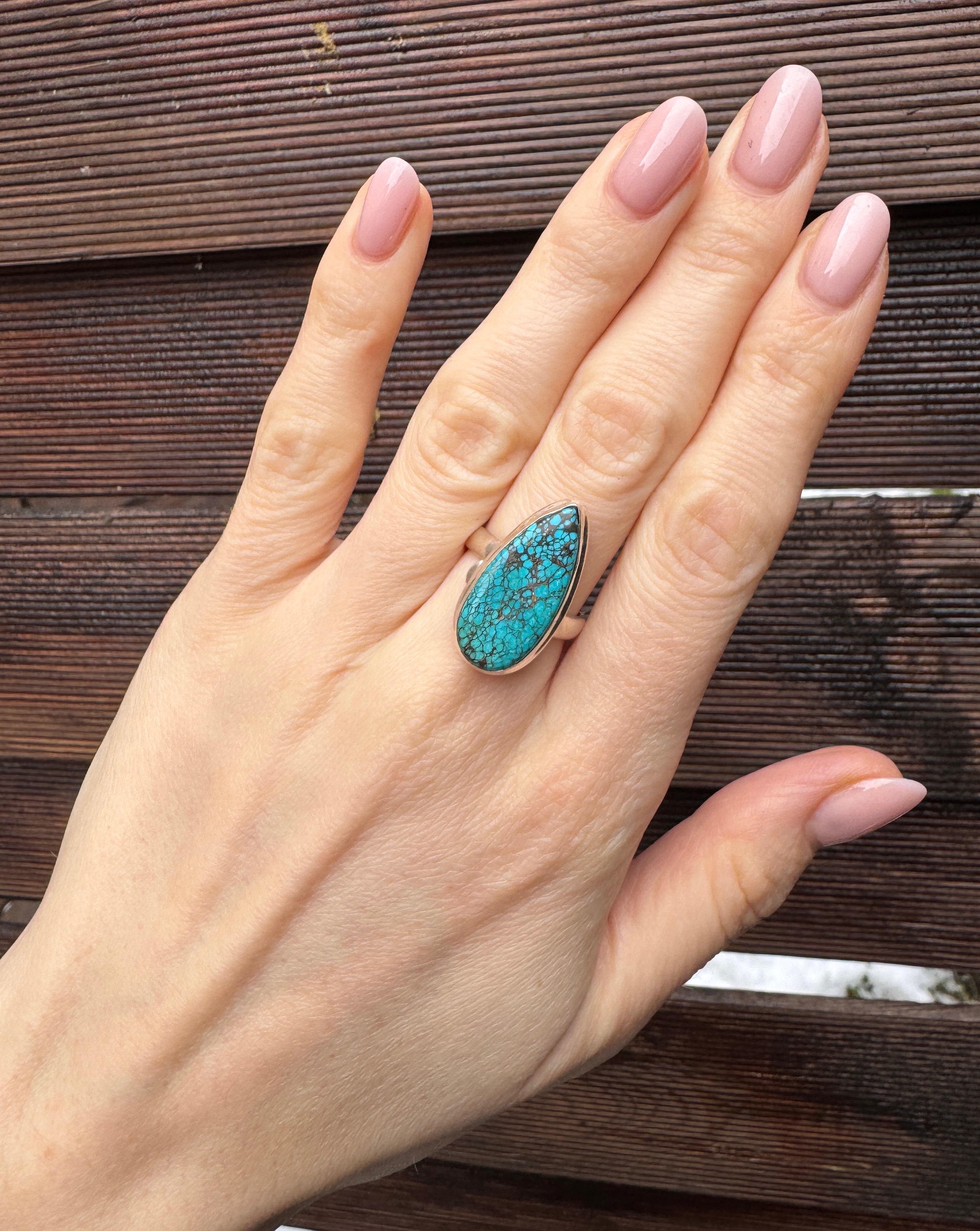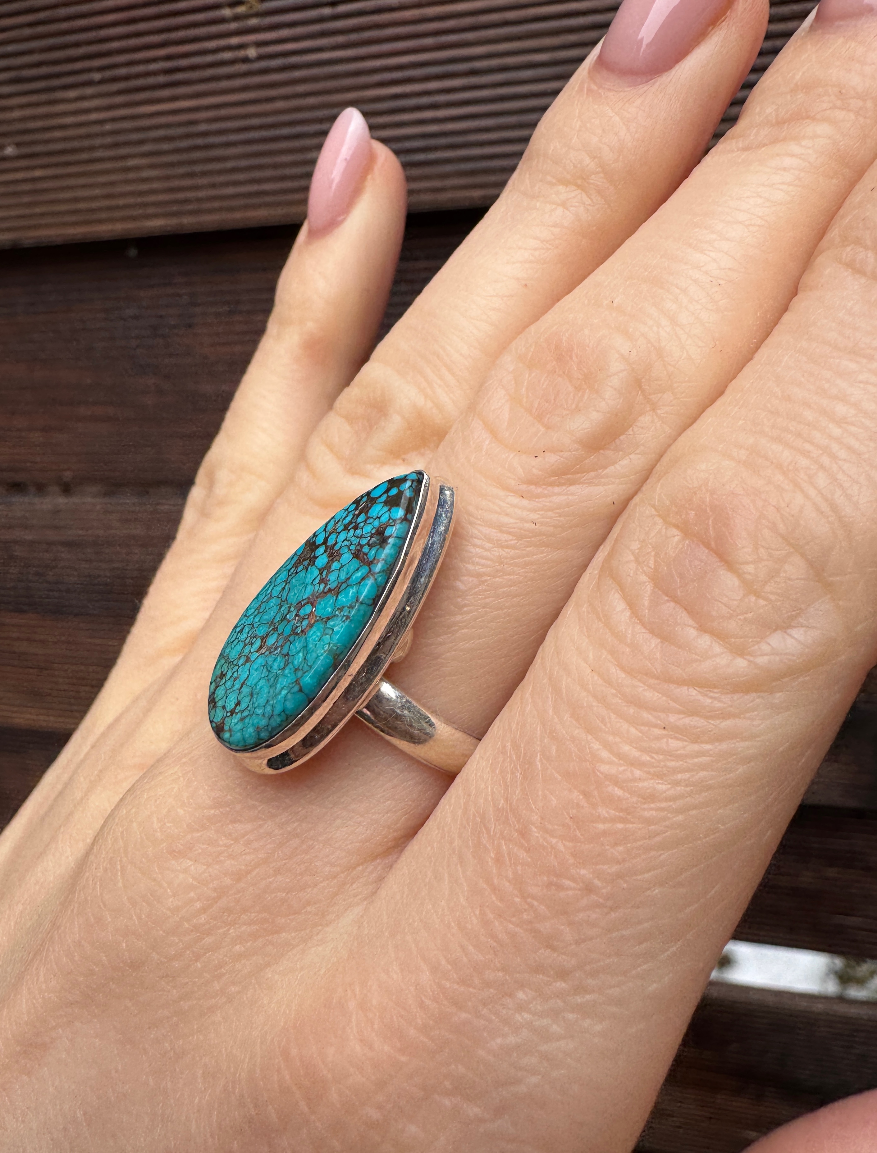 Ręcznie wykonany pierścionek z naturalnego turkusu i srebra pr.925