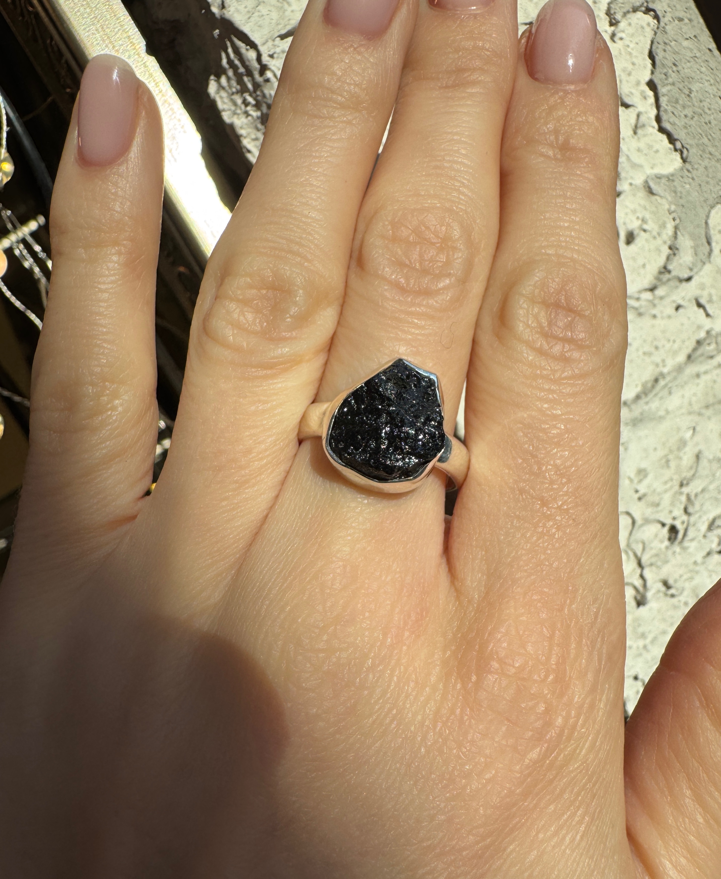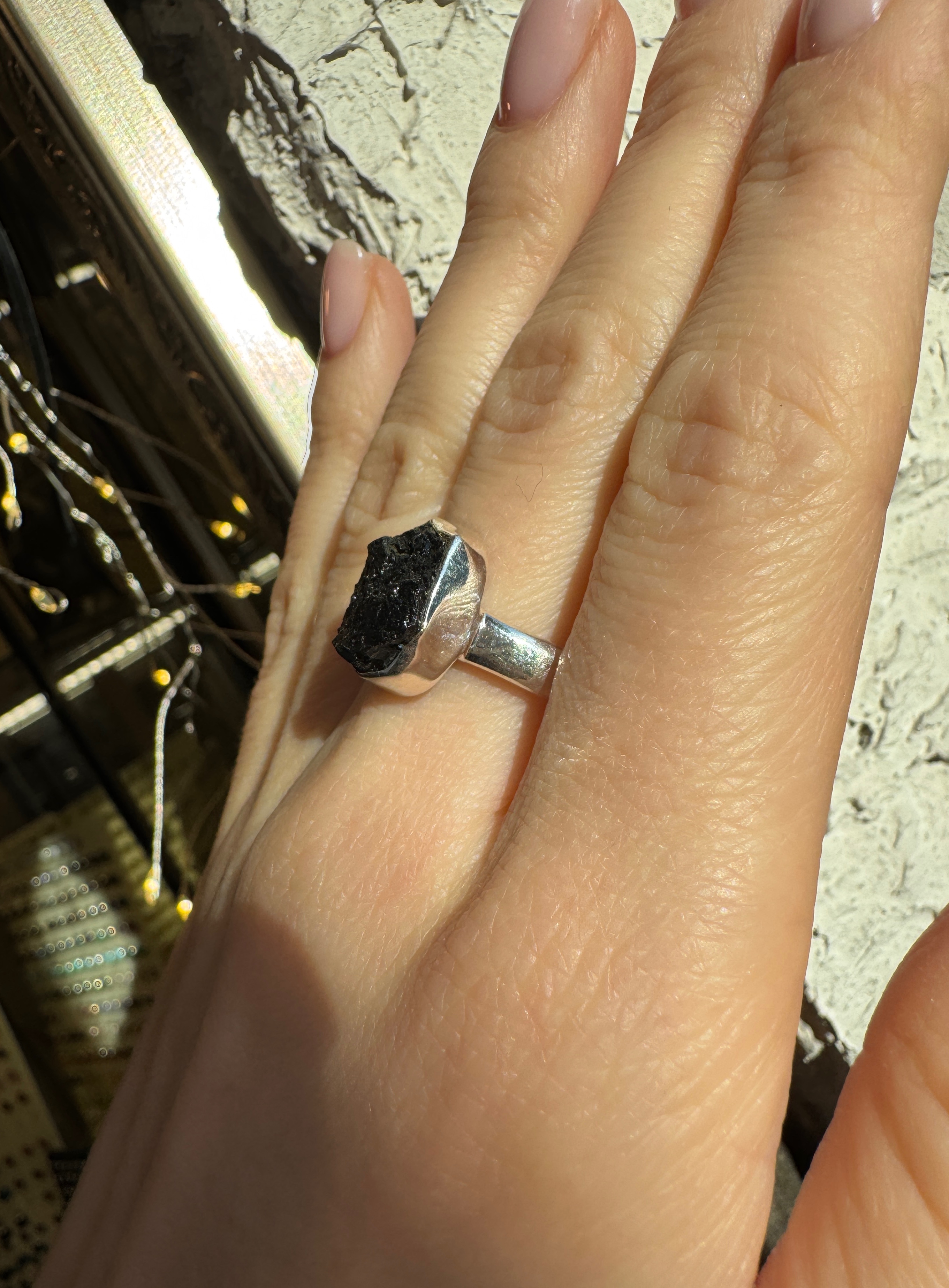 Ręcznie wykonany pierścionek z turmalinu czarnego surowego srebra pr.925