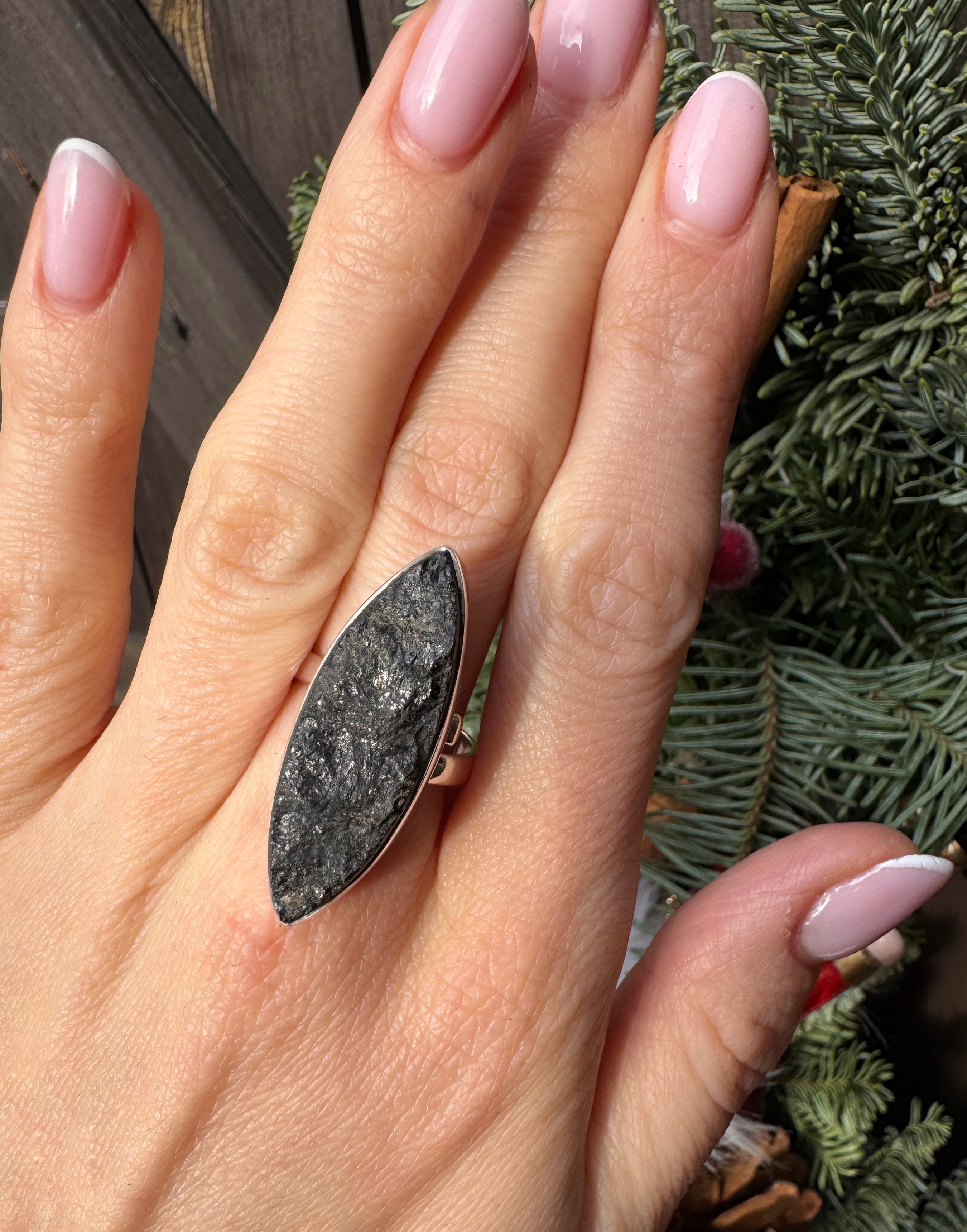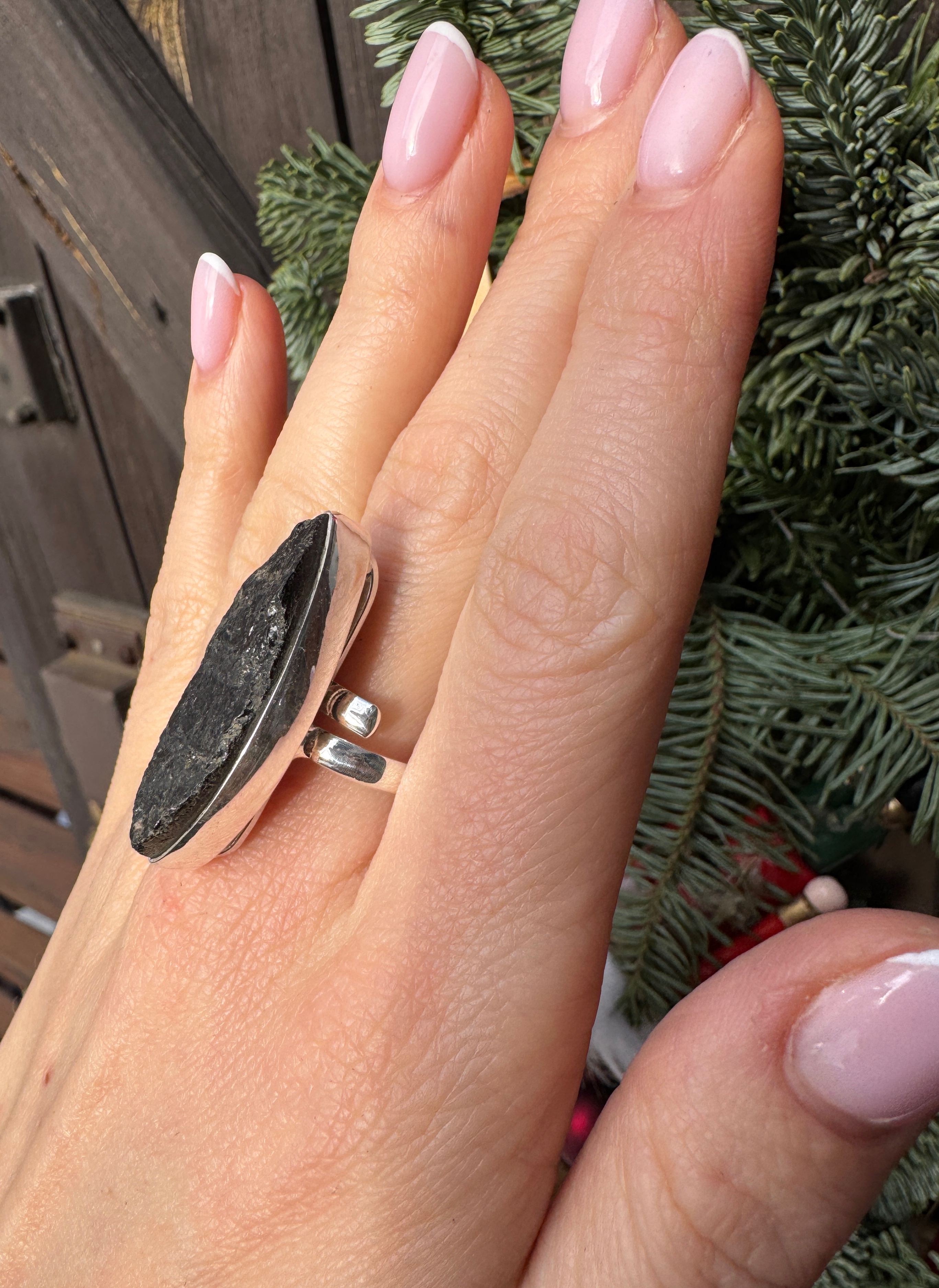 Ręcznie wykonany pierścionek z turmalinu czarnego surowego srebra pr.925