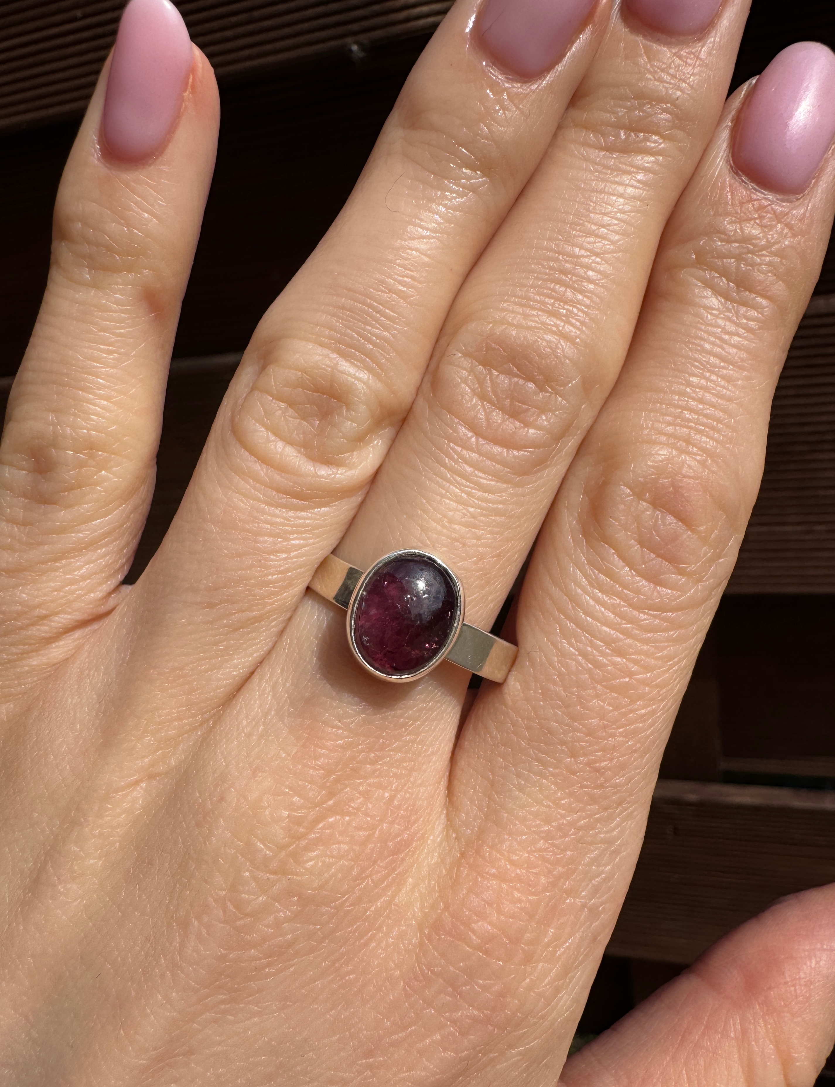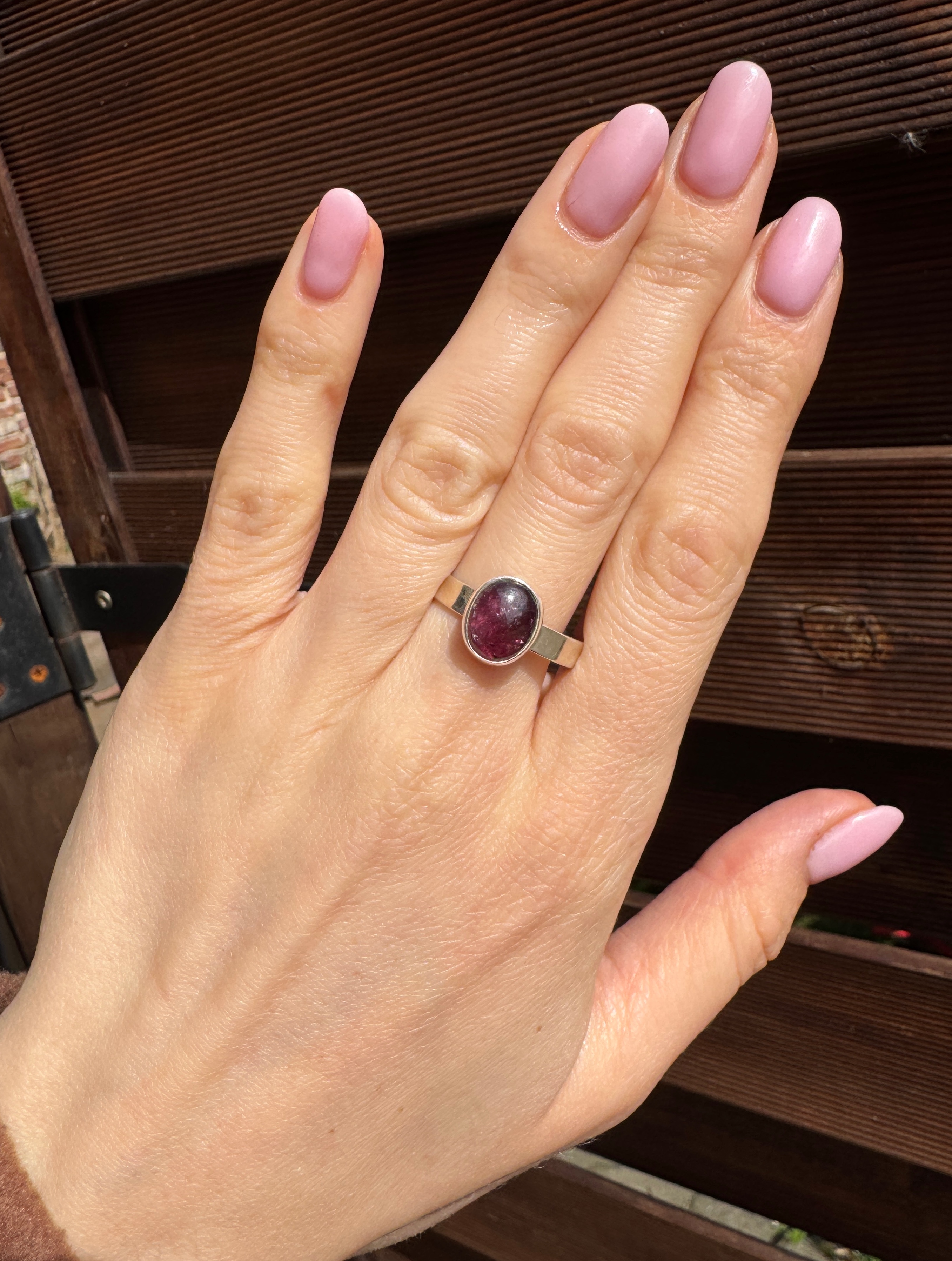 Ręcznie wykonany pierścionek z różowego turmalinu surowego i srebra pr.925