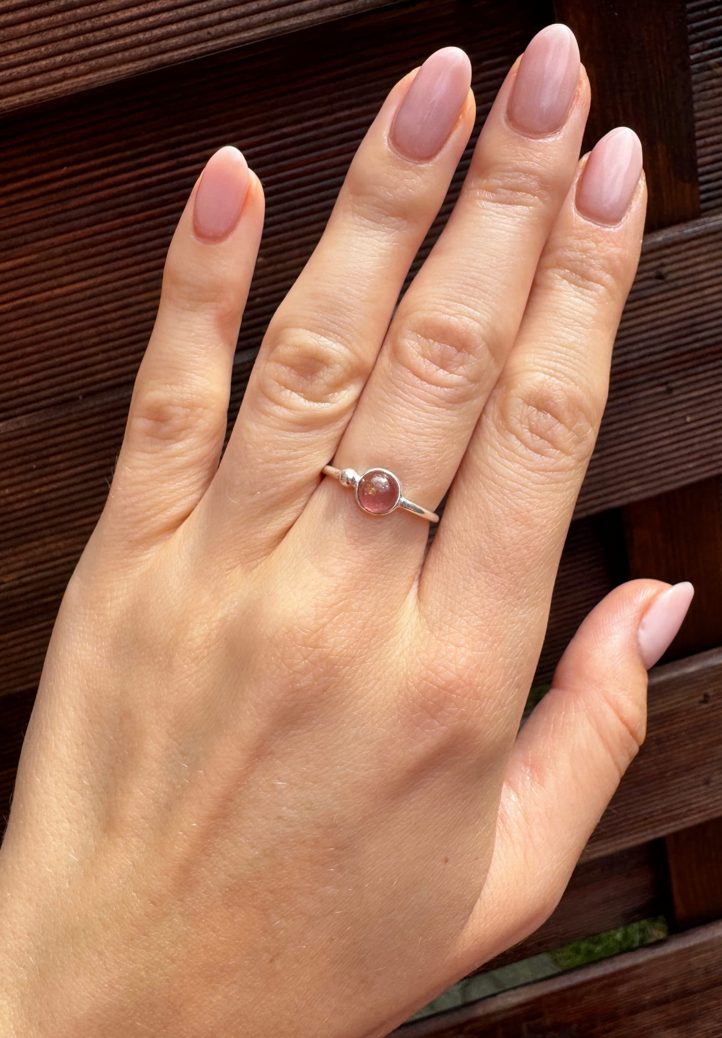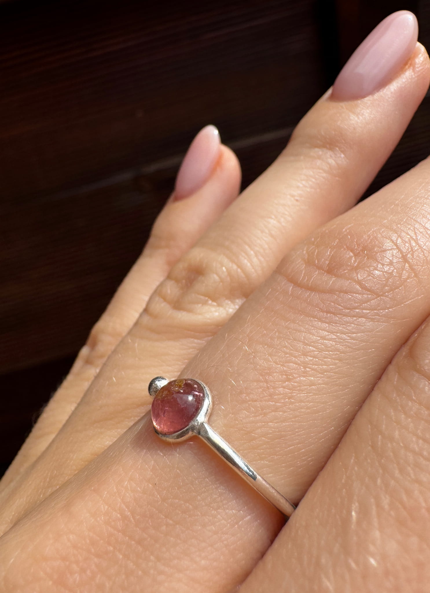 Ręcznie wykonany pierścionek z turmalinu różowego i srebra pr.925