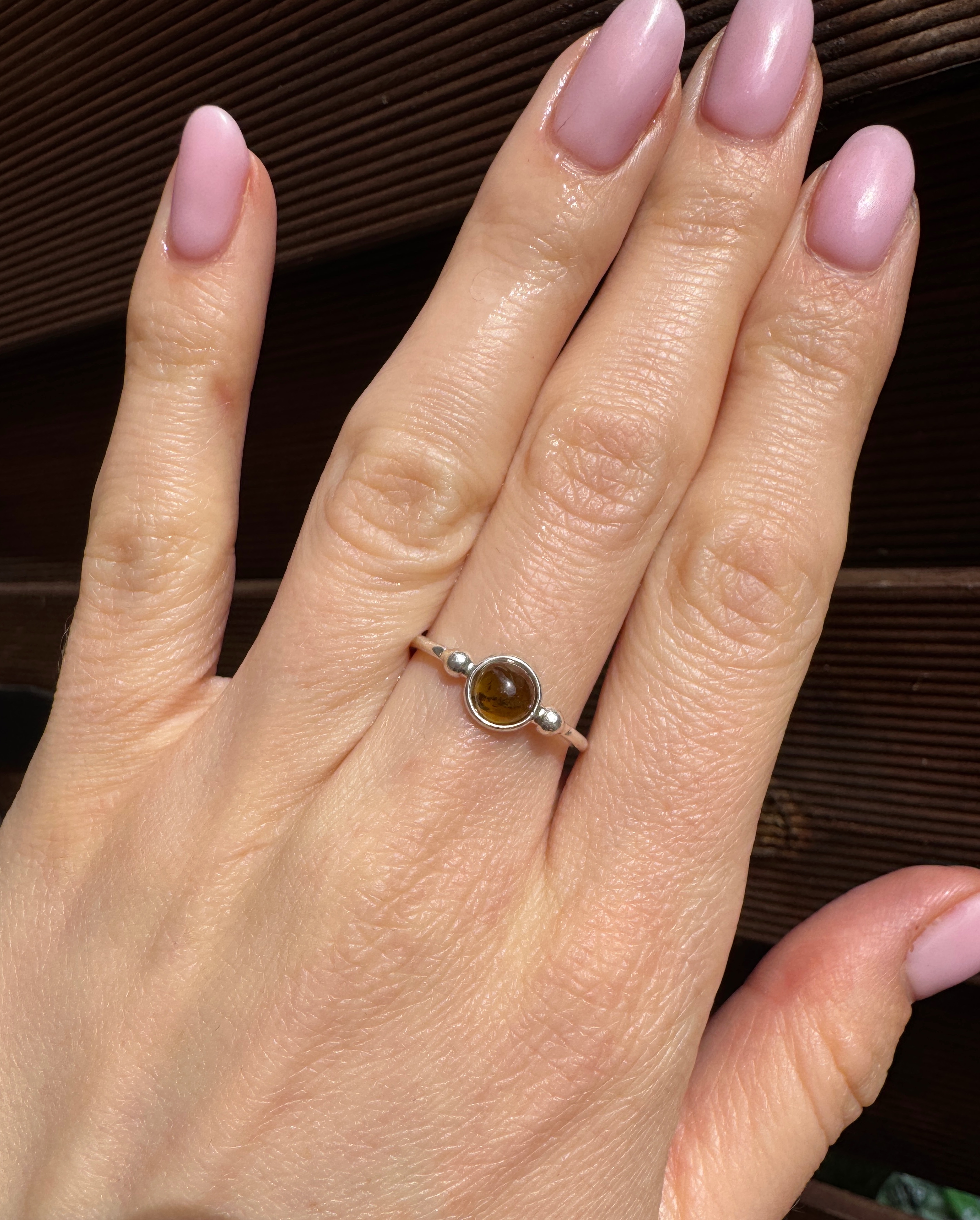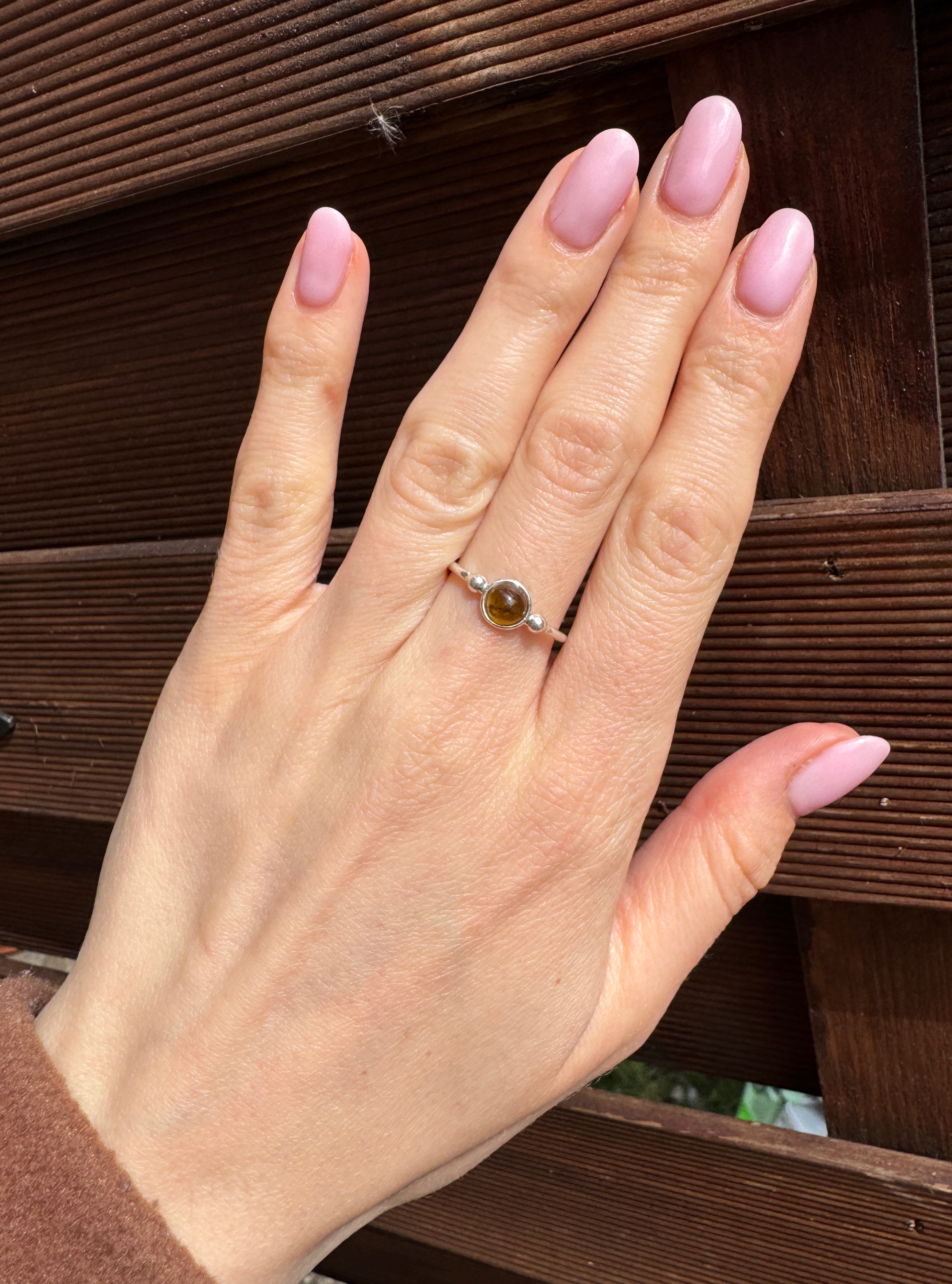 Pierścionek turmalin zielony okrągły