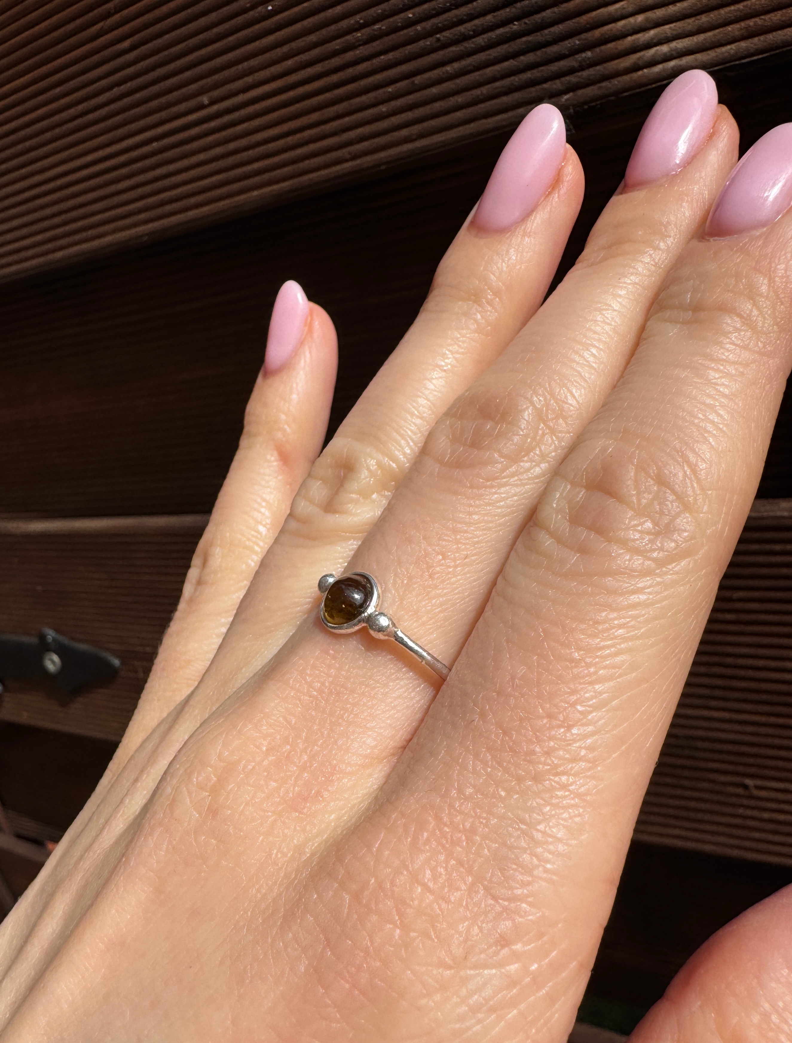 Ręcznie wykonany pierścionek z turmalinu zielonego i srebra pr.925