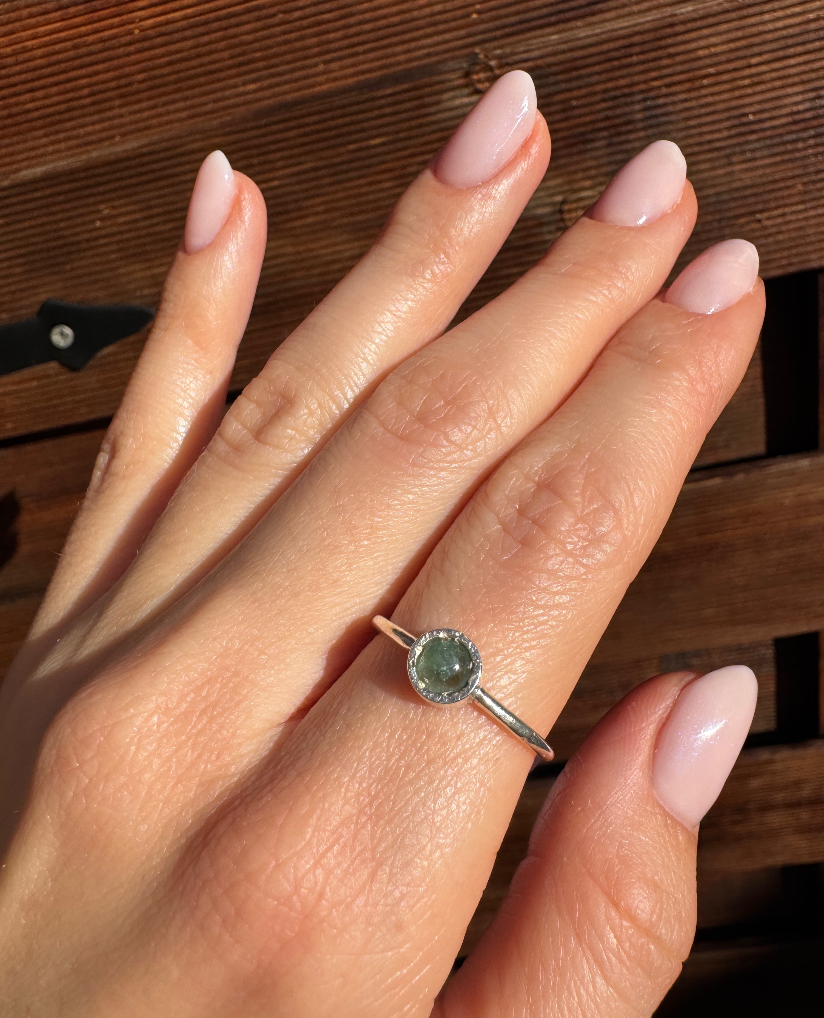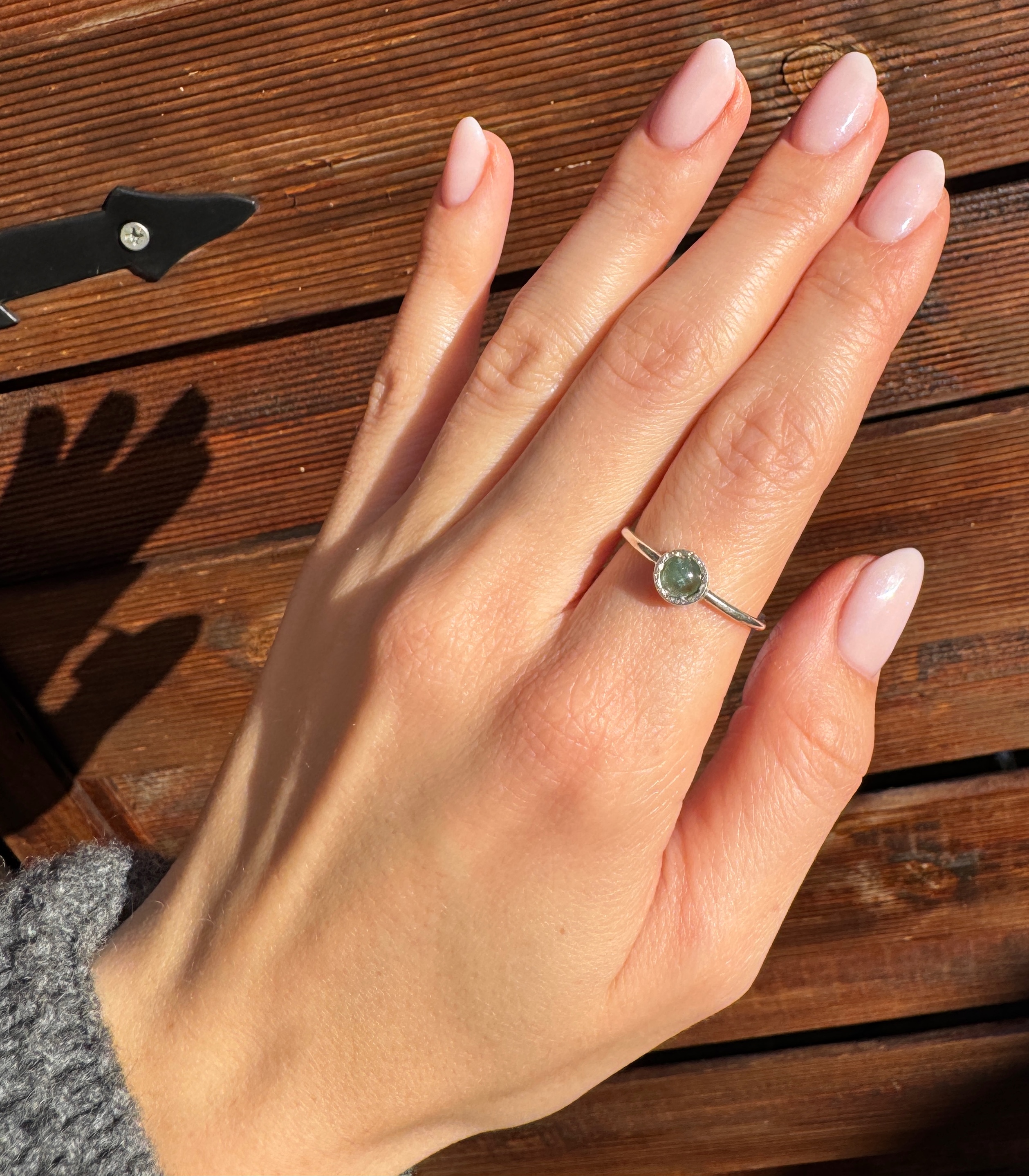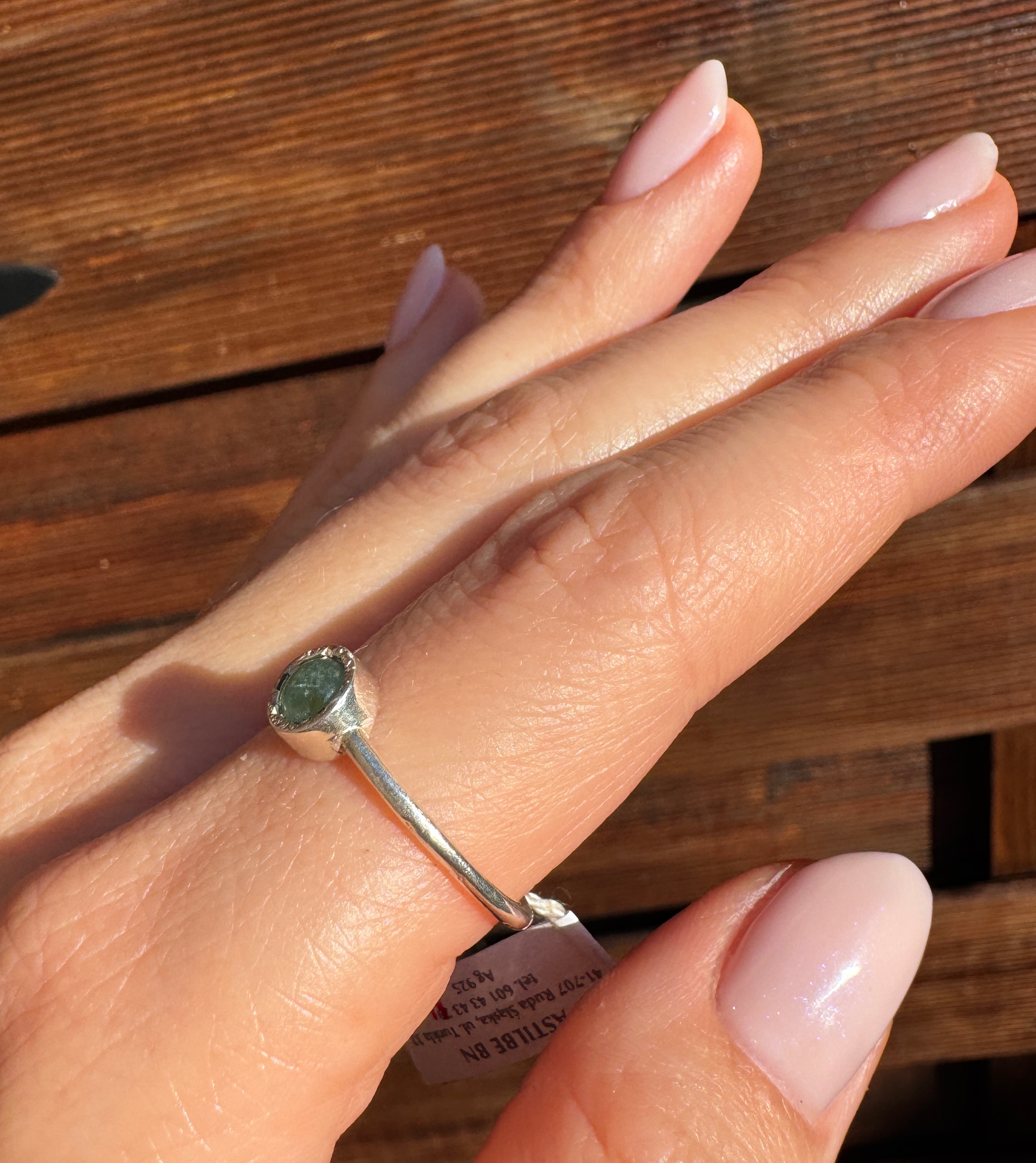 Ręcznie wykonany pierścionek z turmalinu zielonego i srebra pr.925